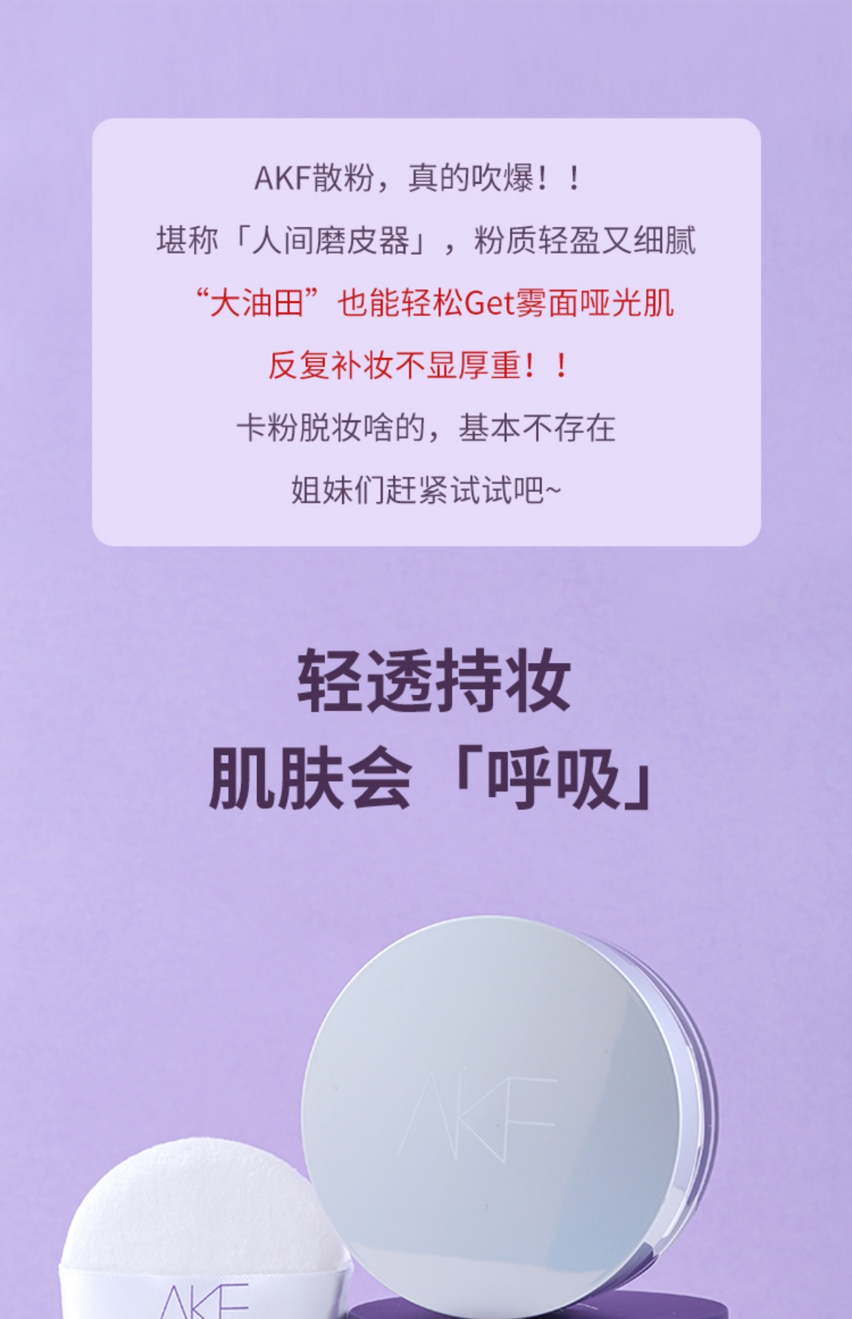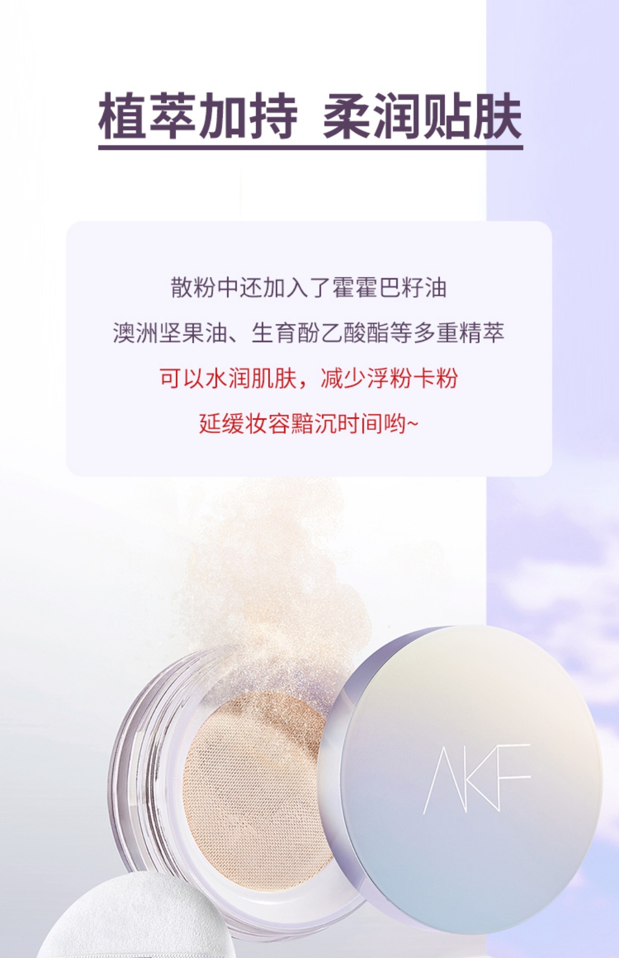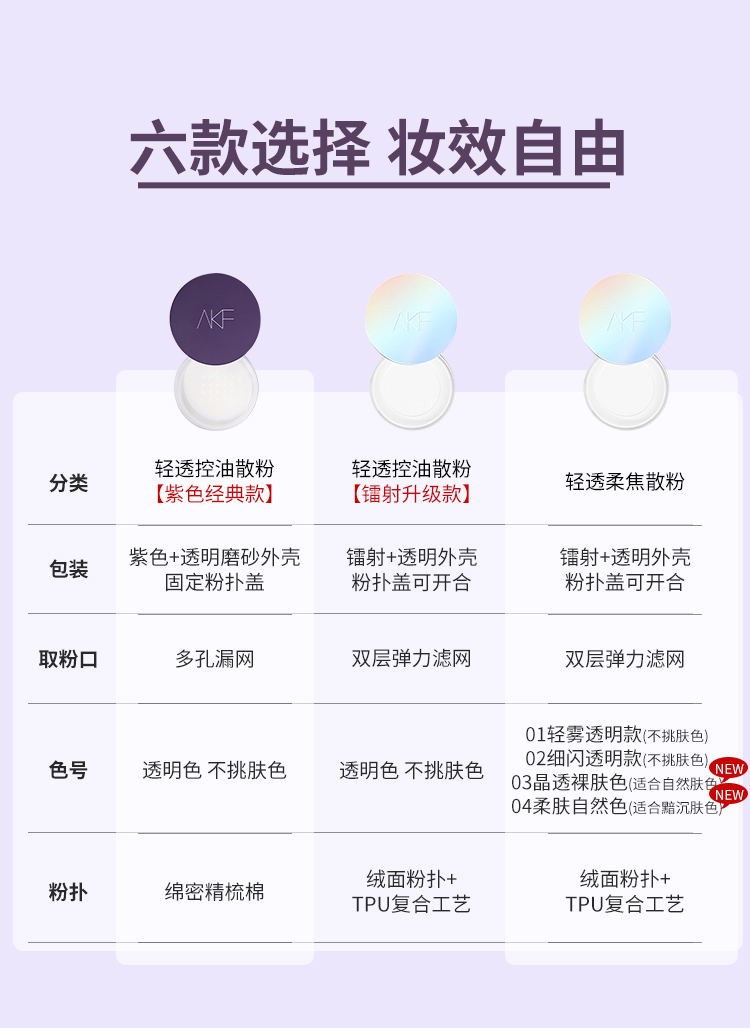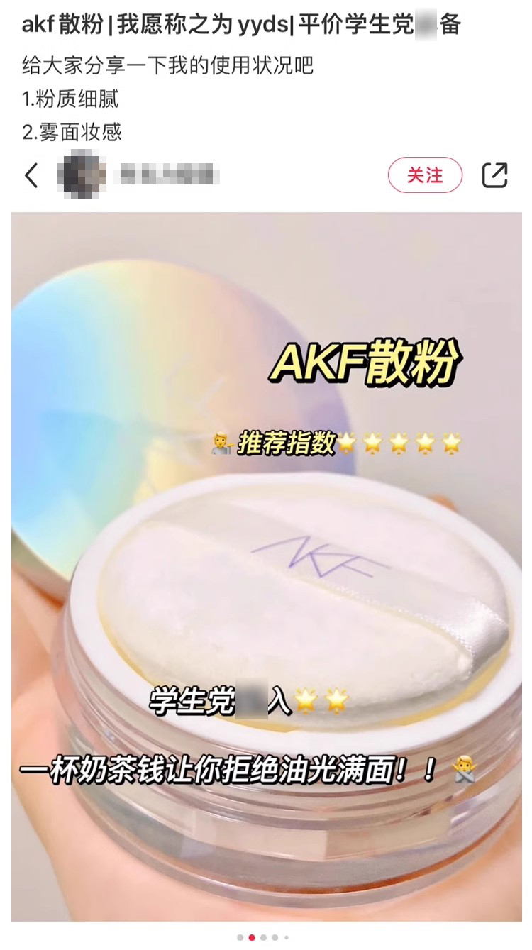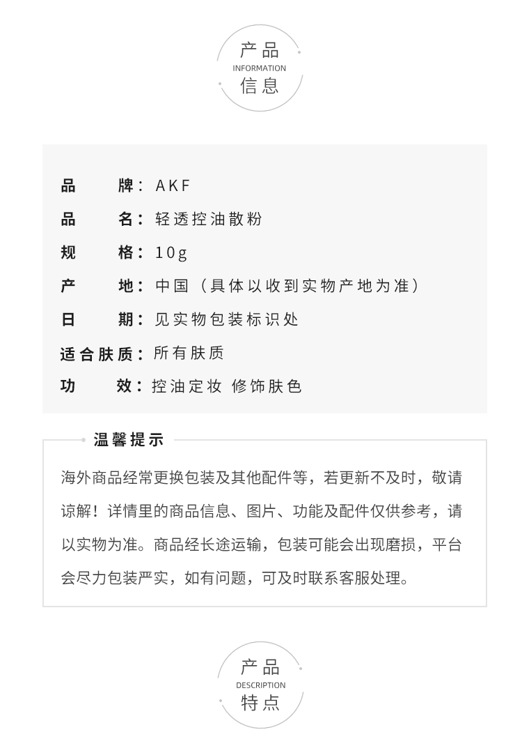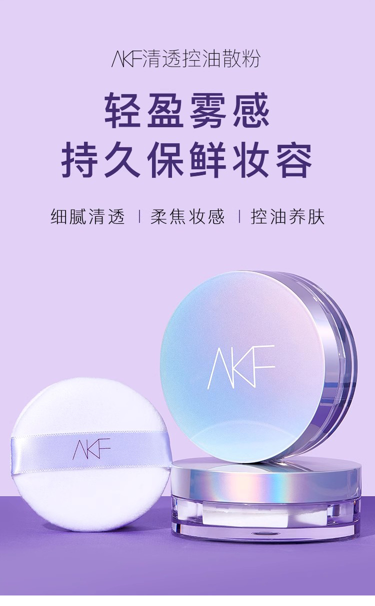 AKF定妆散粉持久防水防汗不脱妆控油隐形毛孔轻透控油散粉10g 轻透柔焦