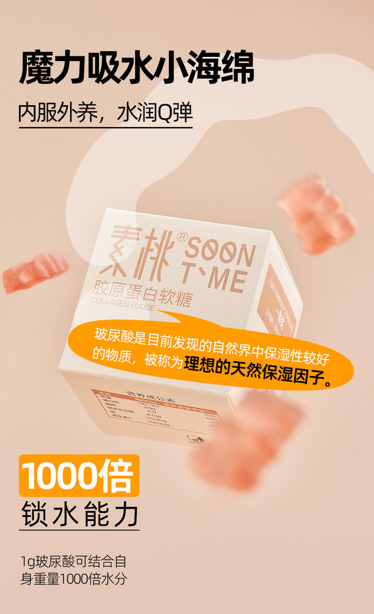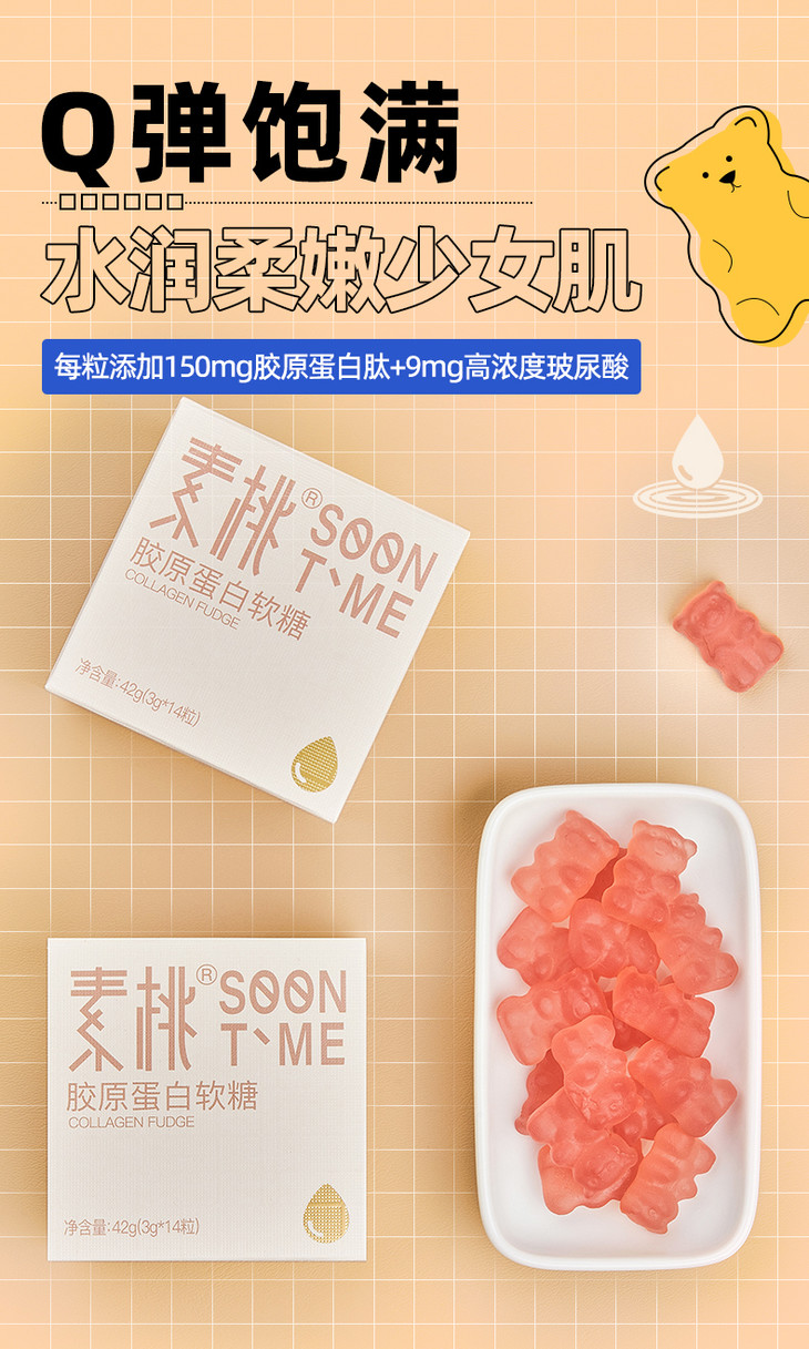 素桃 胶原蛋白软糖白桃味小熊软糖 小分子胶原蛋白
