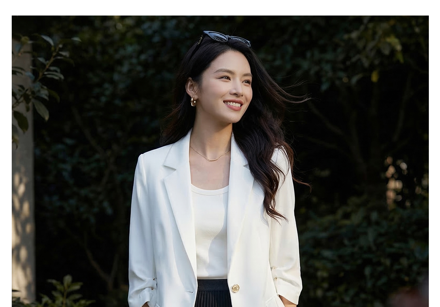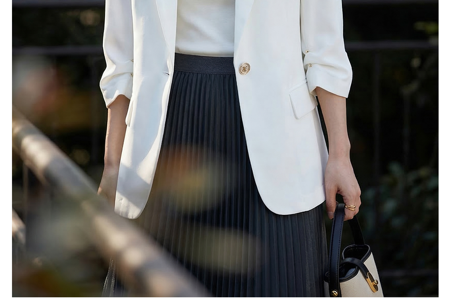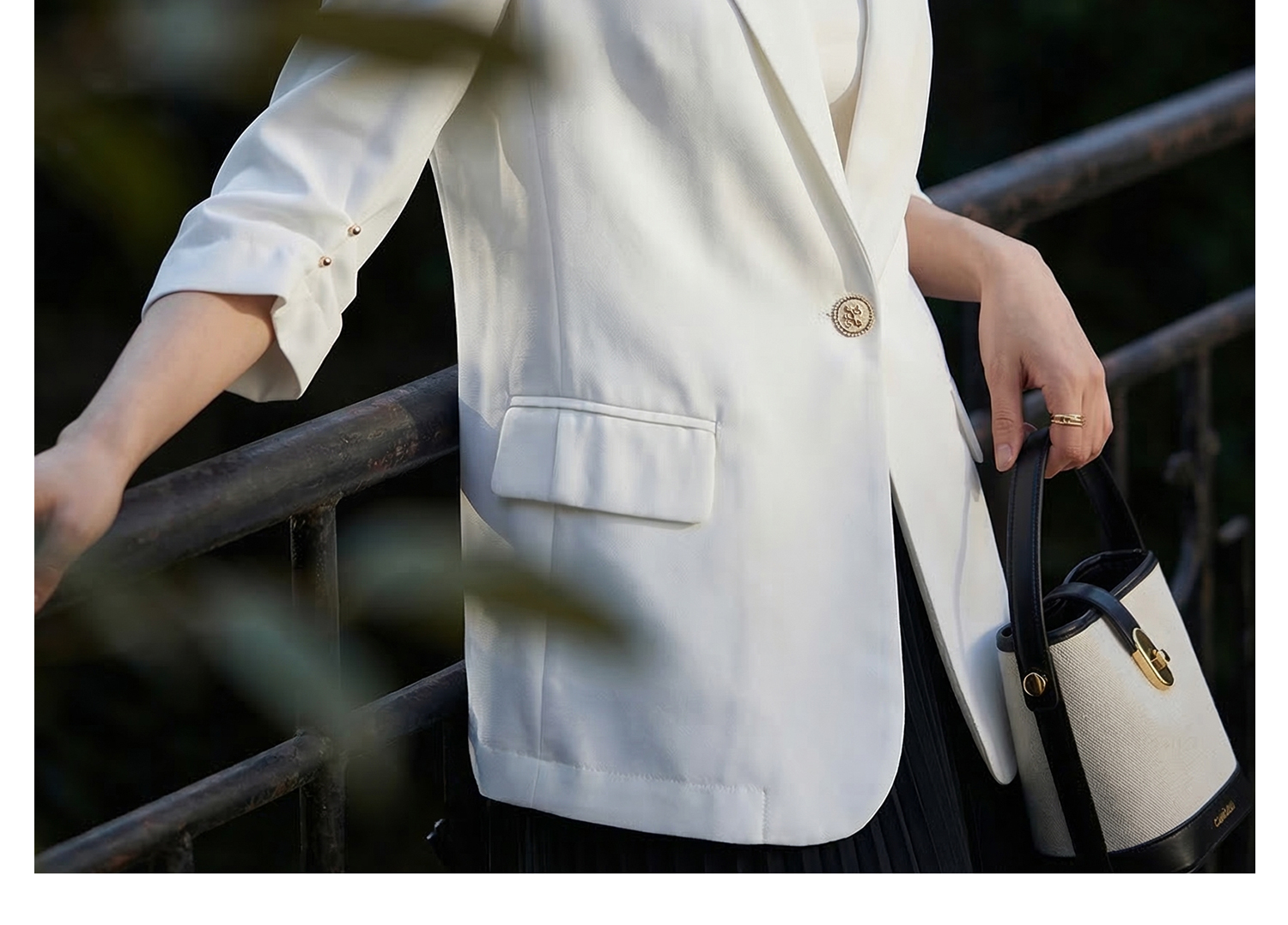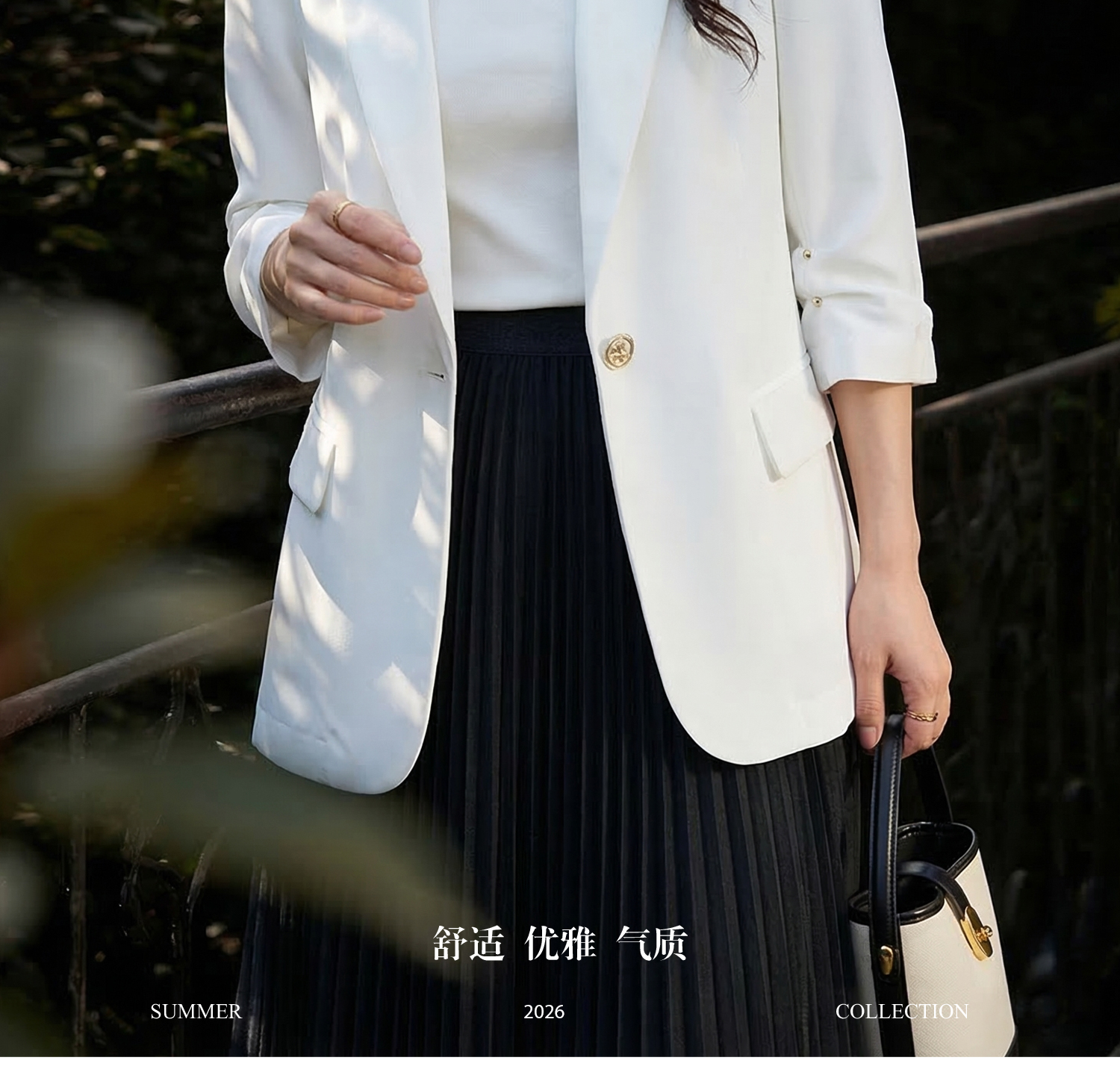 米思阳2026春季新款简约高级感西装外套宽松正式七分袖上衣女0874