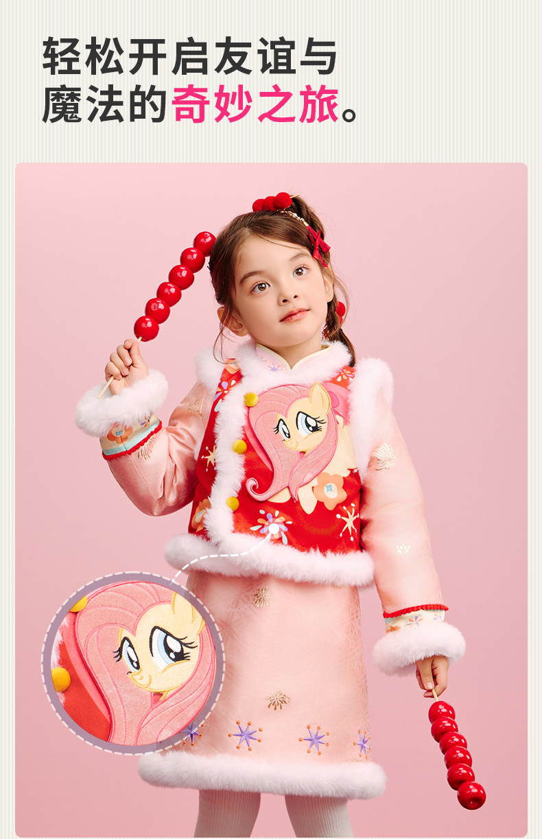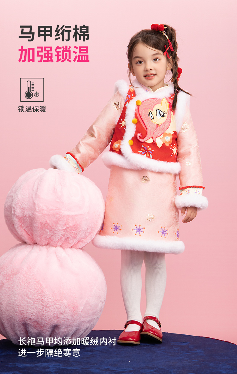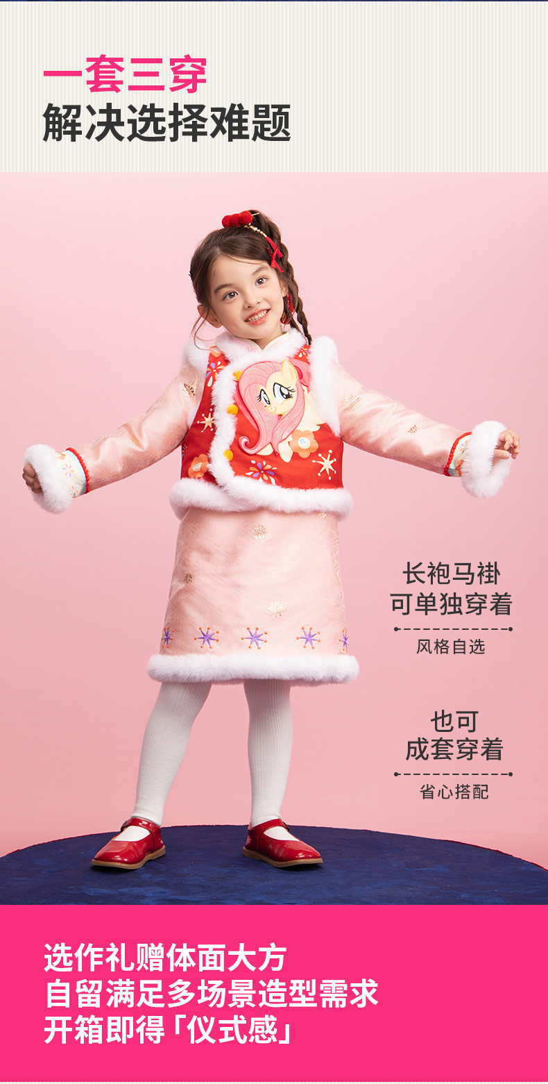 小马宝莉联名年衣童装马褂套装冬季新款中式小马宝莉新年旗袍套装