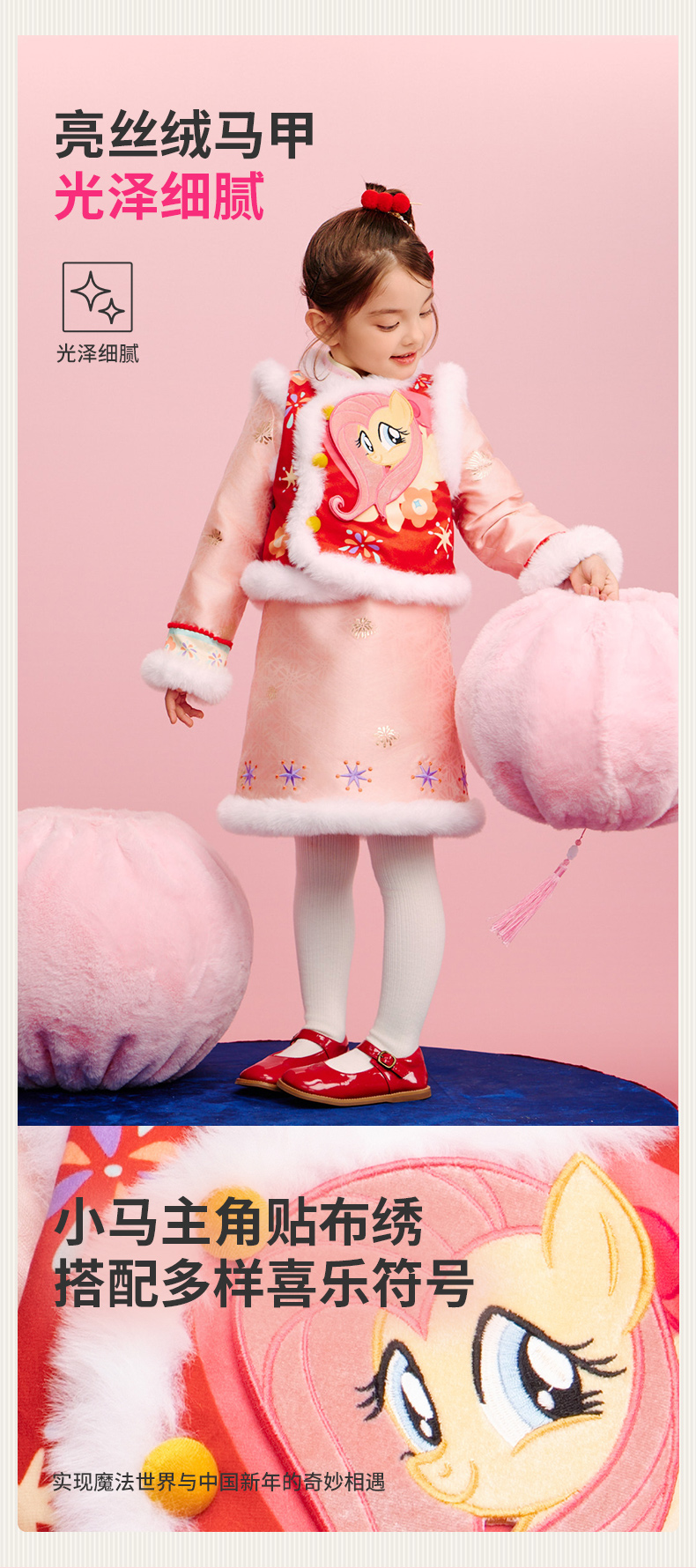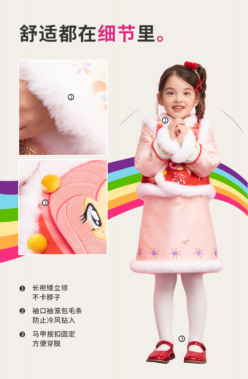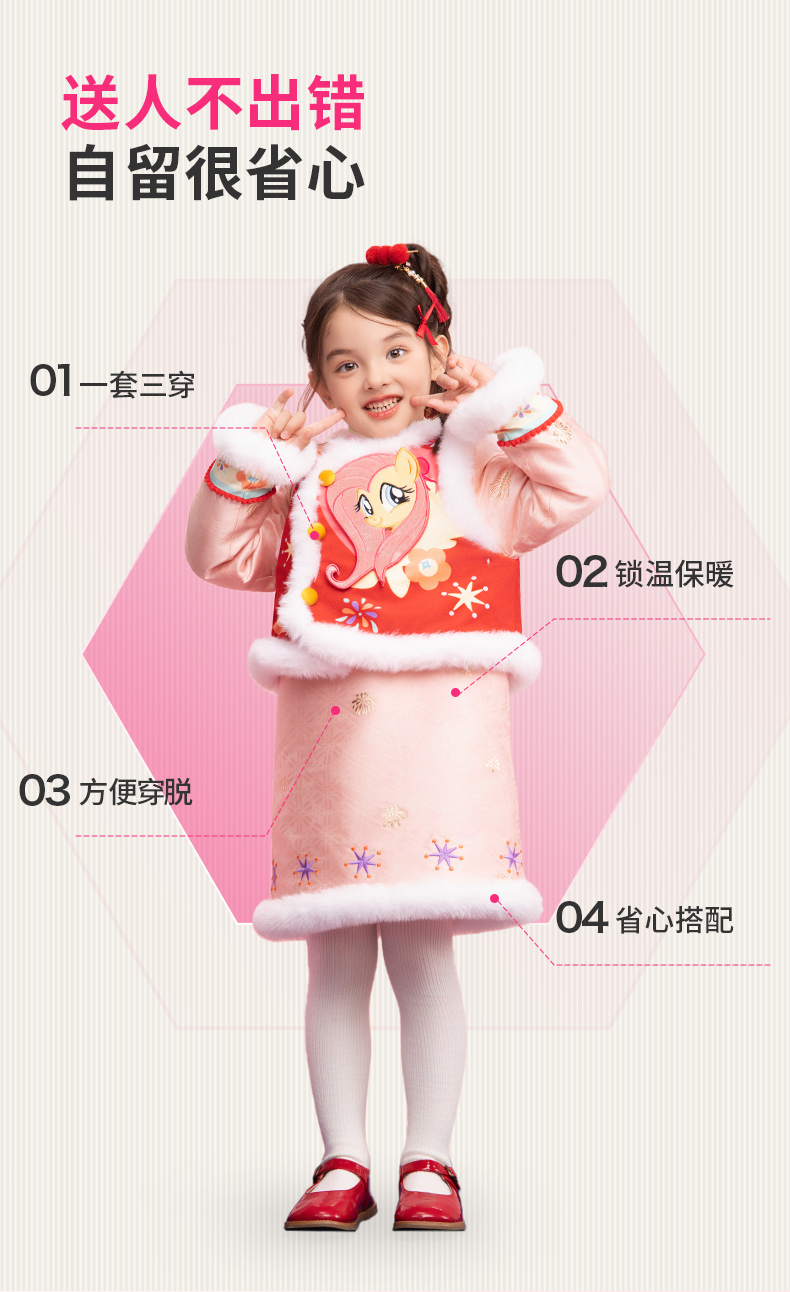 小马宝莉联名年衣童装马褂套装冬季新款中式小马宝莉新年旗袍套装