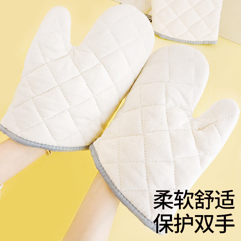 白色 烘焙耐高温隔热手套 烤炉烤箱微波炉防烫棉质手套(1副)