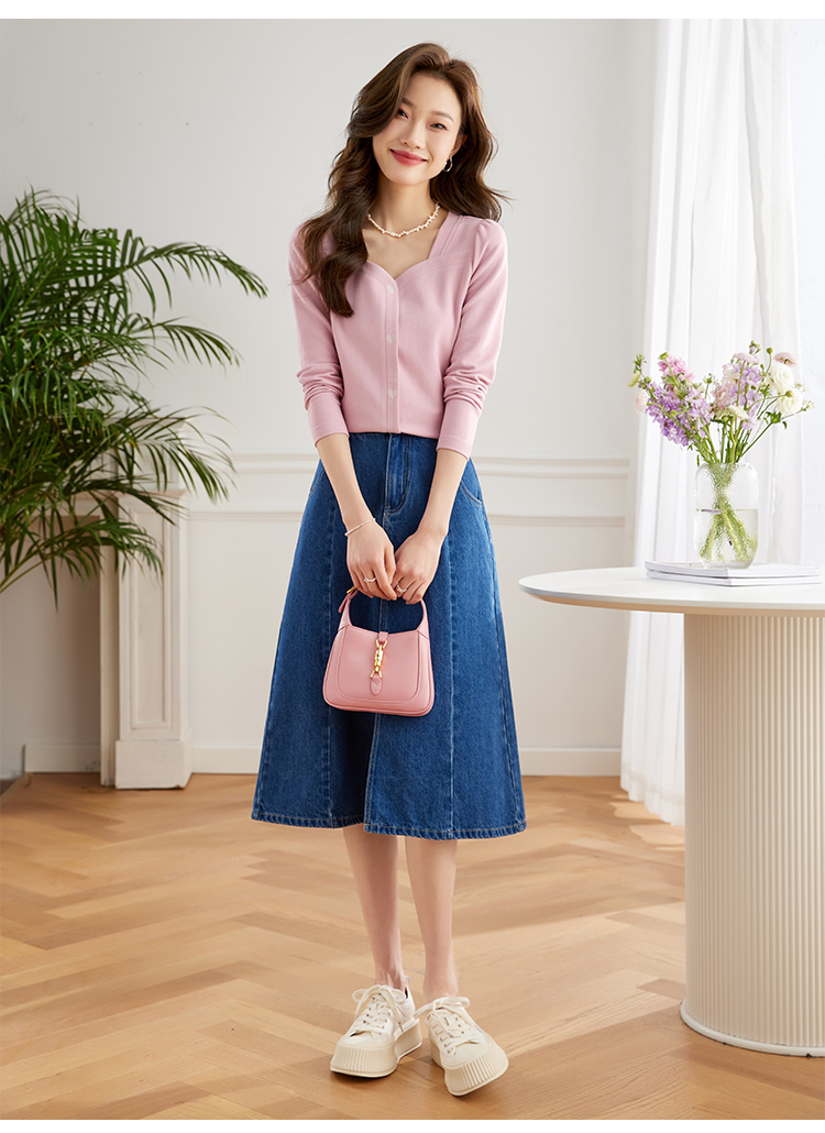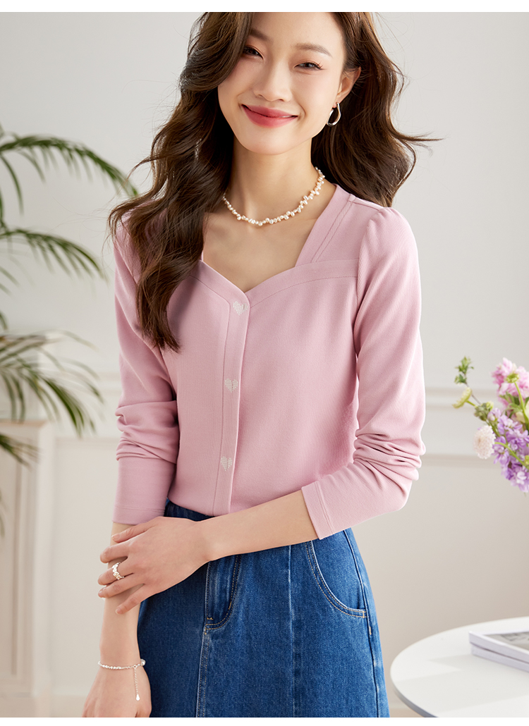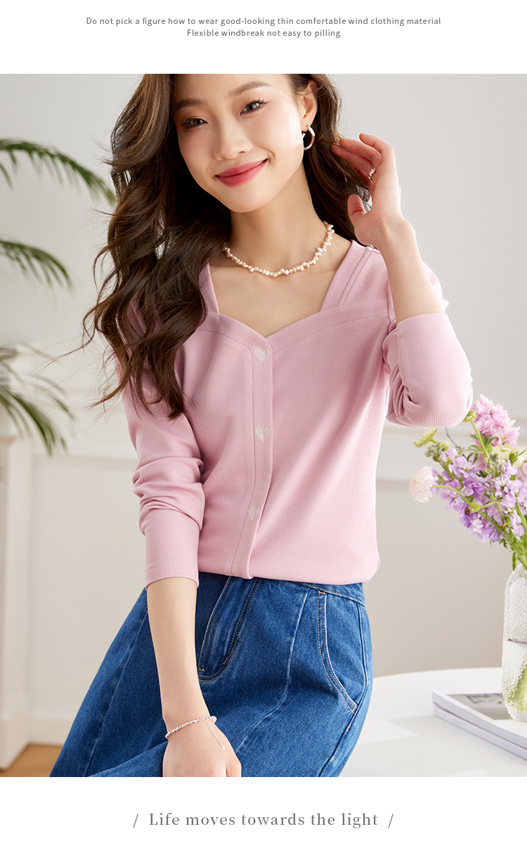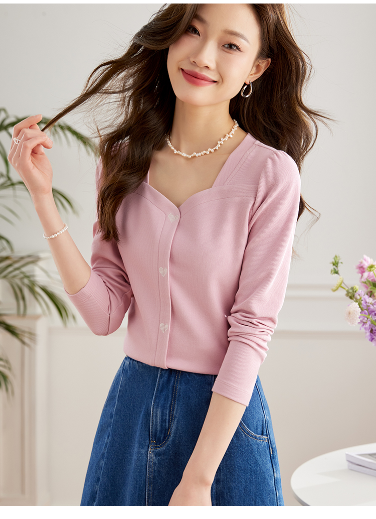 【年终特卖】熙世界巨显瘦黑色长袖针织衫女秋新款宽松设计感长袖V领打底上衣