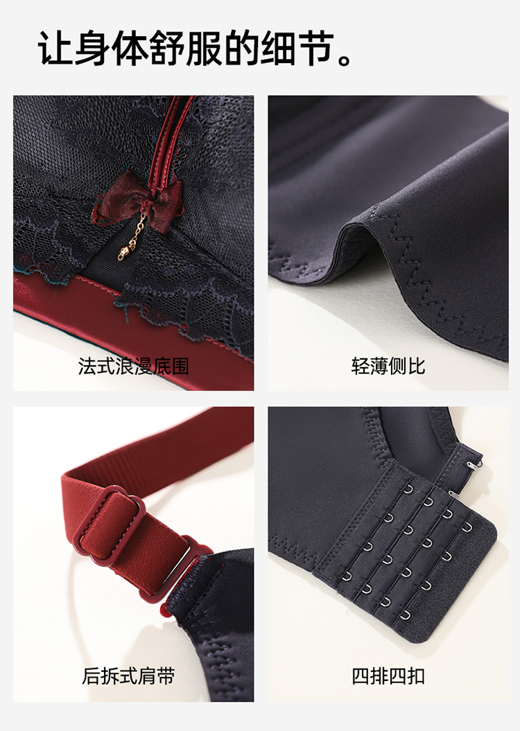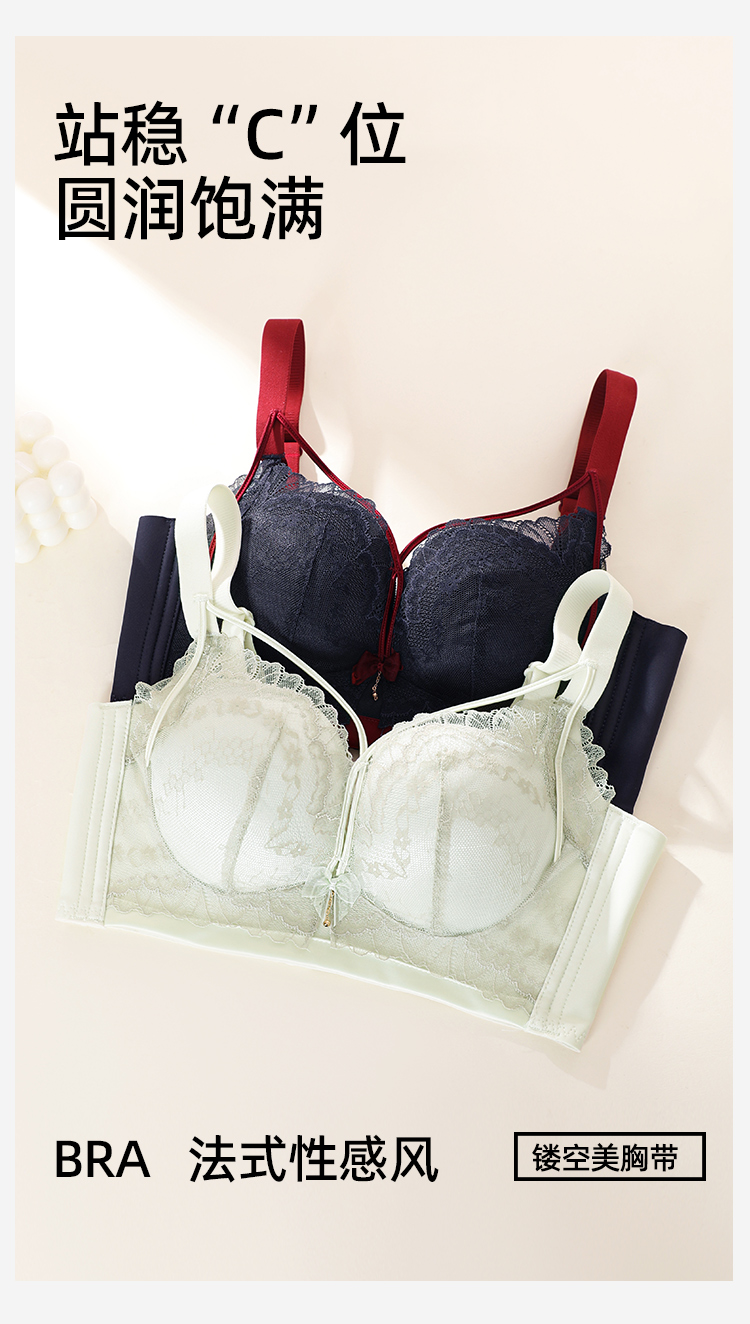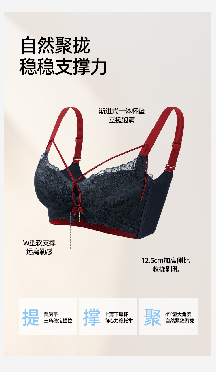 熳洁儿 小胸聚拢文胸性感美胸带中厚杯蕾丝内衣莫代尔26261523