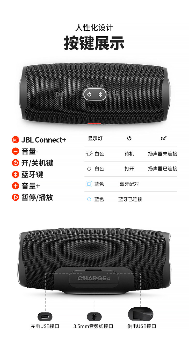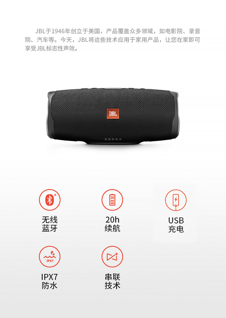 JBL CHARGE4冲击波四代便携式蓝牙音箱