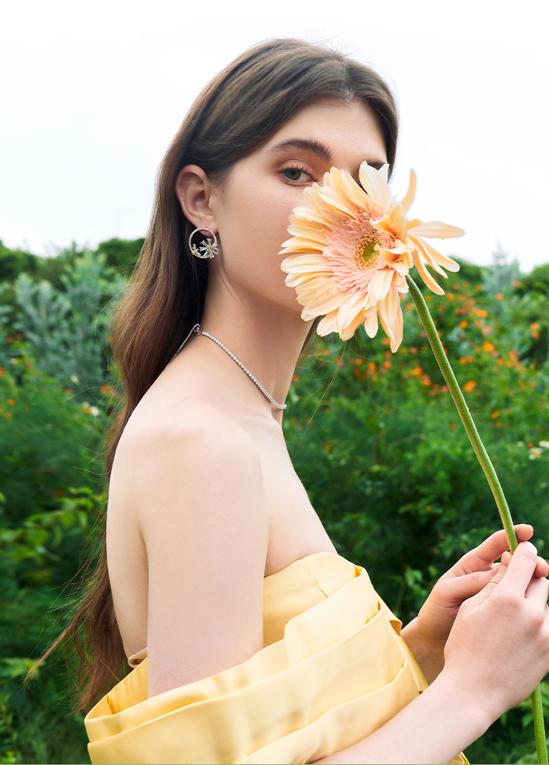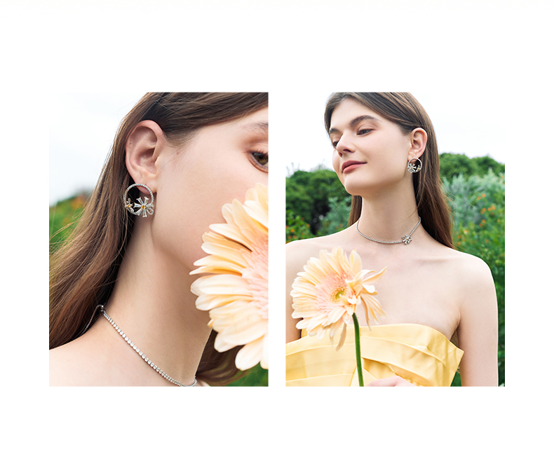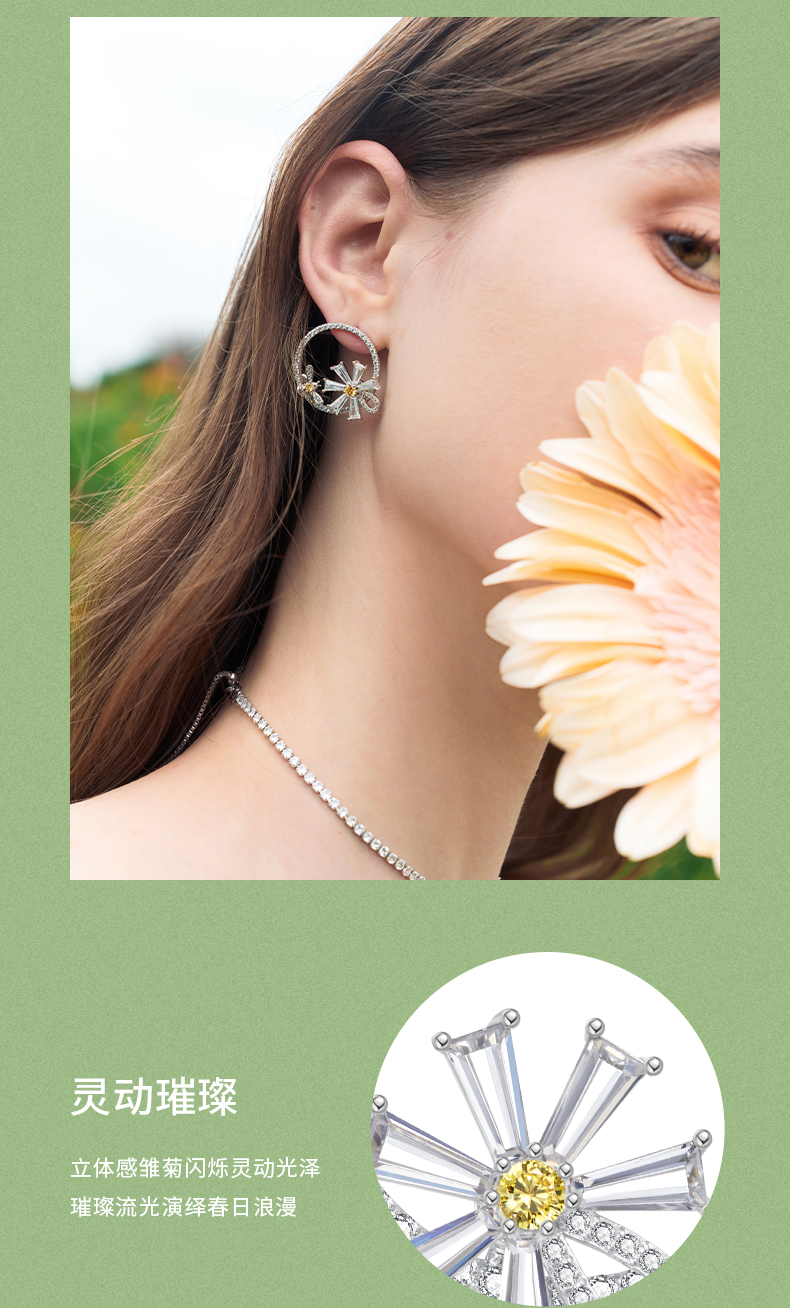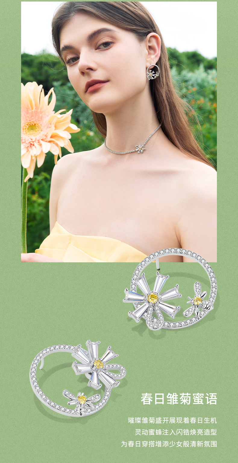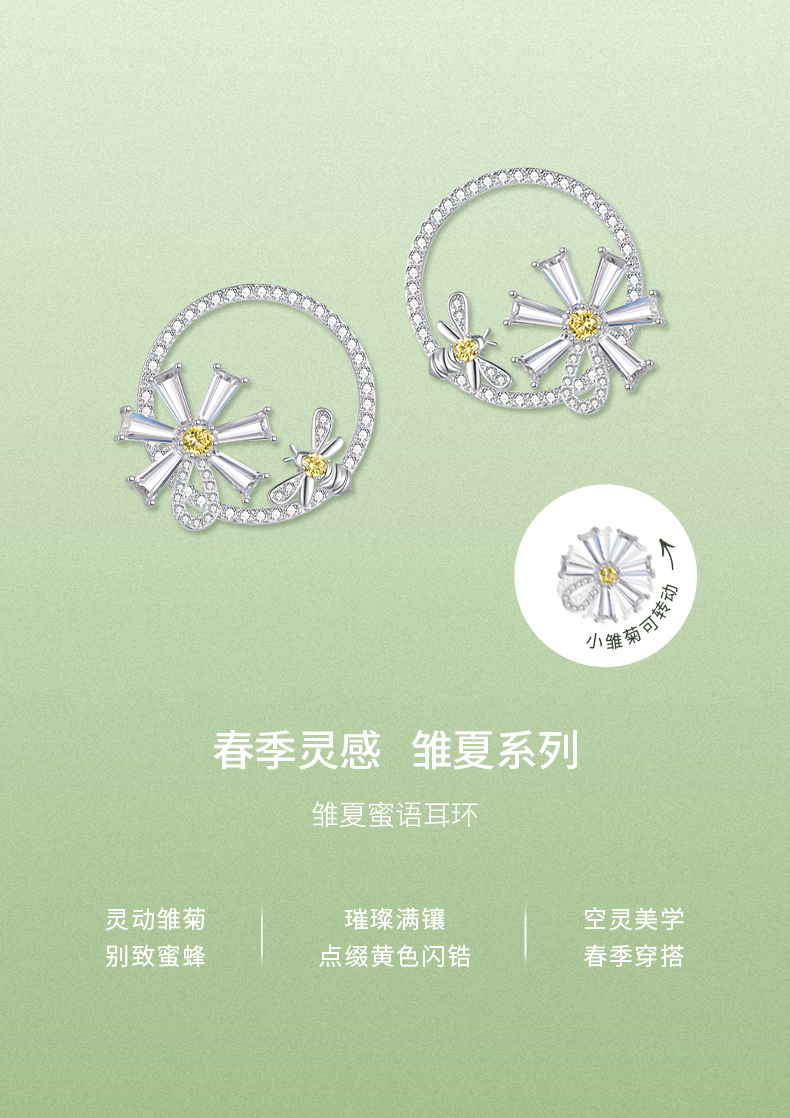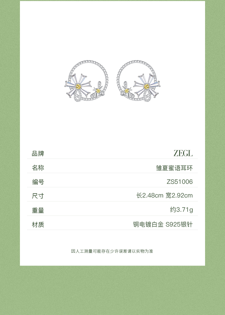 ZEGL设计师雏夏系列雏菊蜜蜂耳环女小众圈圈可爱耳钉925银针耳饰