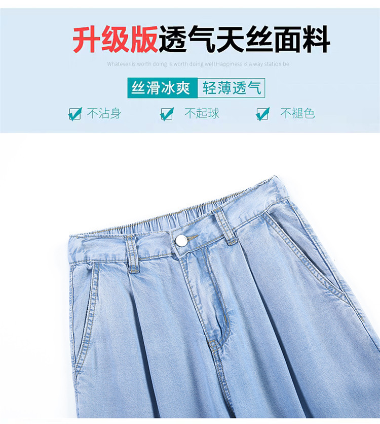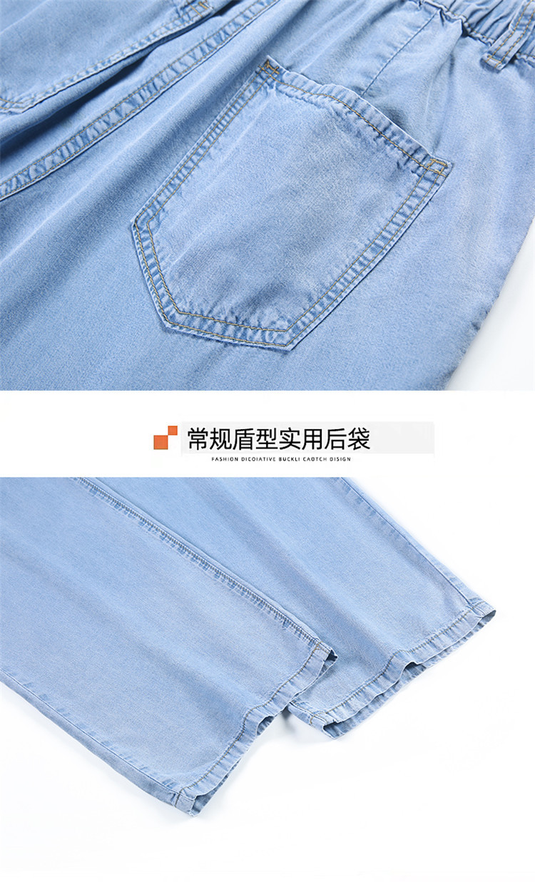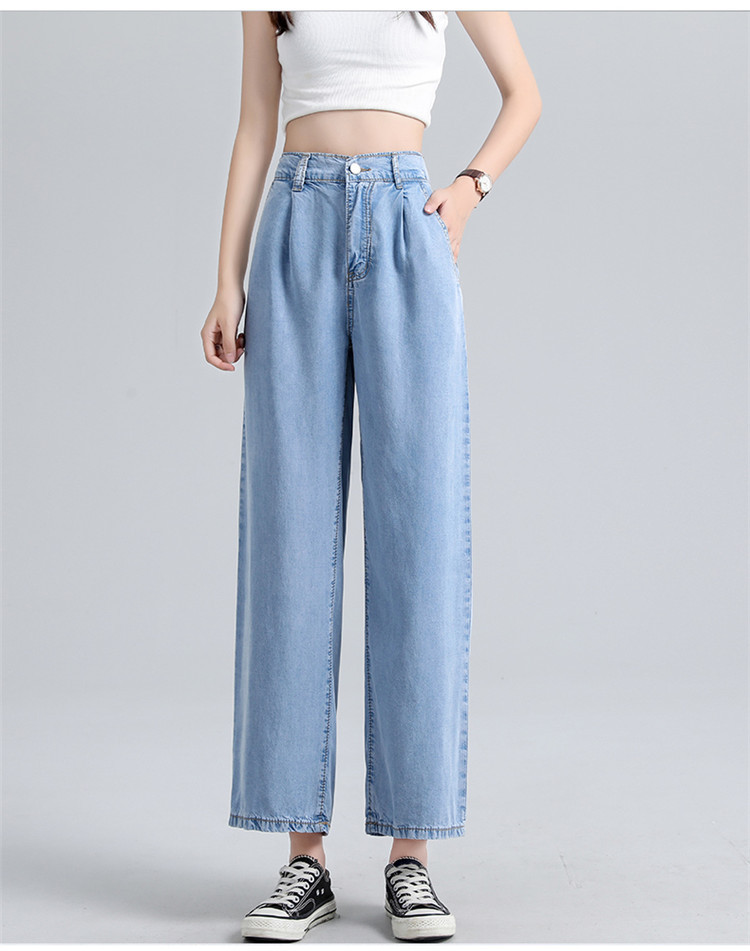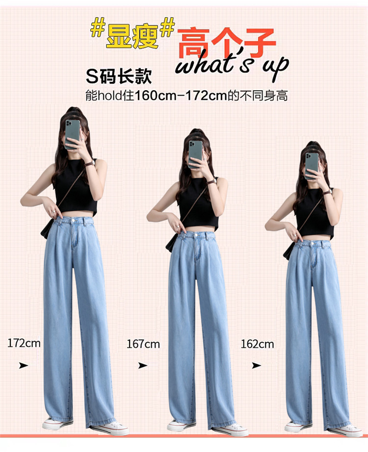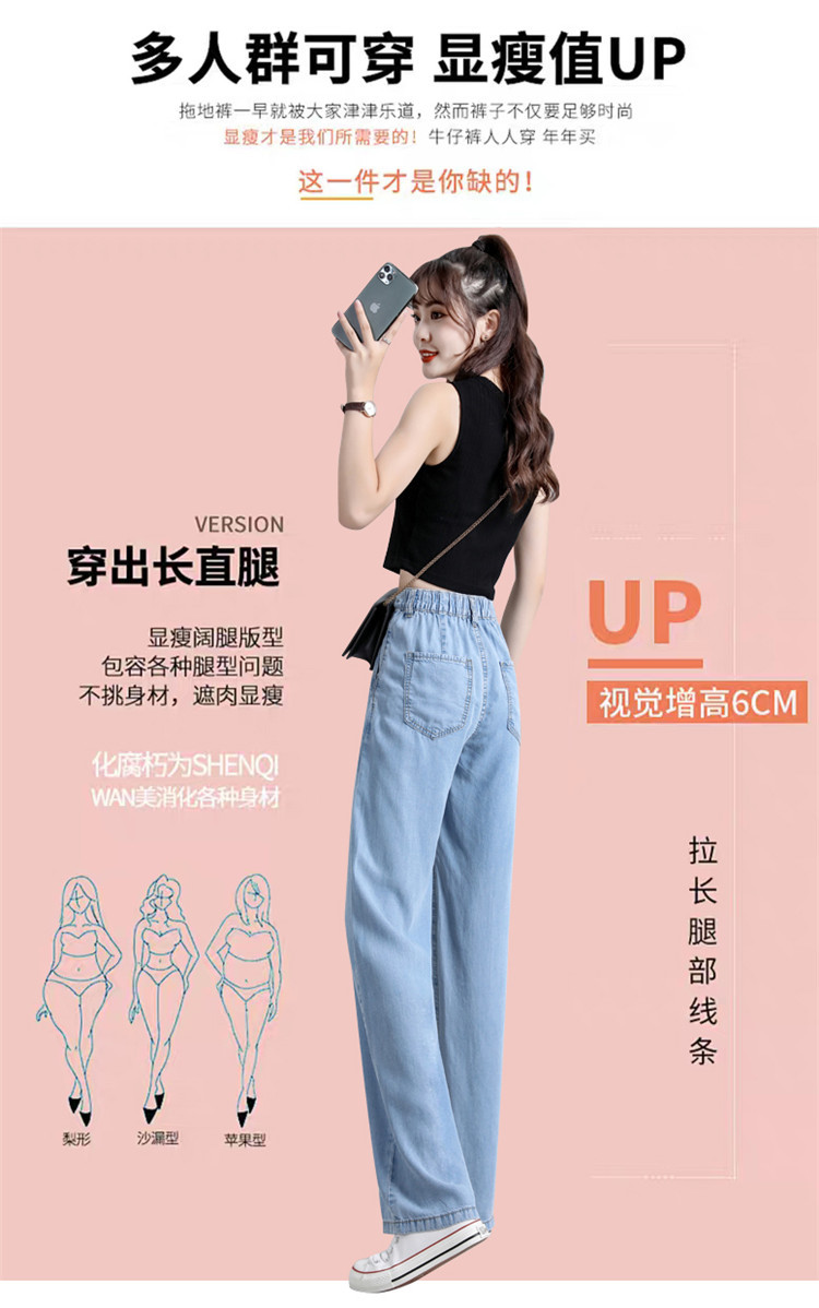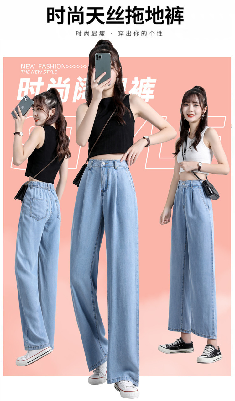 女装浅蓝色牛仔裤女 高腰显瘦阔腿垂感拖地裤子薄款