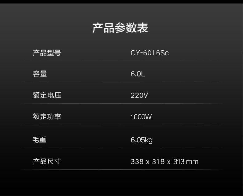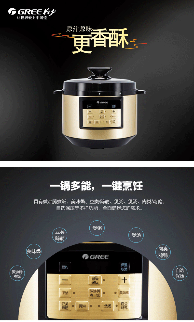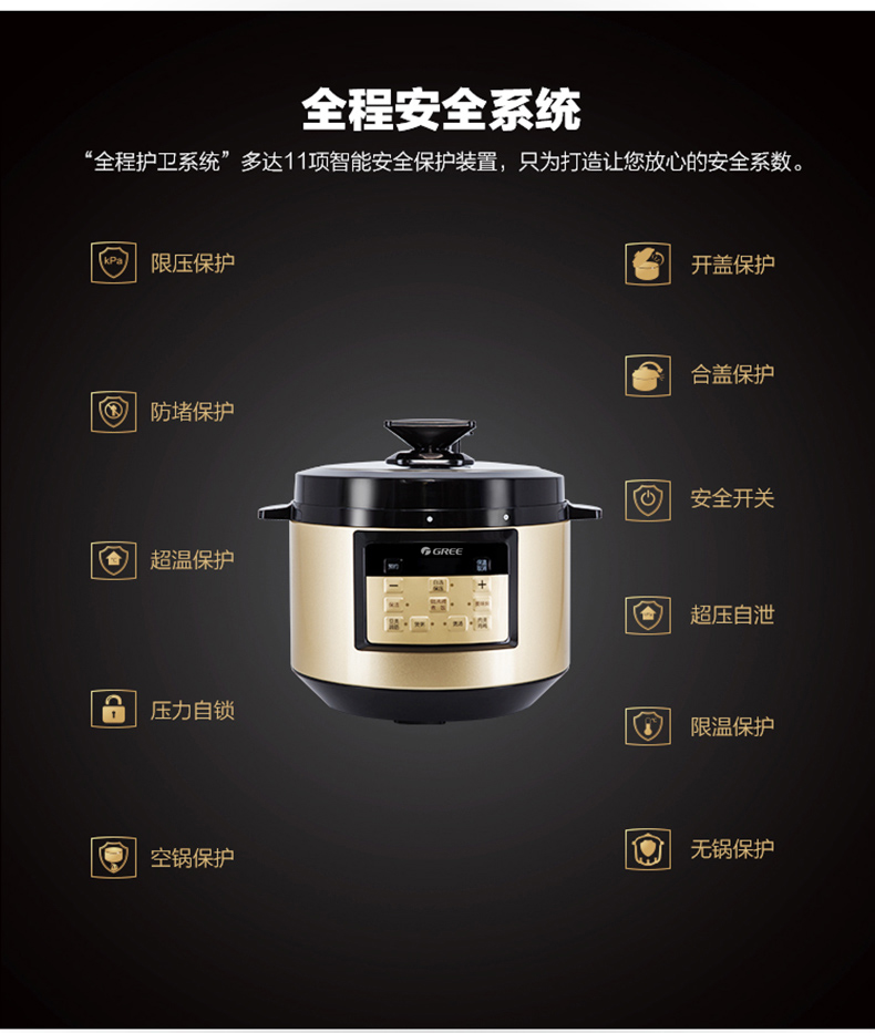 格力 电压力锅 可拆卸锅盖和保温盖板 6L CY-6016Sc 黑+香槟金