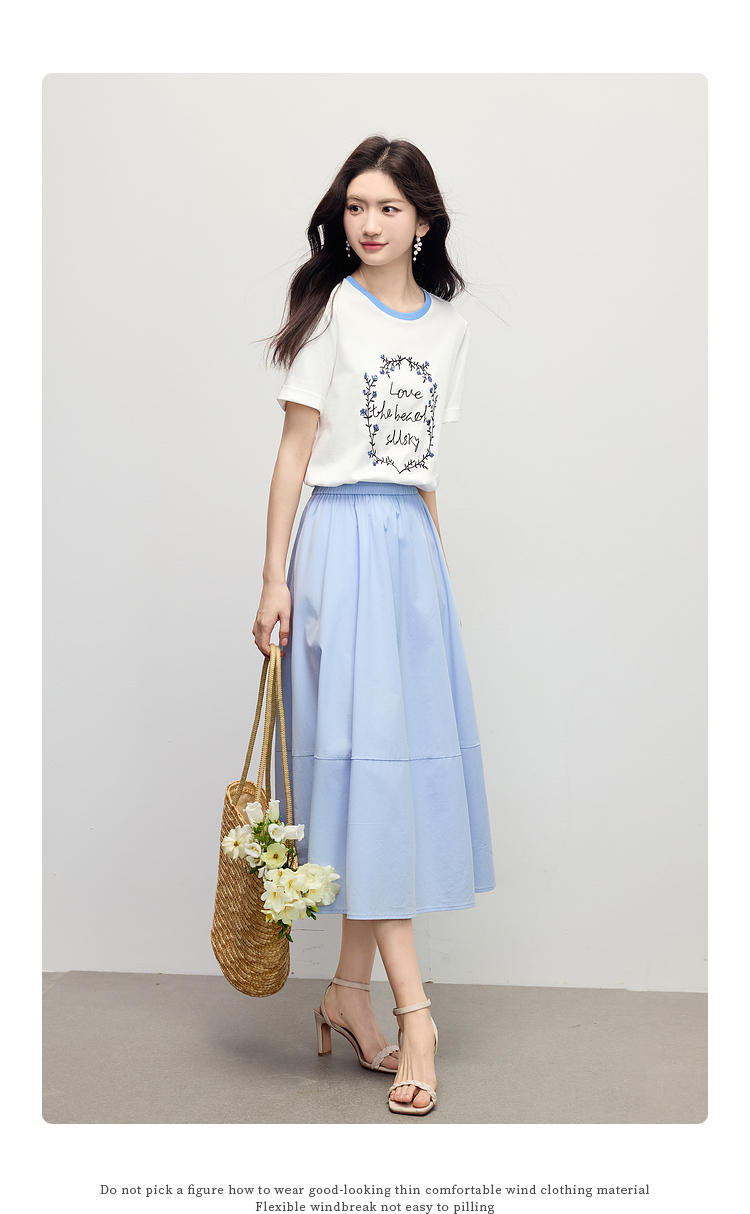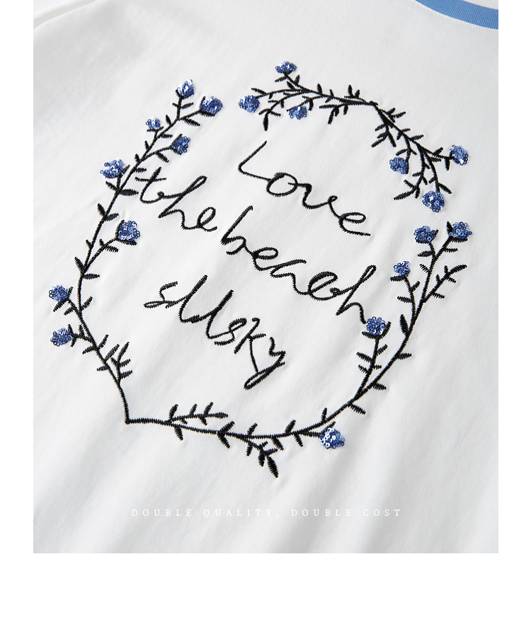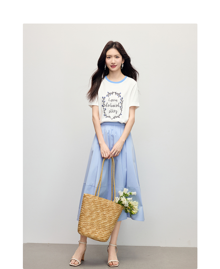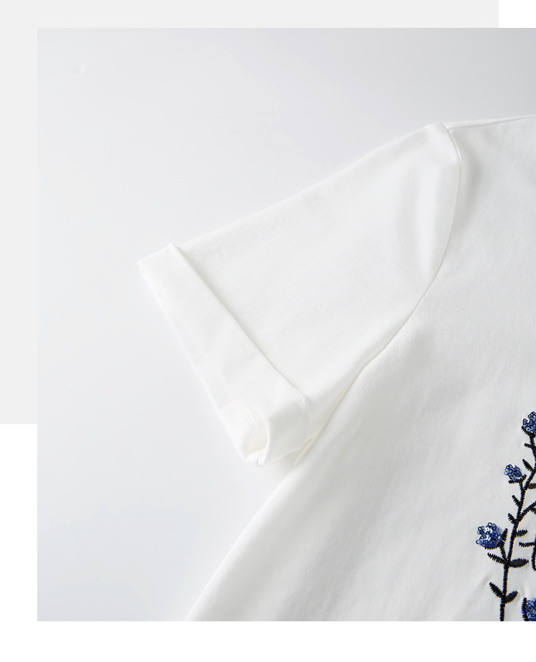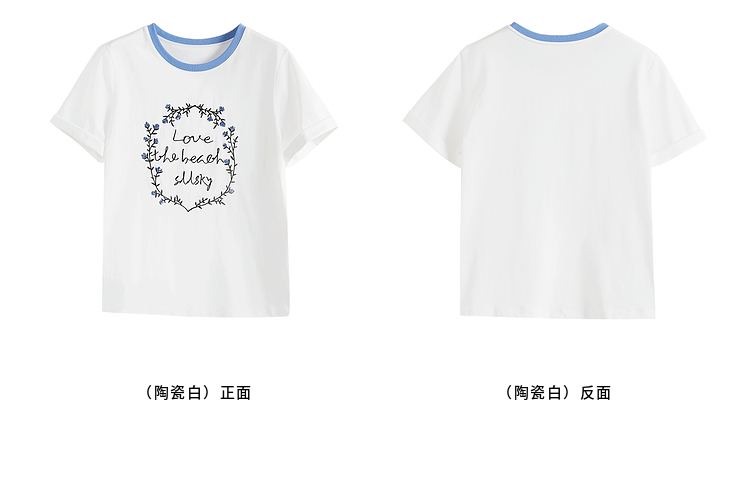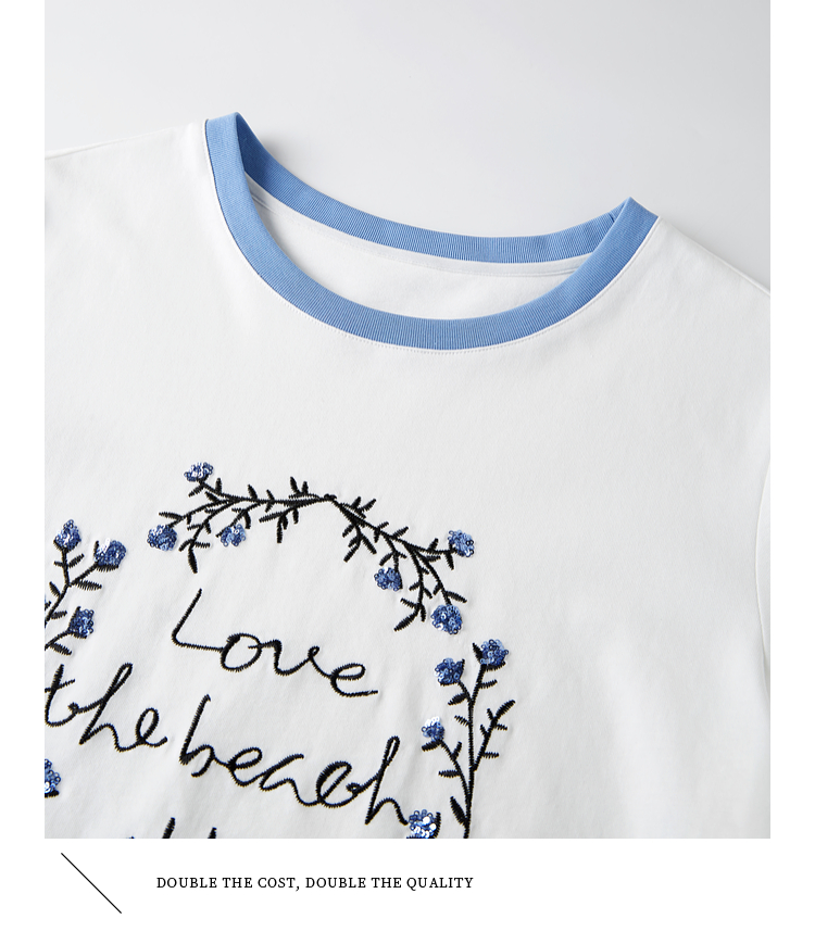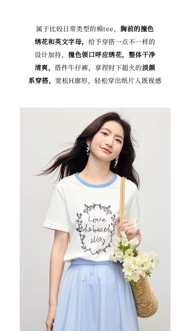 【专属特价】熙世界花卉刺绣正肩T恤女短袖2025夏日新款撞色圆领chic别致上衣