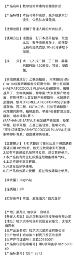 敷尔佳灯泡膜(虾青素传明 酸修复贴)26g*5