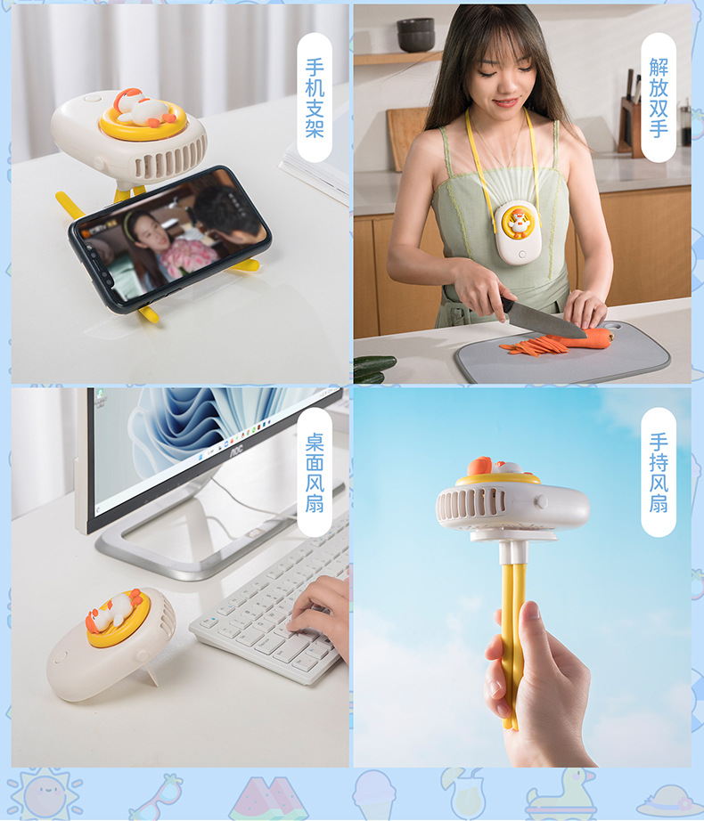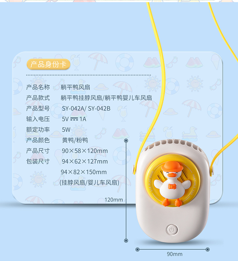 【无叶不伤手 可夹可挂】躺平鸭婴儿车风扇 USB设计 桌面风扇户外 一起躺平吹风呀