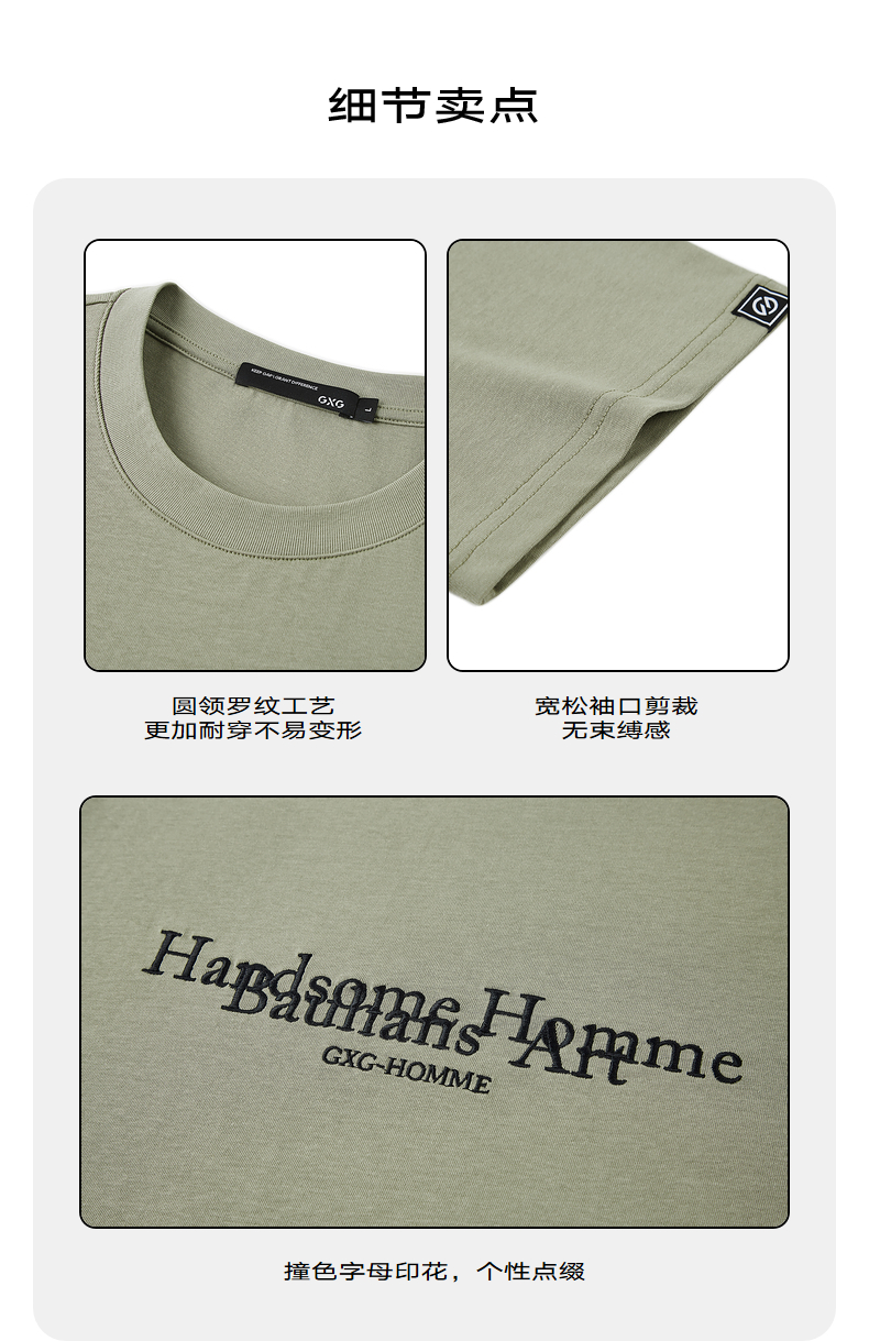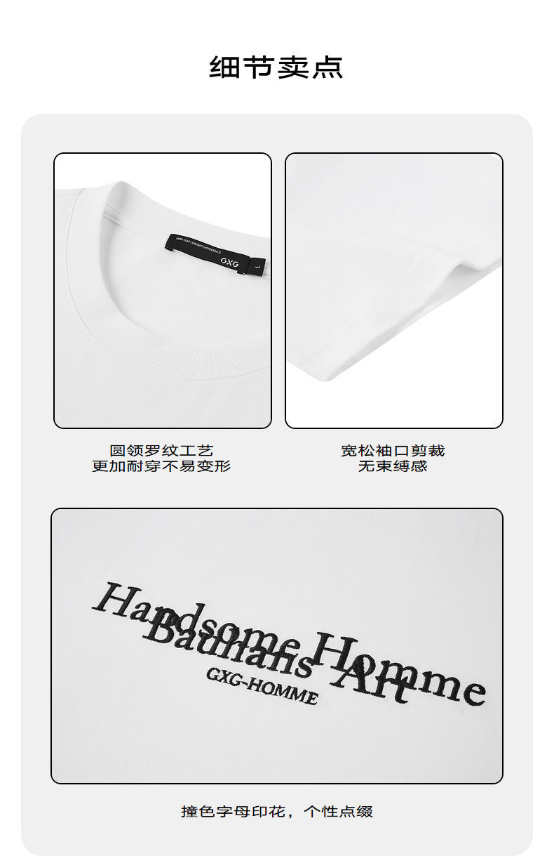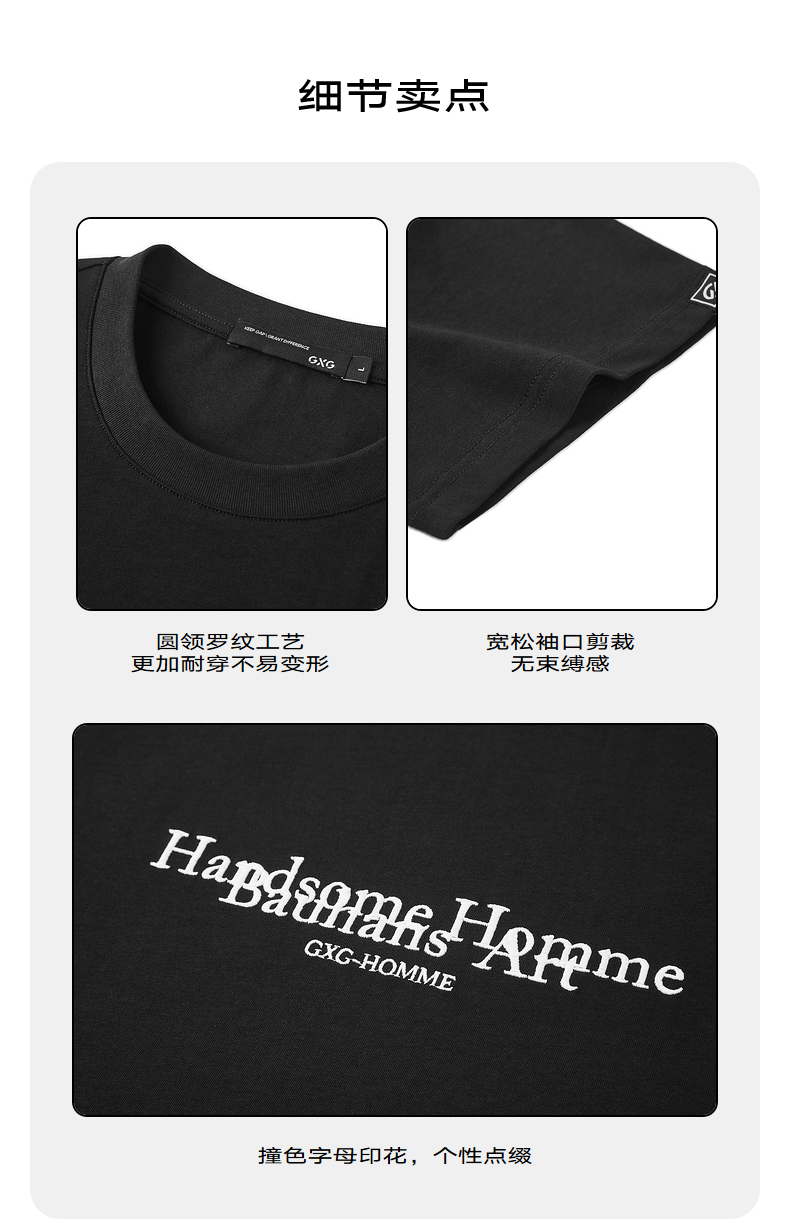 GXG夏季新品多色休闲简约撞色印花圆领短袖t恤男