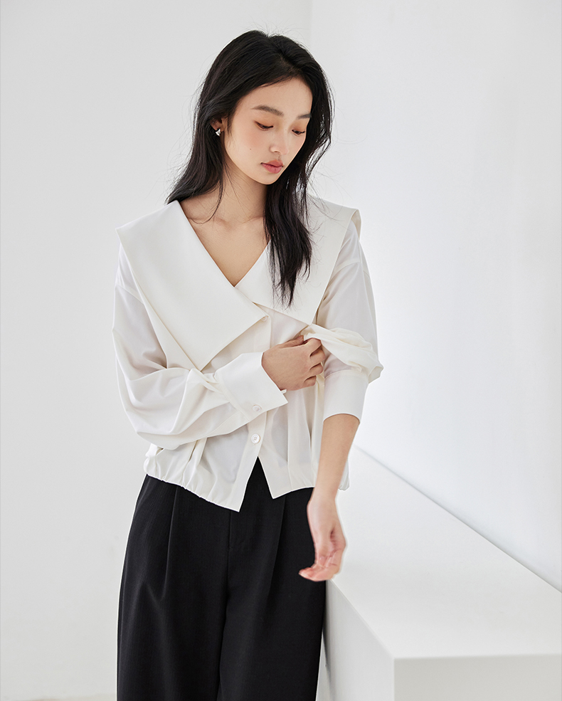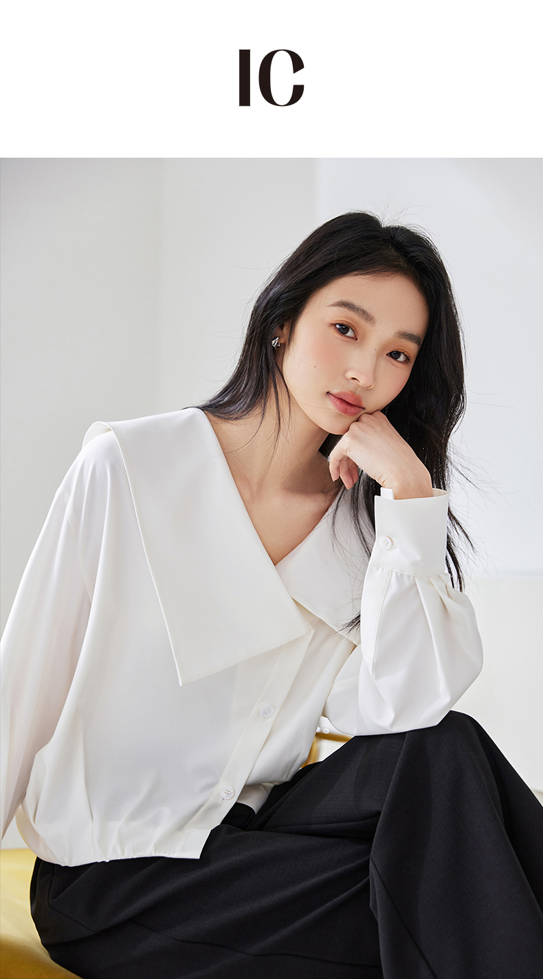 *IC 通勤白色衬衫宽松新款衬衣女修身气质设计感休闲长袖上衣