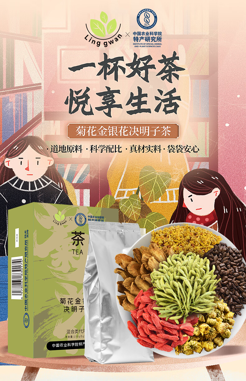 灵均【中国农科院】 菊花金银花决明子茶桂花 滋补养生茶(5g*30袋)