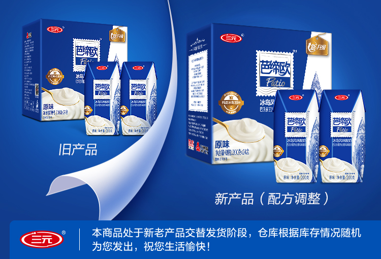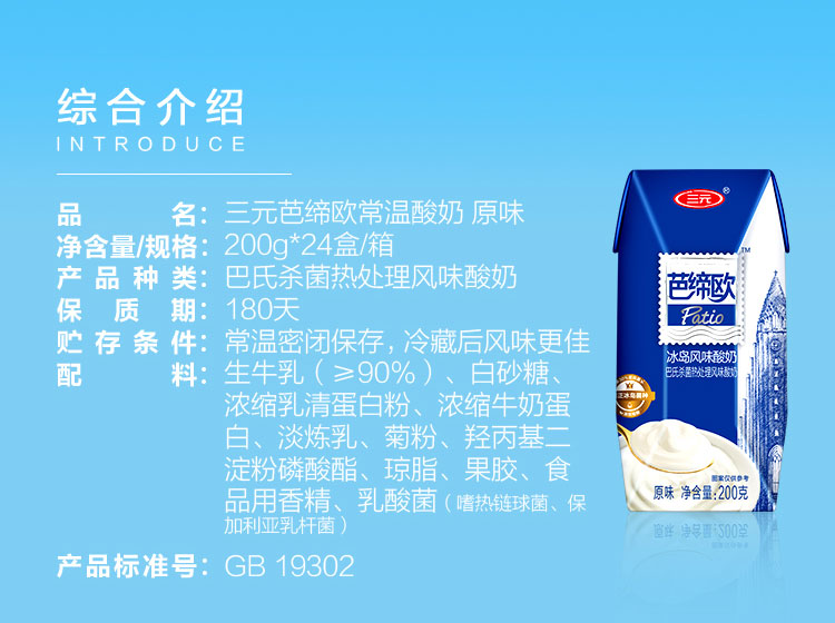 三元 芭缔欧冰岛风味酸牛奶 常温酸奶200g*24盒
