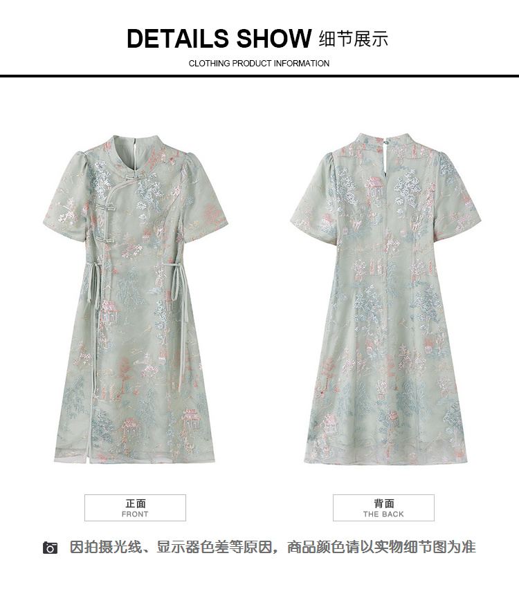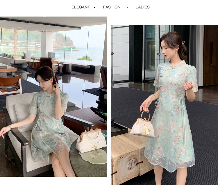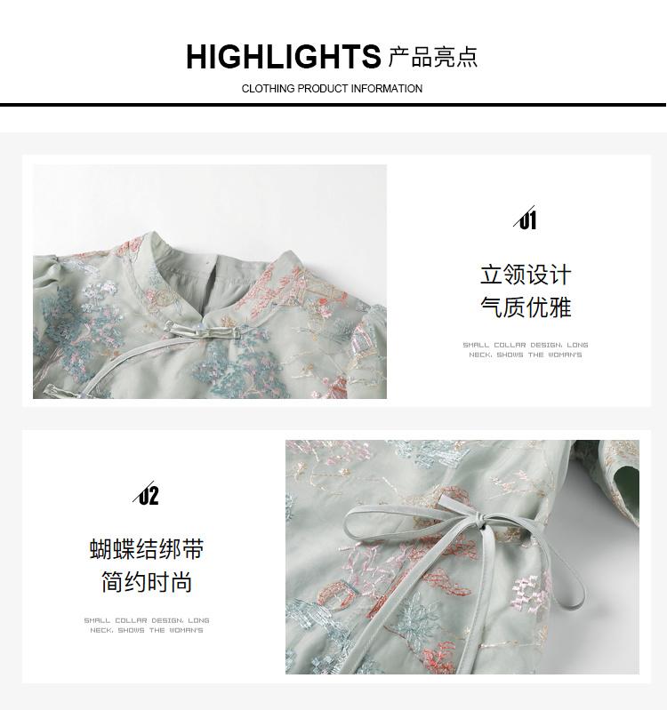 [奢姿轻奢系列]2025夏季新款复古绣花小立领旗袍胖妹妹时尚连衣裙8942860005【1】