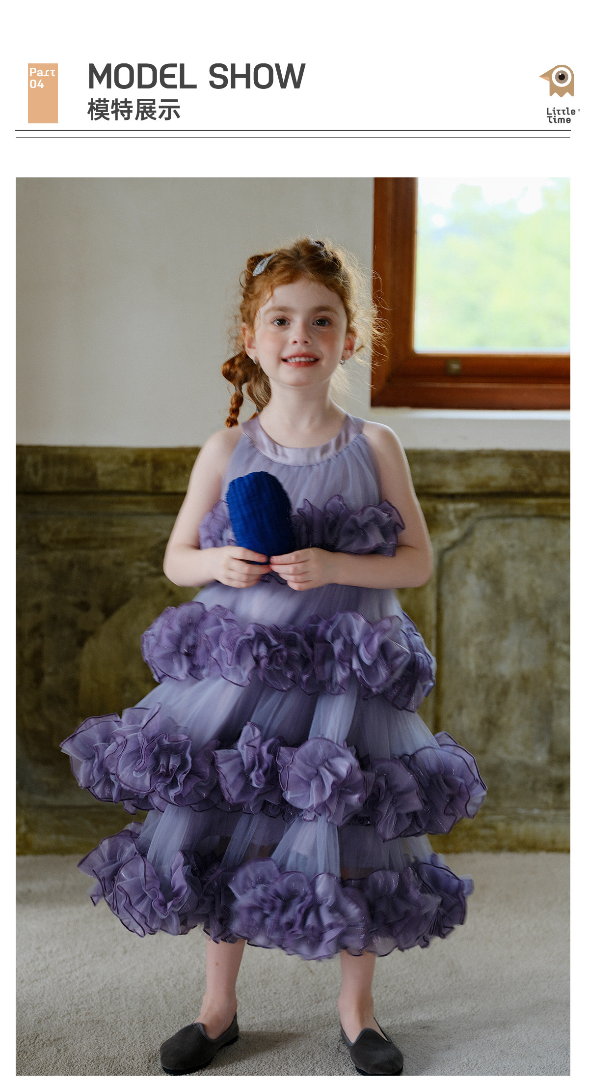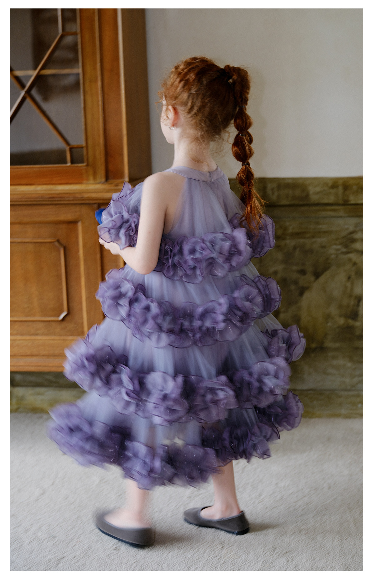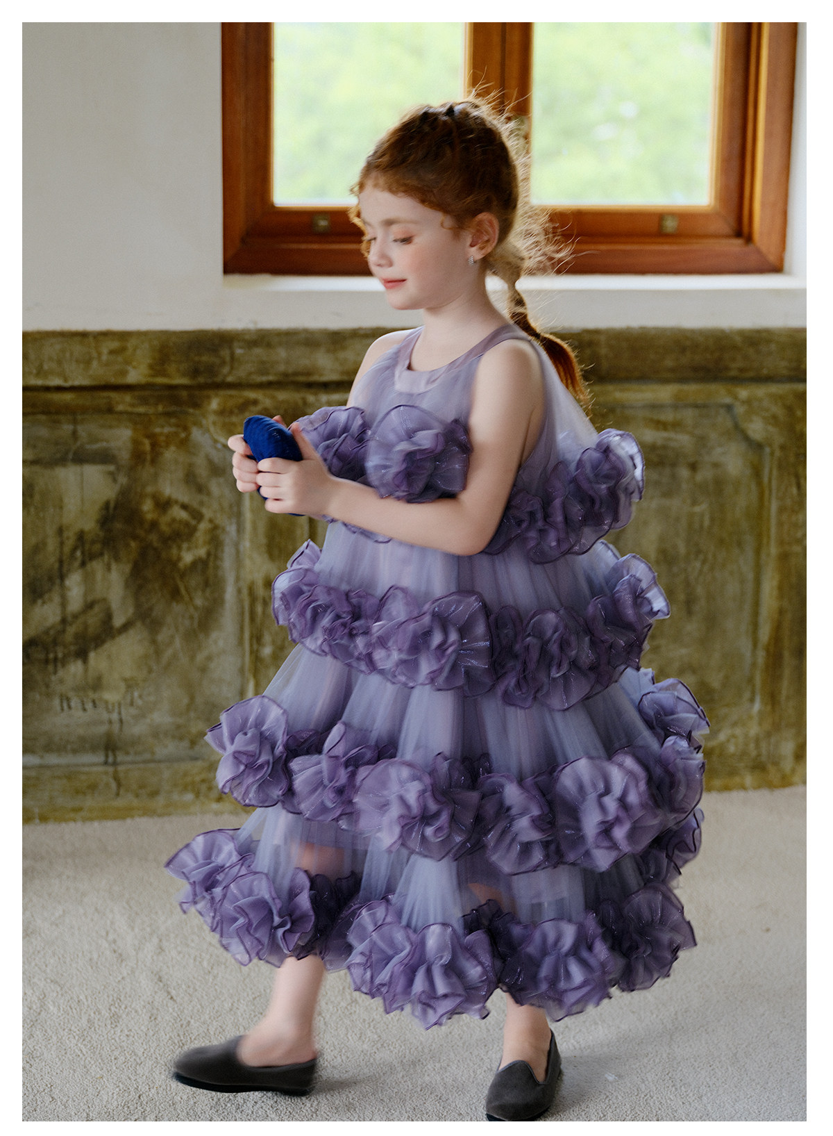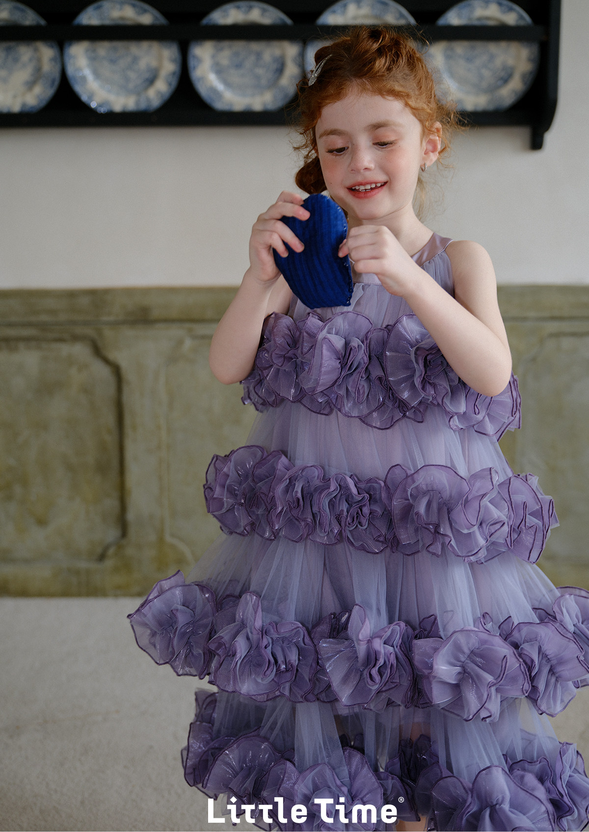 littletime女童紫色网纱蛋糕裙重工花边紫霞公主风蓬蓬礼服裙