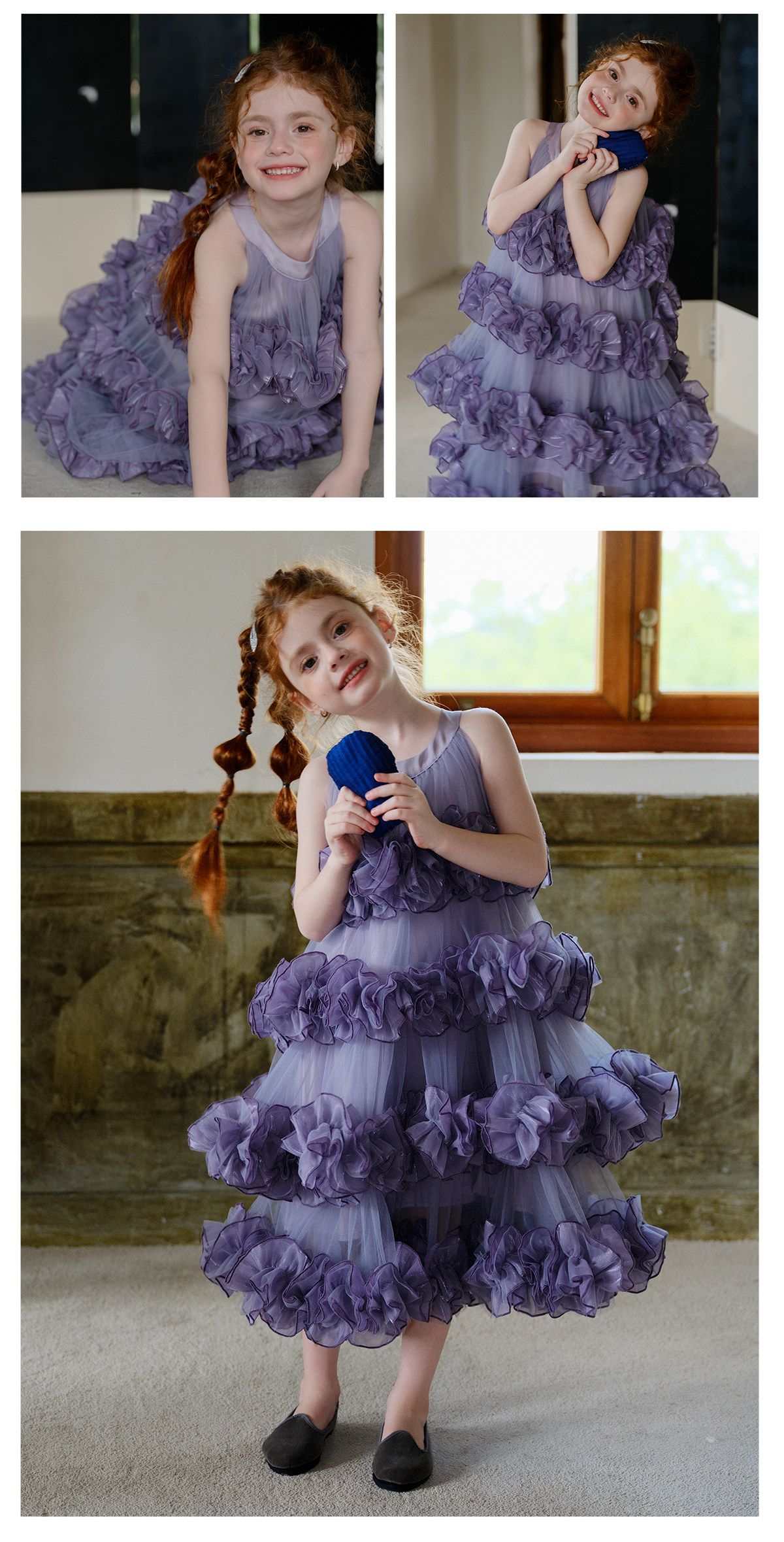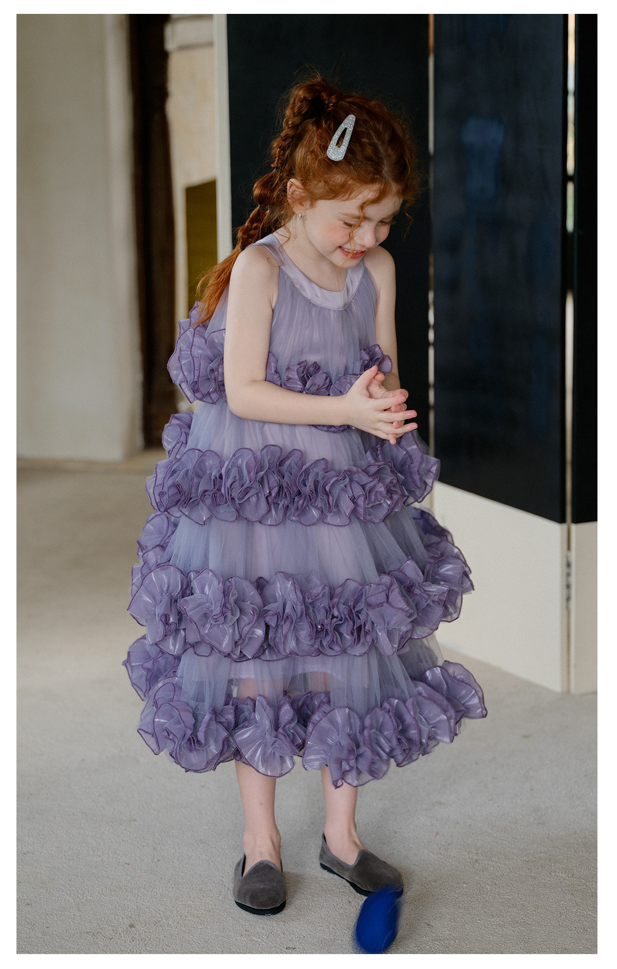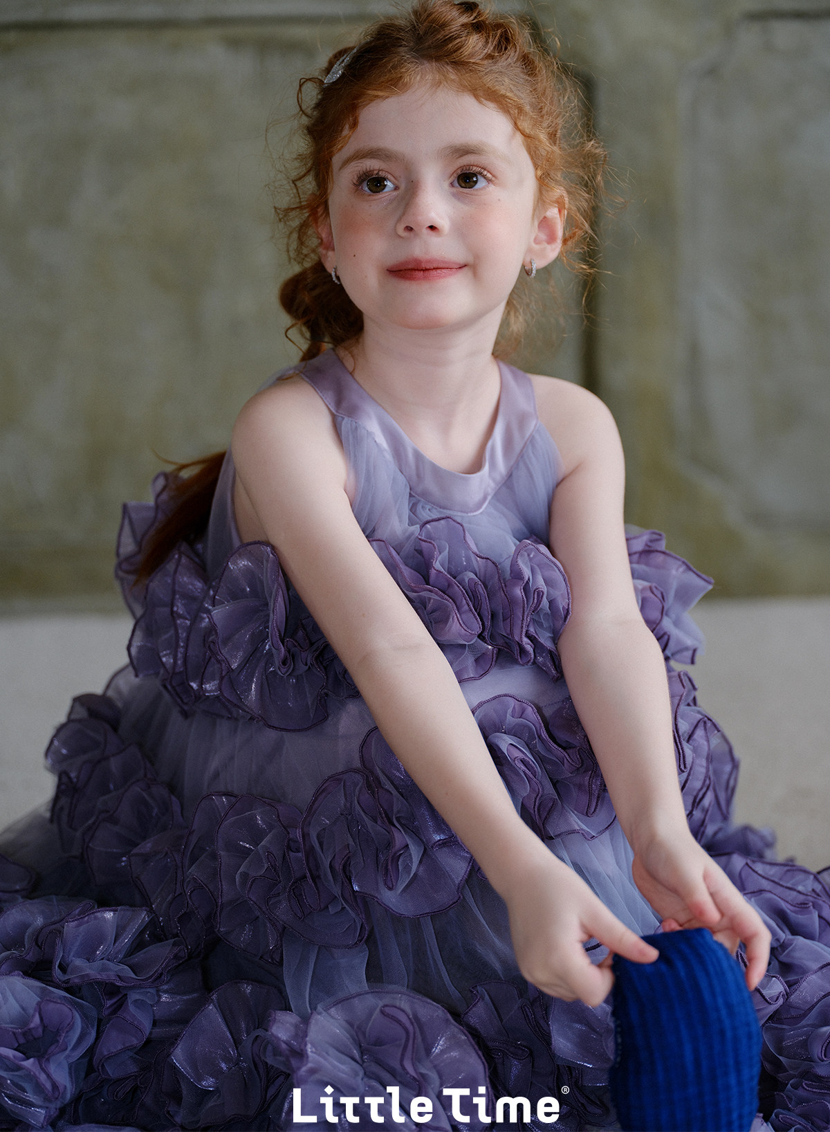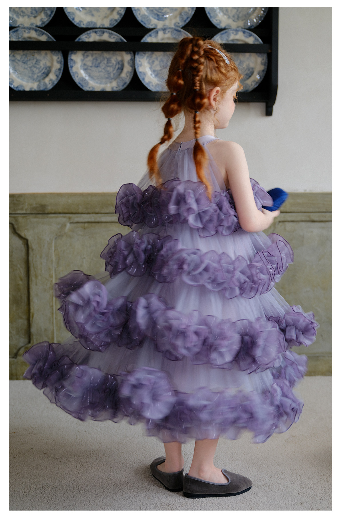 littletime女童紫色网纱蛋糕裙重工花边紫霞公主风蓬蓬礼服裙
