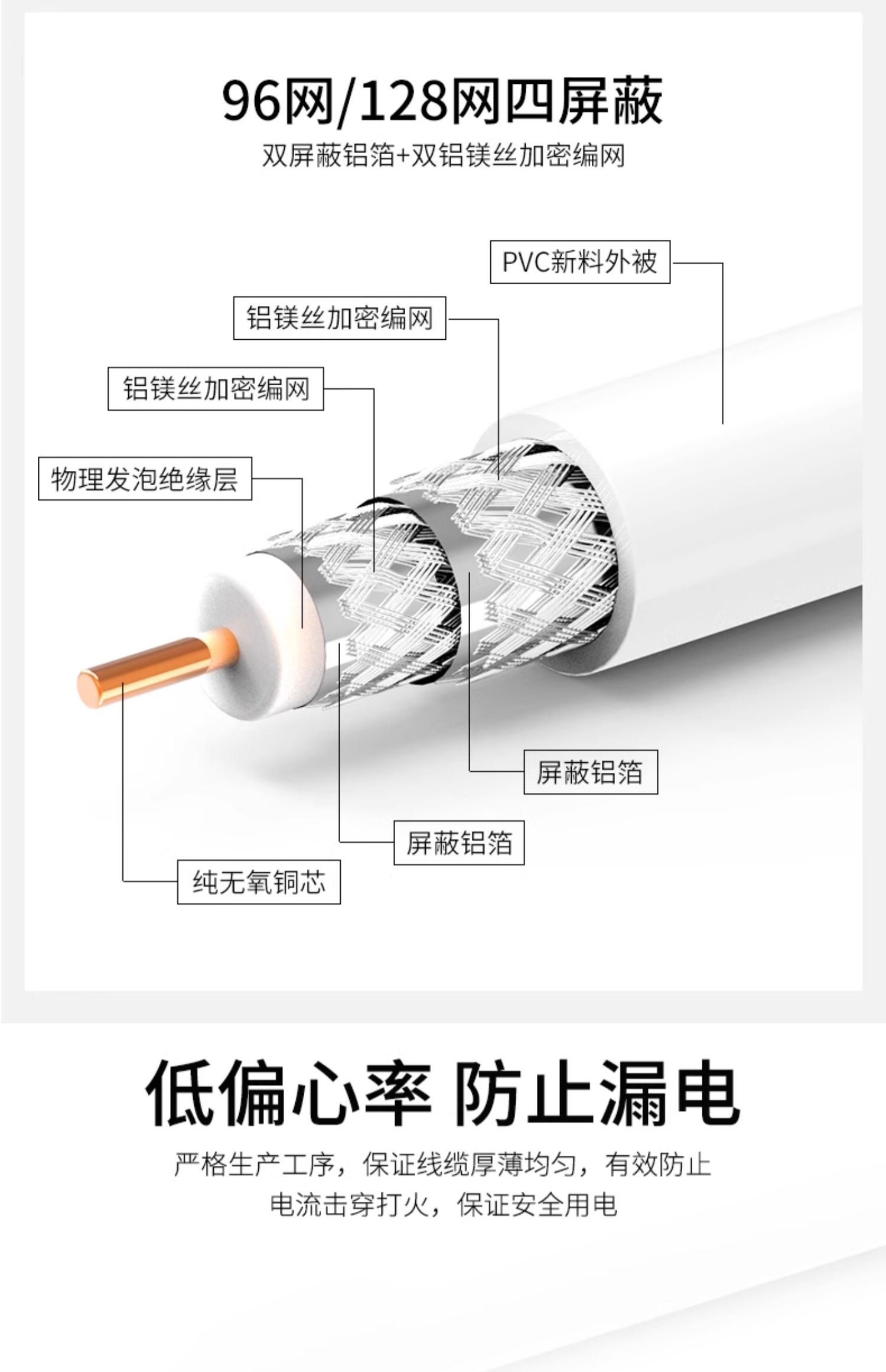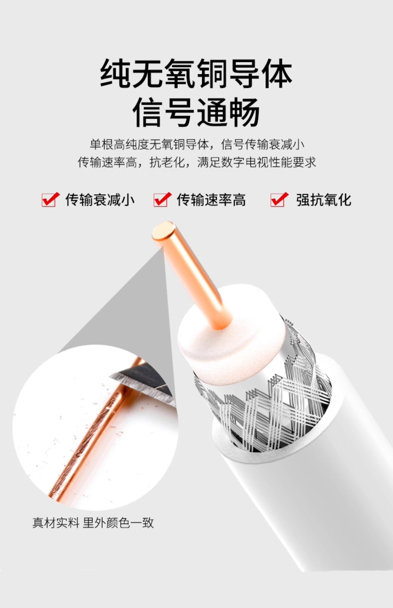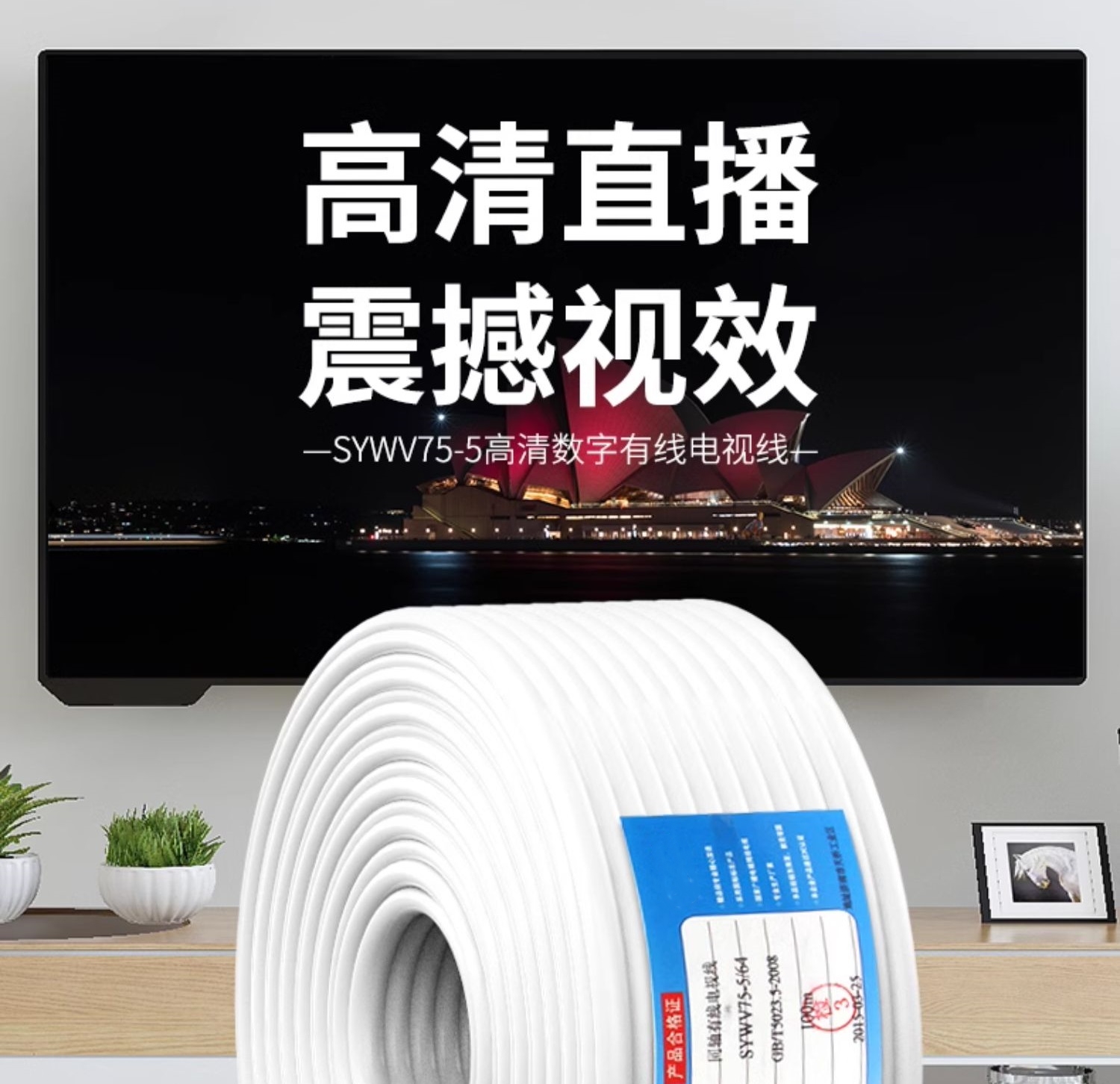 电视线@就选它【SYWV75-5 75-7/9】有线电视线高清闭路线白色双屏蔽同轴电缆数字机顶盒RF射频线纯铜芯有线电视线数字同轴线射频卫星连接专用电视闭路线