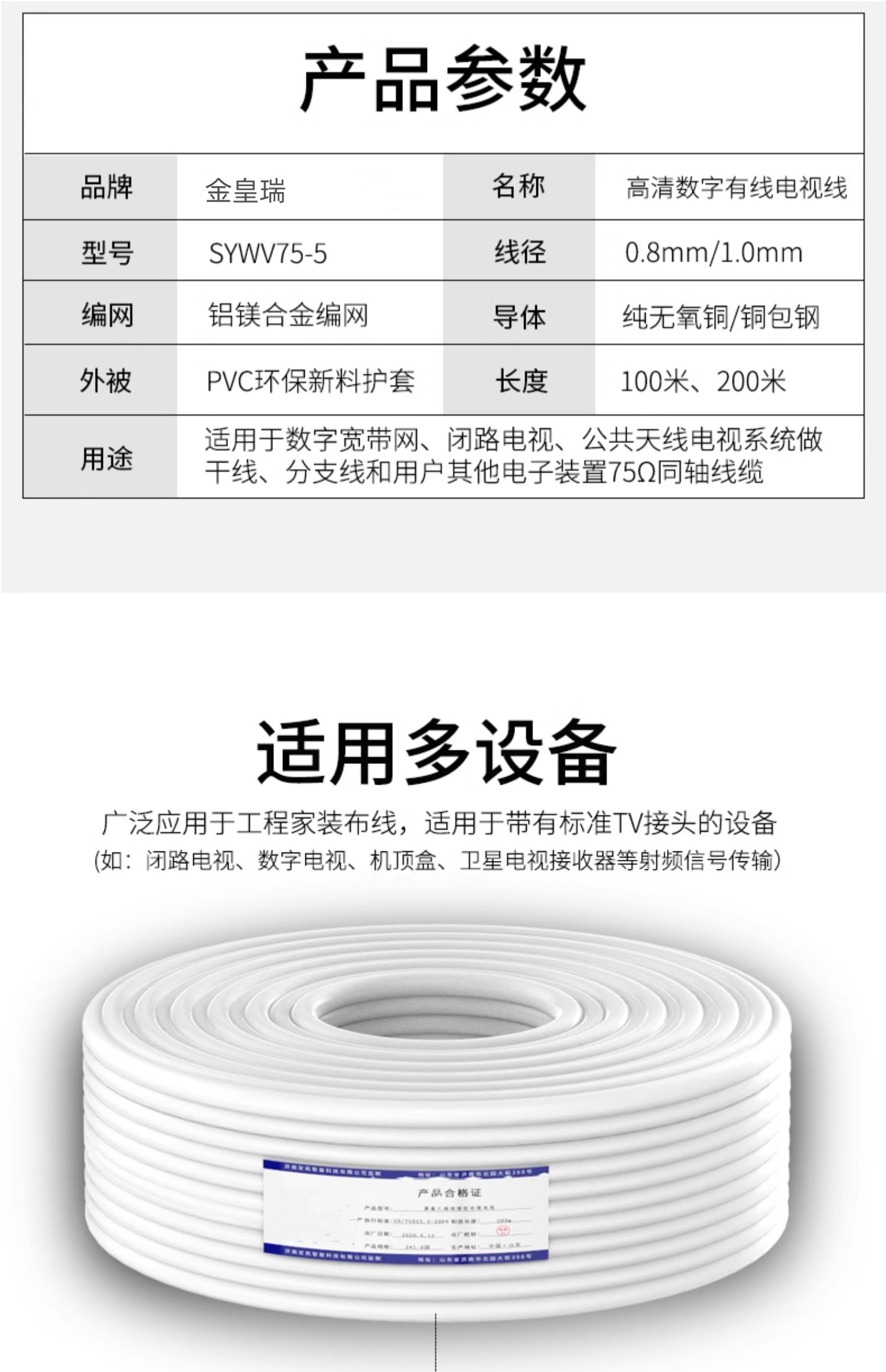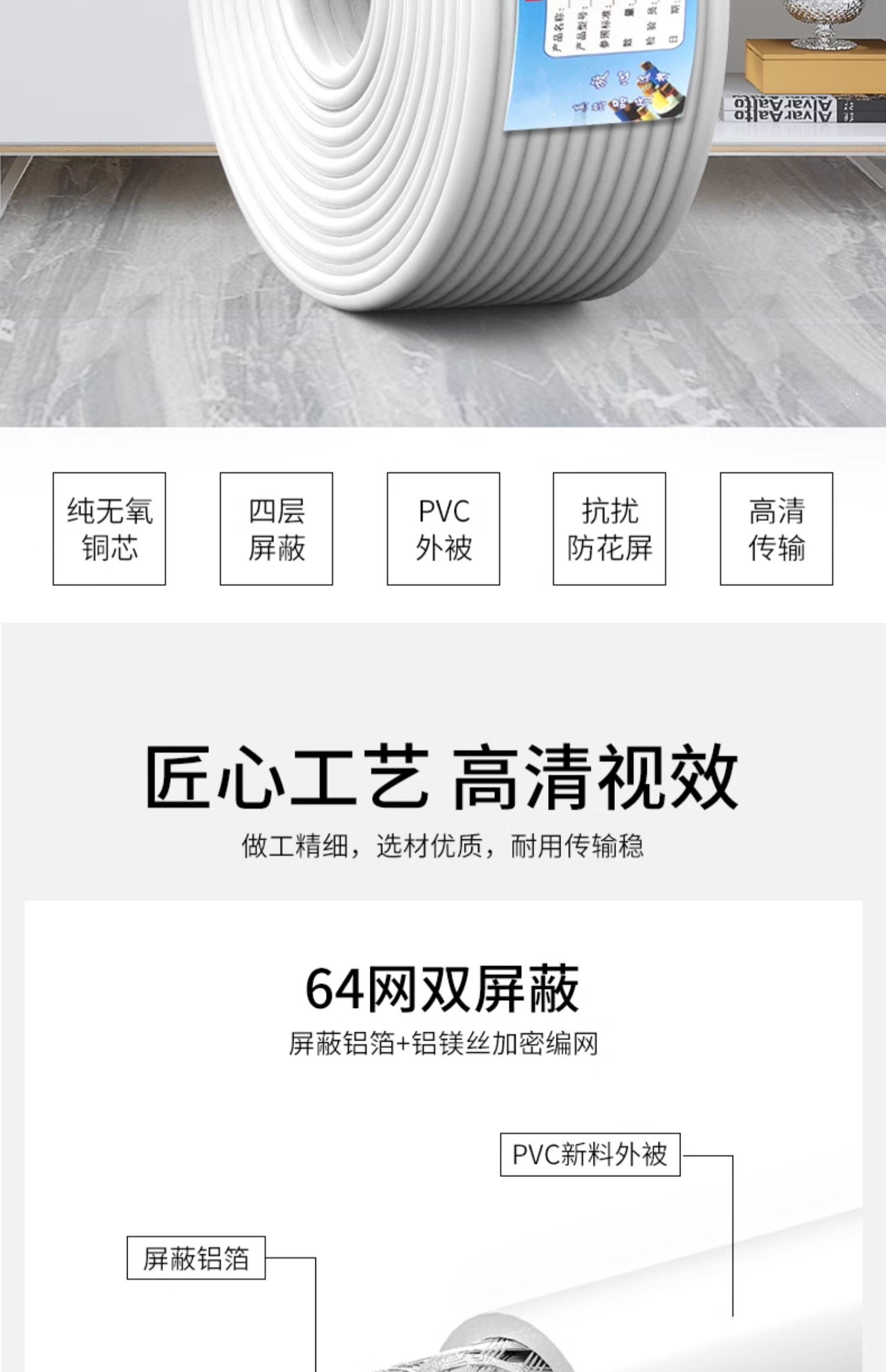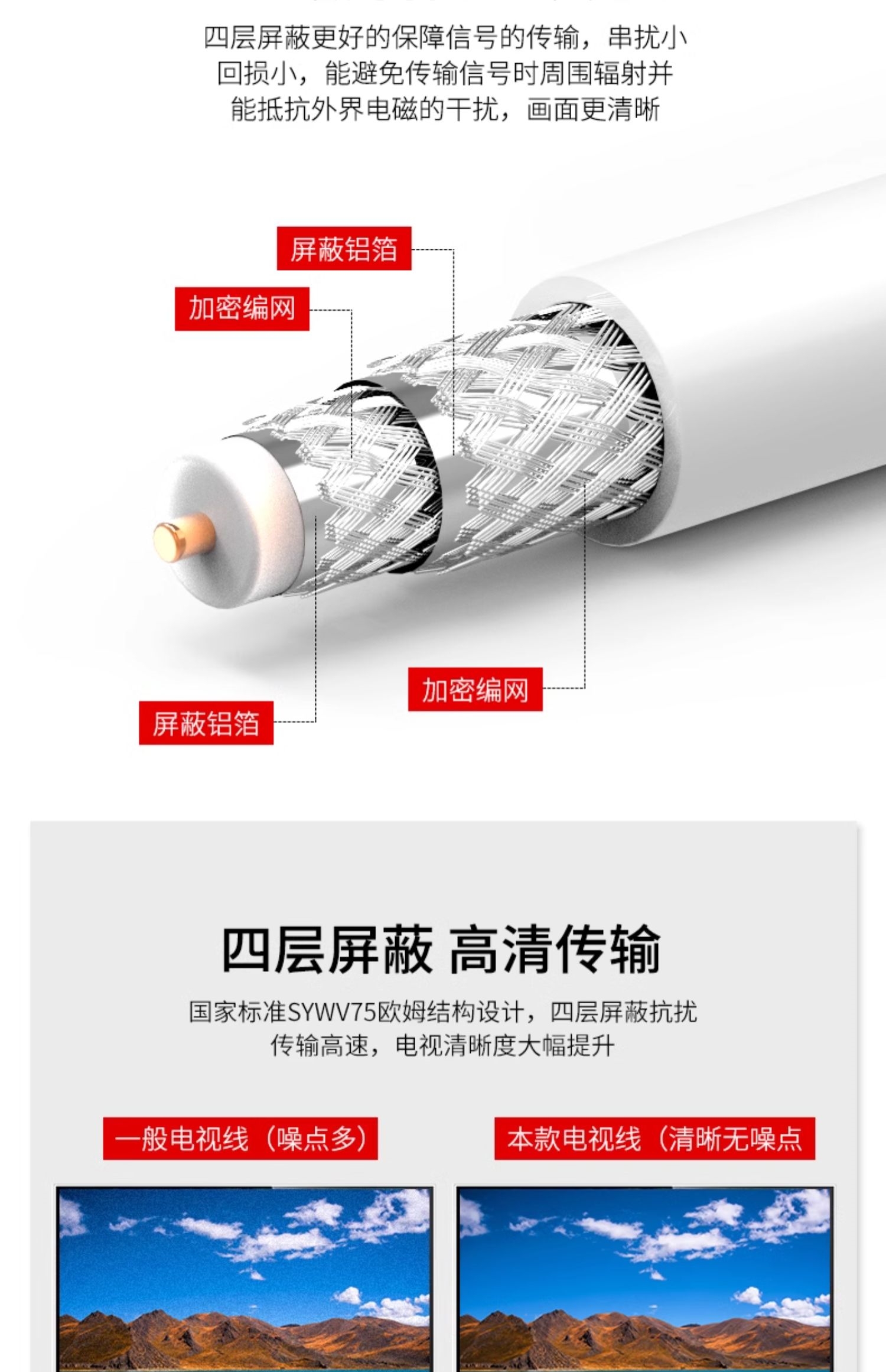 电视线@就选它【SYWV75-5 75-7/9】有线电视线高清闭路线白色双屏蔽同轴电缆数字机顶盒RF射频线纯铜芯有线电视线数字同轴线射频卫星连接专用电视闭路线