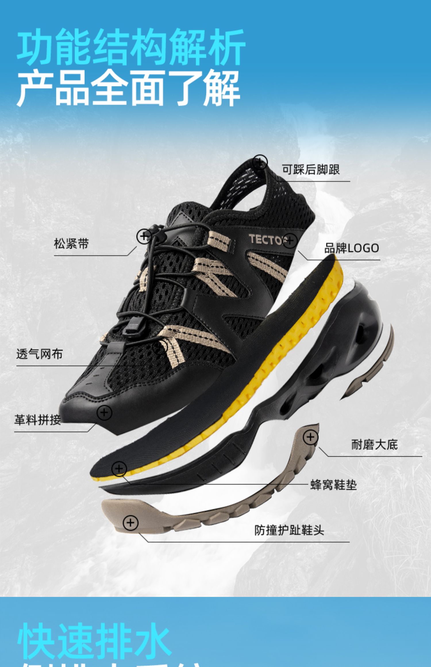 探拓户外水陆两栖鞋男排水耐磨春夏户外防滑耐磨舒适透气溯溪鞋女