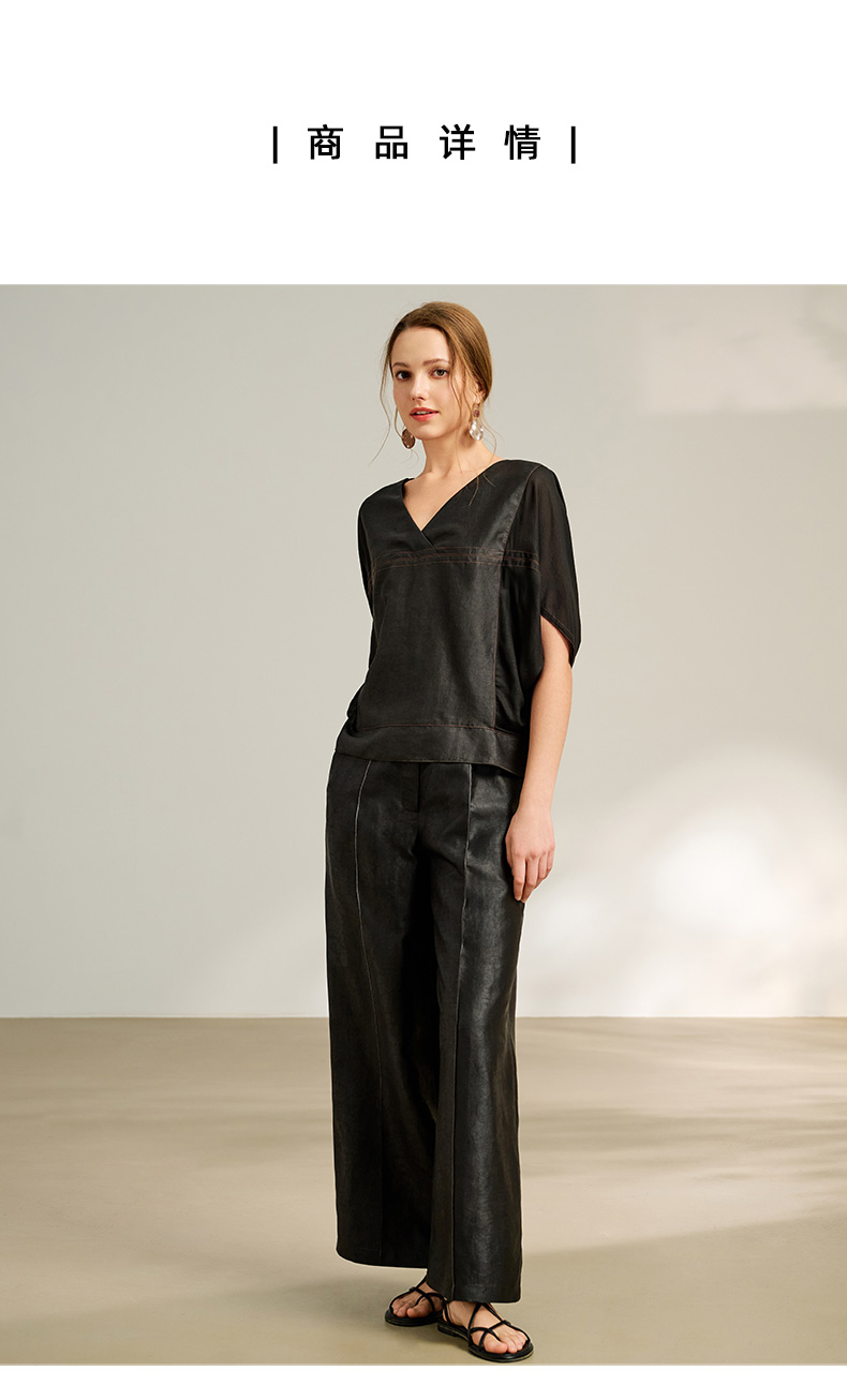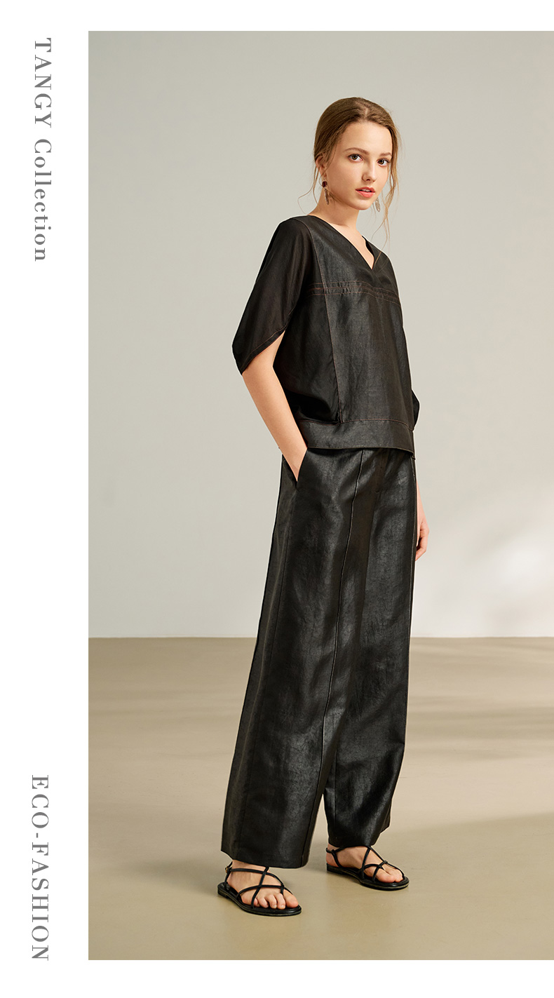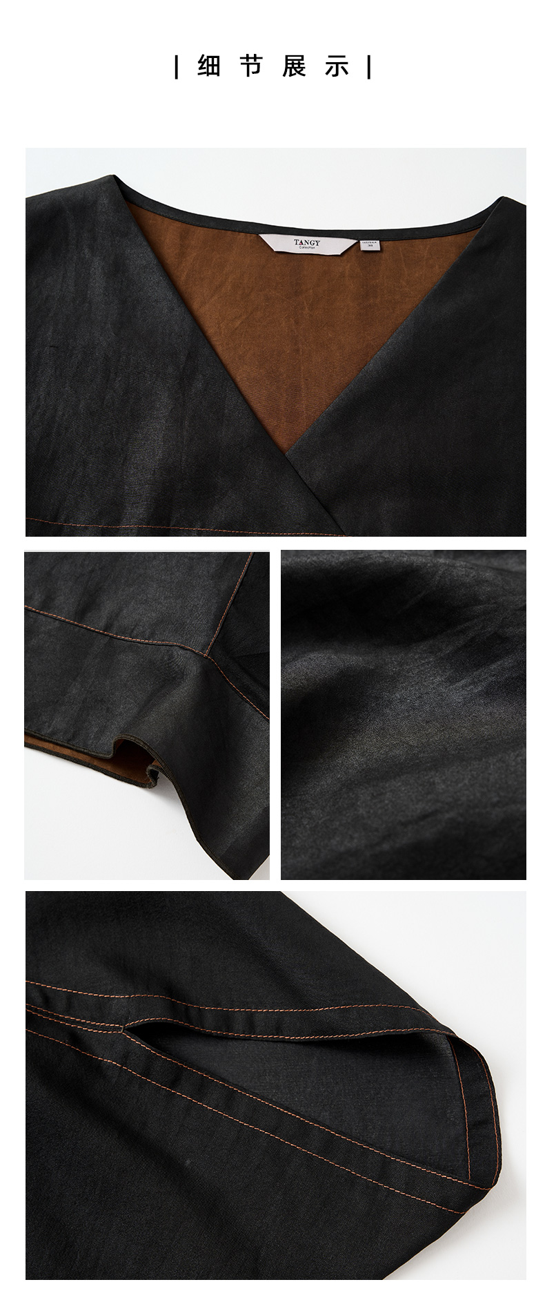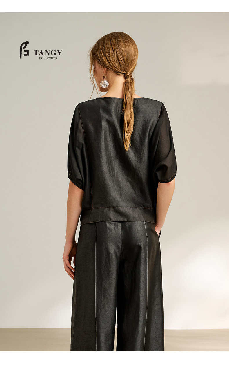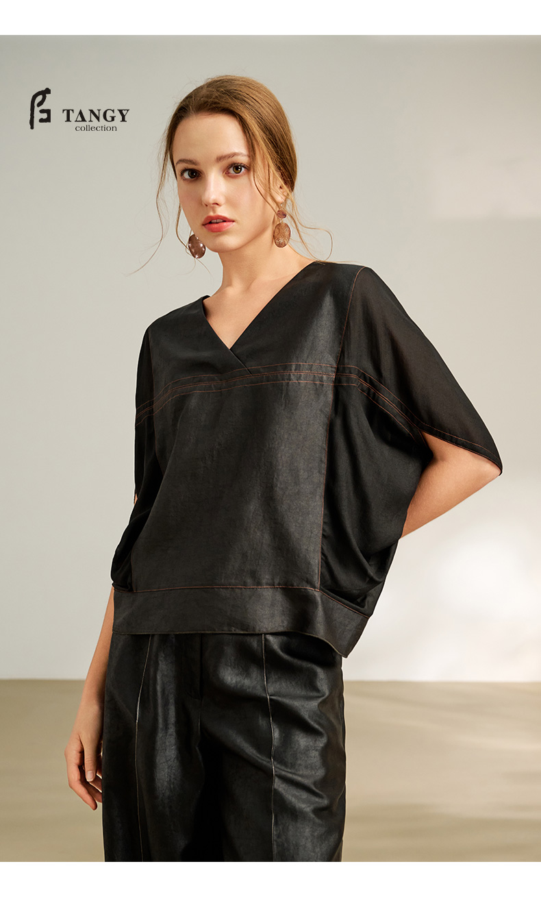 TANGY Collection/2025天意精品夏季新品中国风女士莨绸v领衬衫