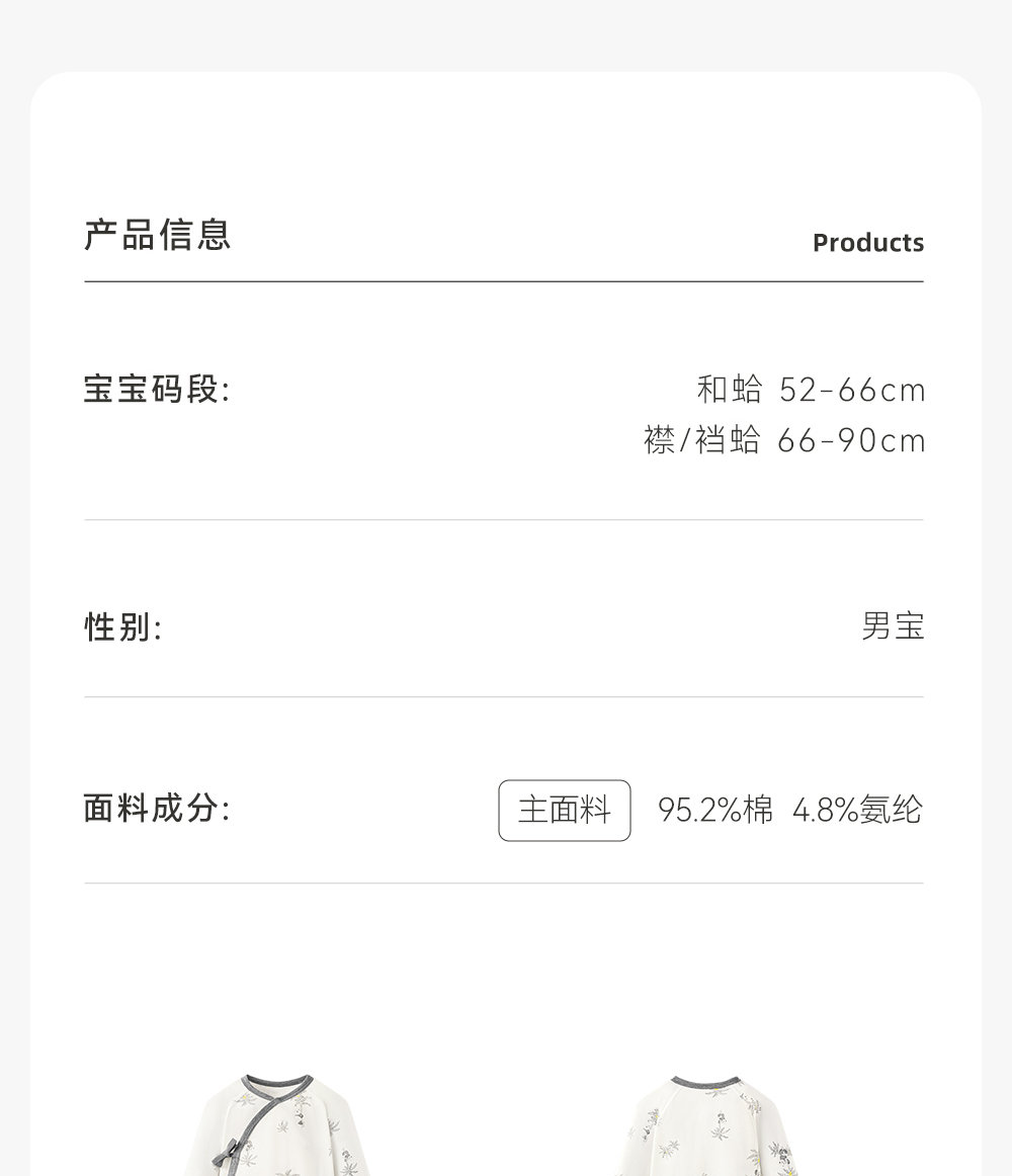 英氏新生婴儿衣服熊猫婴幼儿爬服2024春秋宝宝连体衣YLHAJ0Q003A YLAAJ0Q003A YLDAJ0Q002A