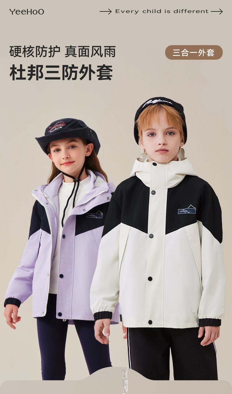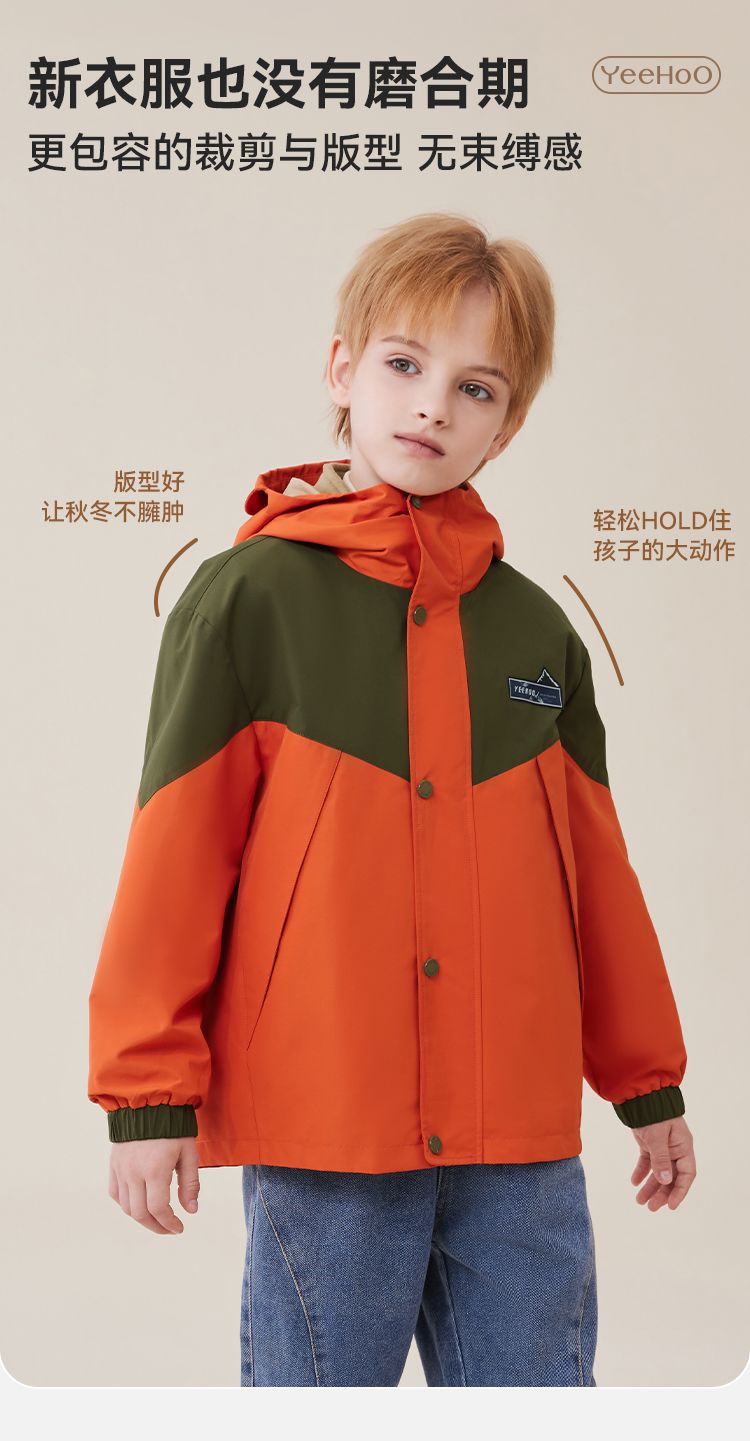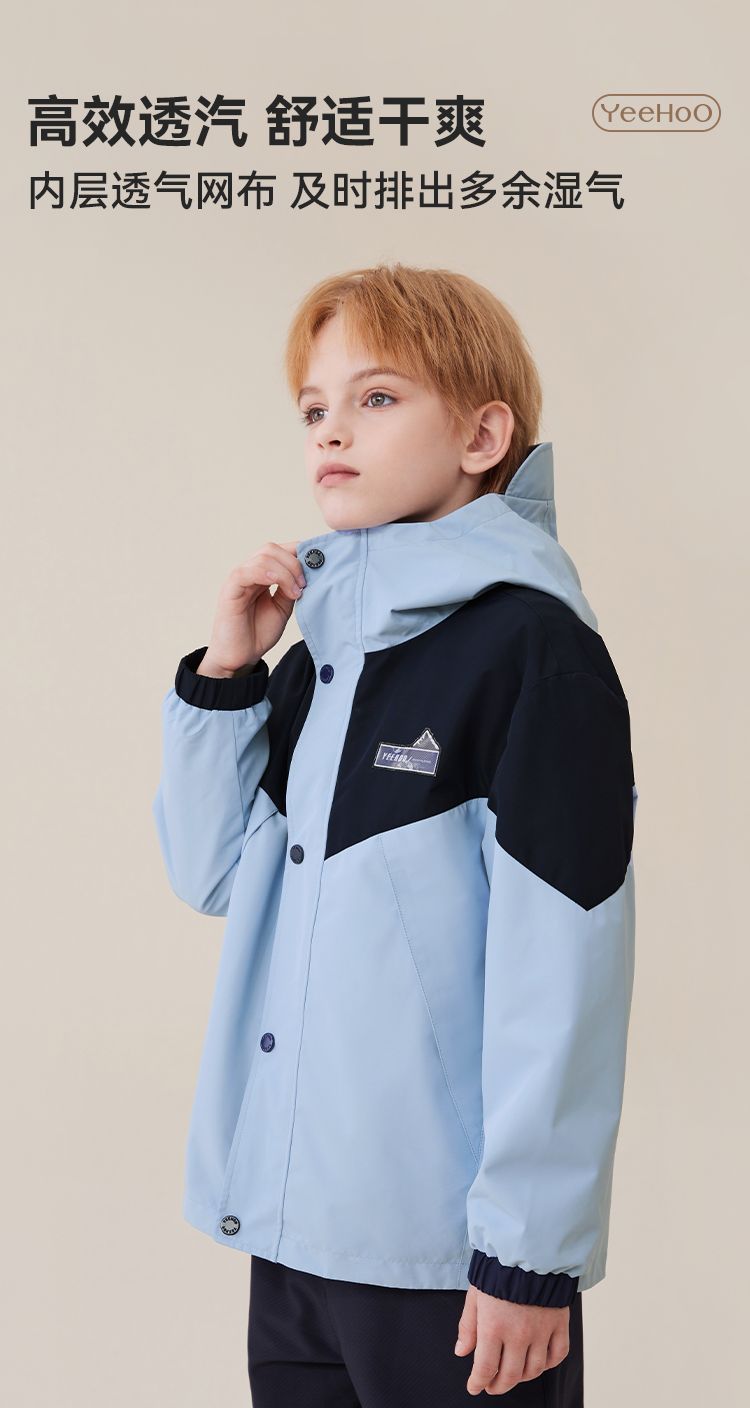 【英氏】【三合一】【130-175】男女童防风冲锋衣外套