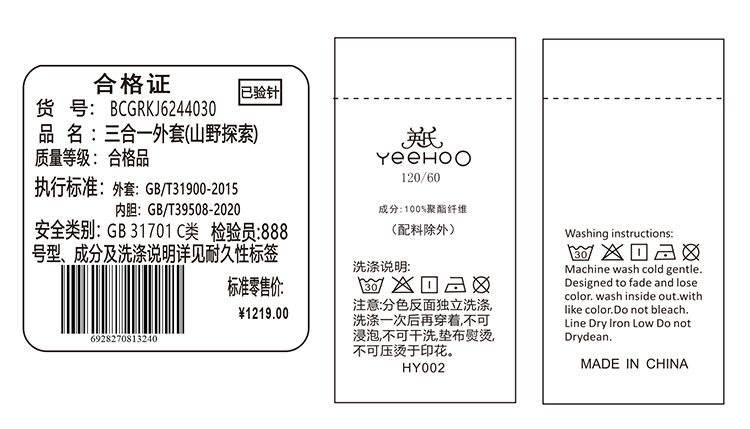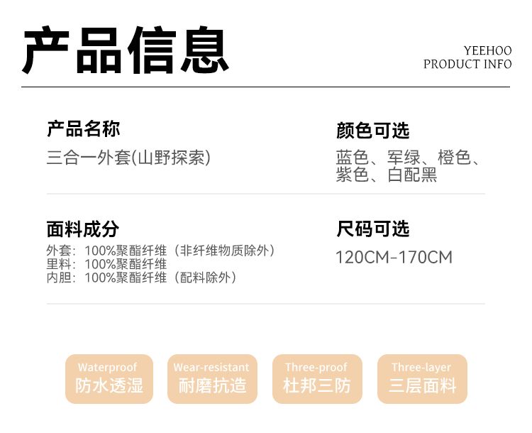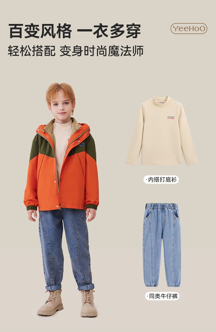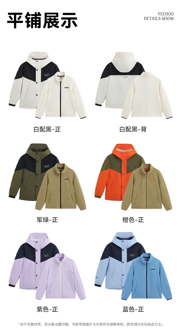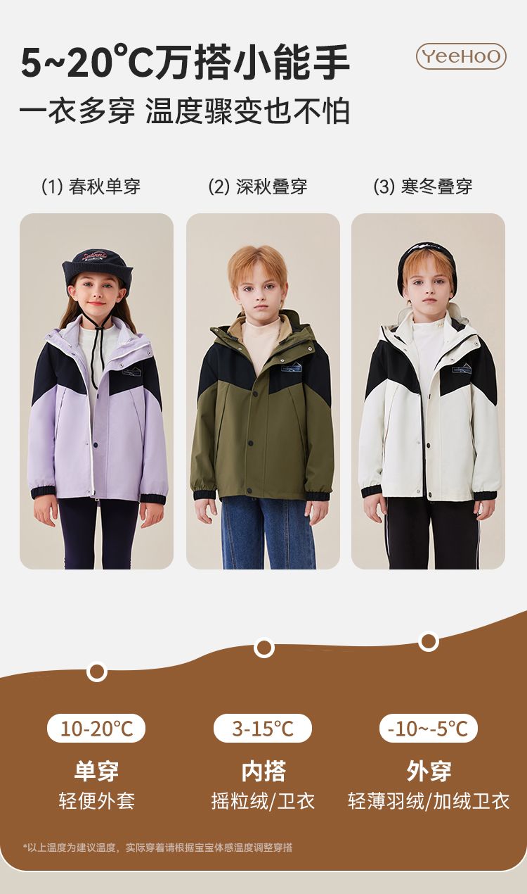 【英氏】【三合一】【130-175】男女童防风冲锋衣外套