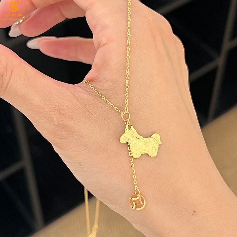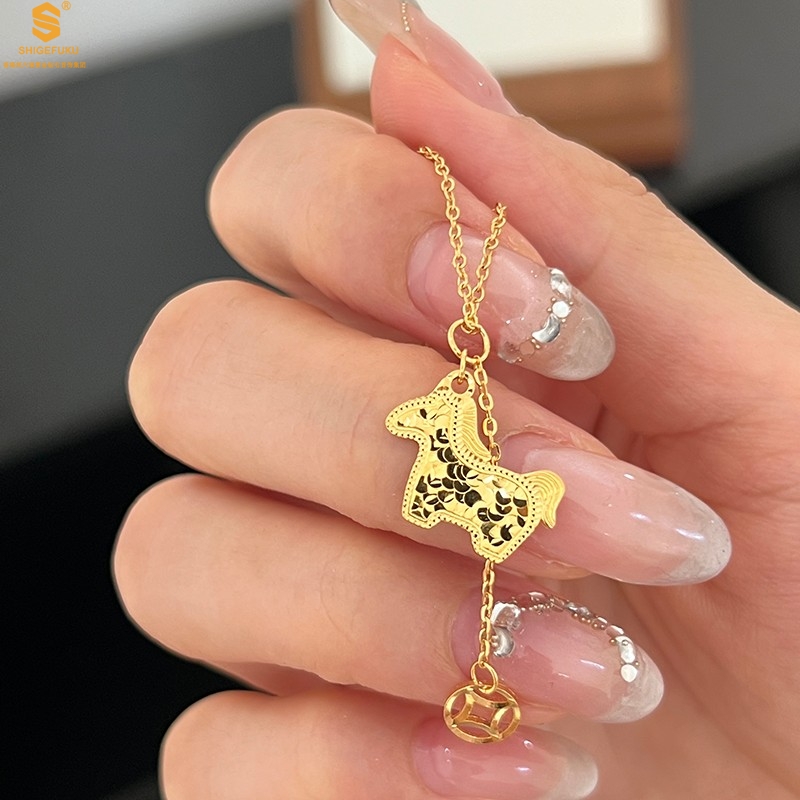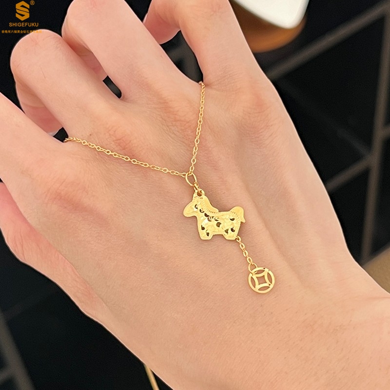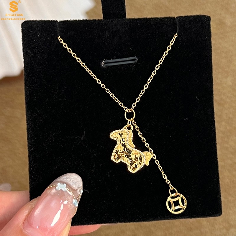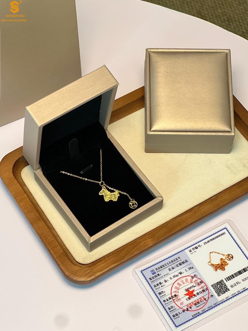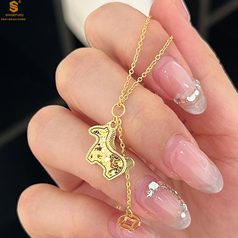 香港周六福黄金钻石首饰足金内嵌足银碎冰冰立马有钱吊坠(附赠K金项链)