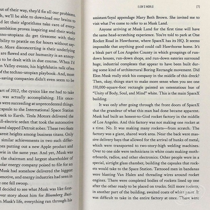 阿什莉·万斯是当今科技领域的作家之一。在为《纽约时报》(New York Times)撰写了数年硅谷和科技报道后,万斯去了《彭博商业周刊》(Bloomberg Businessweek)。他为《彭博商业周刊》撰写了数十篇封面和专题报道,内容涉及网络间谍、DNA测序和太空探索等。