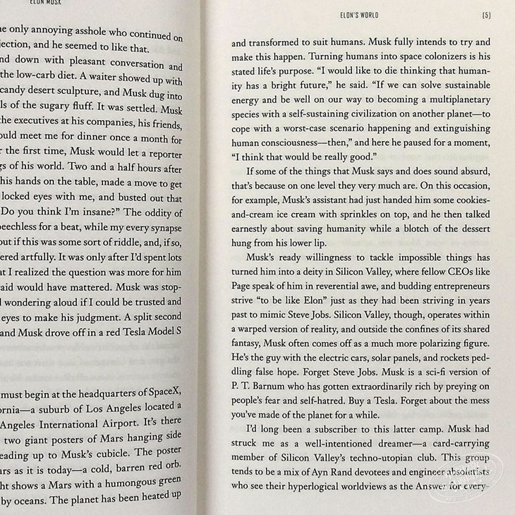 详尽的报道…到目前为止,我们主要是通过漫画来了解他的,这部作品很可能是对他的决定性描述。到书的后面,读者都会感到,需要把与史蒂夫•乔布斯(Steve Jobs)的比较放在一边。