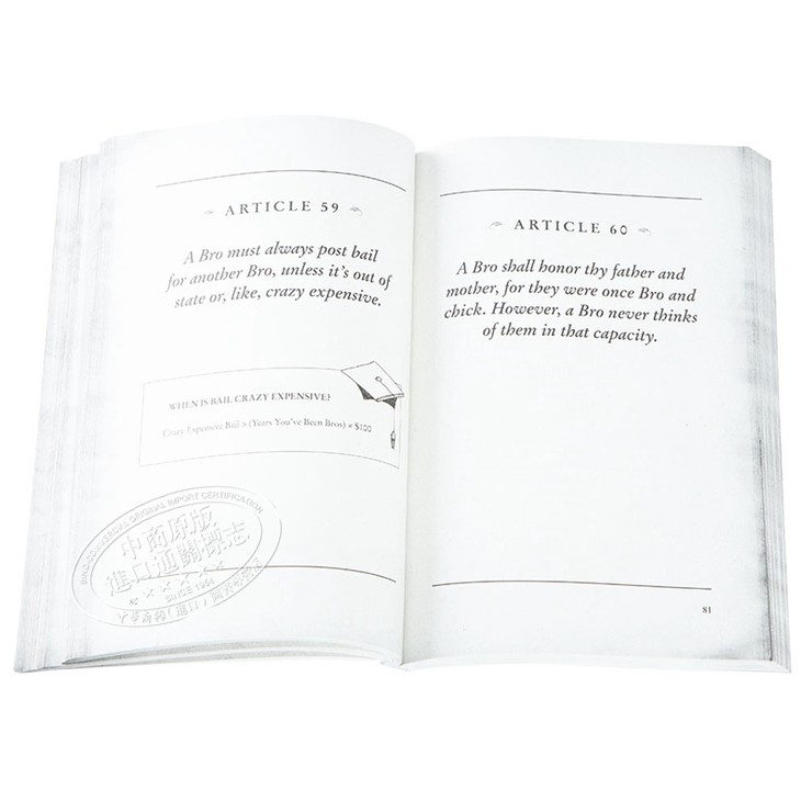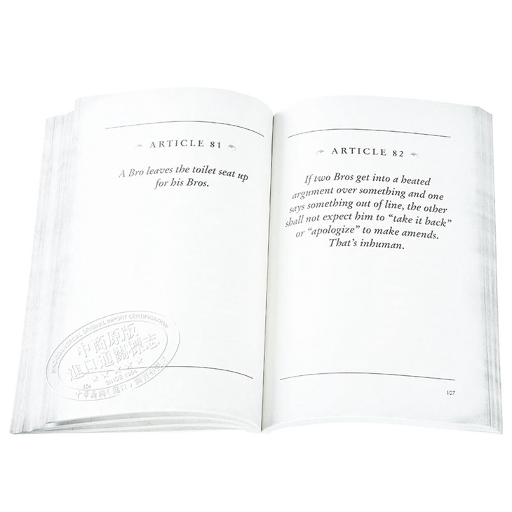 Historically a spoken tradition passed from one generation to the next, the official code of conduct for Bros appears here in its published form for the first time ever. By upholding the tenets of this sacred and legendary document, any dude can learn to achieve Bro-dom.