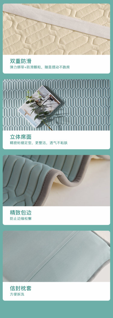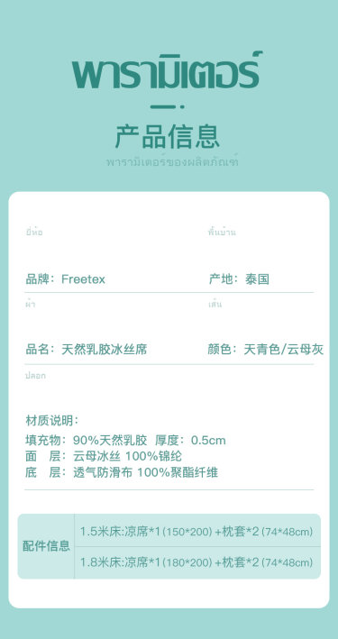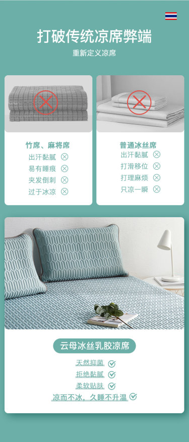 泰国乳胶凉席 可水洗 空调凉席三件套 (一条凉席+2个枕套)A-2628