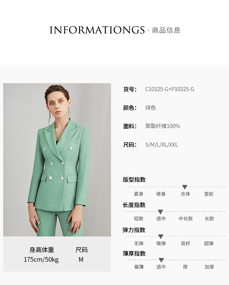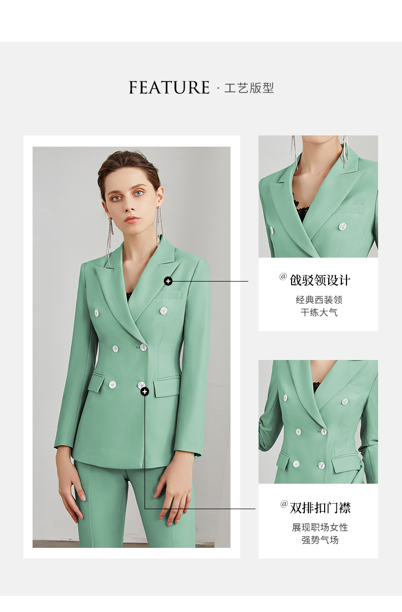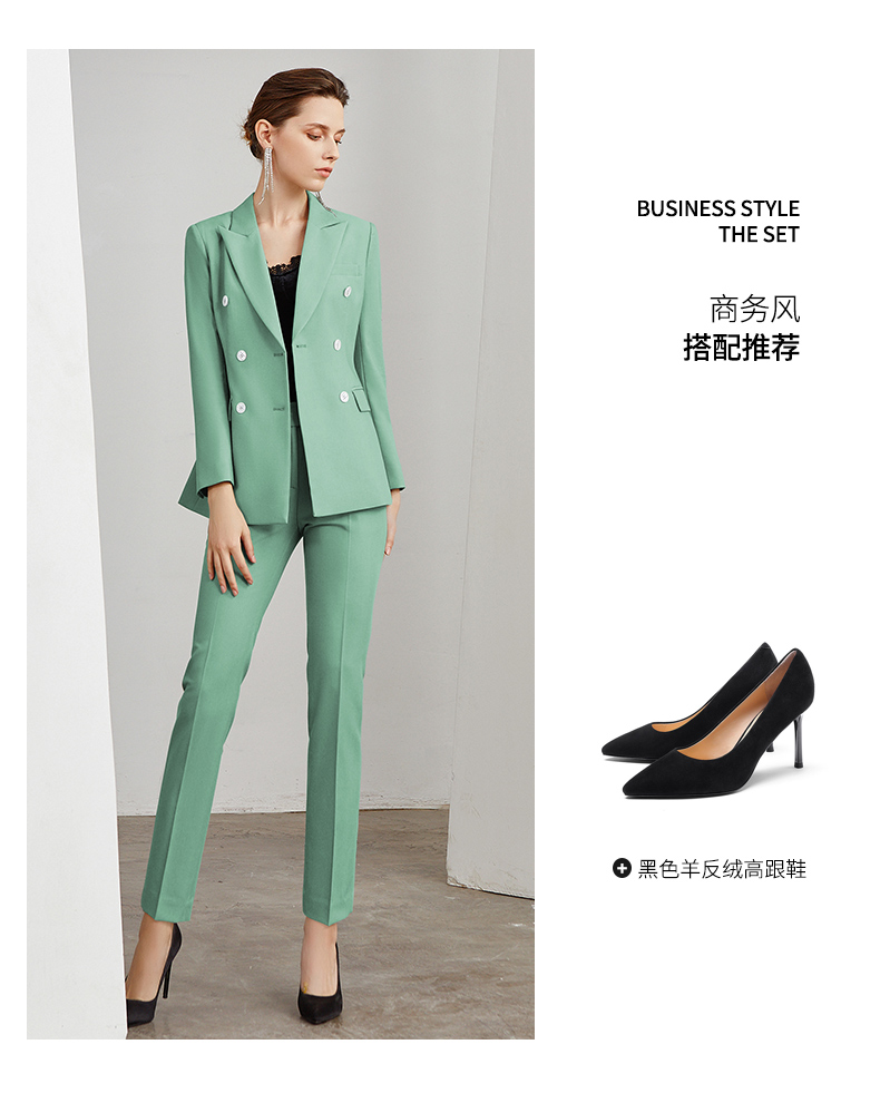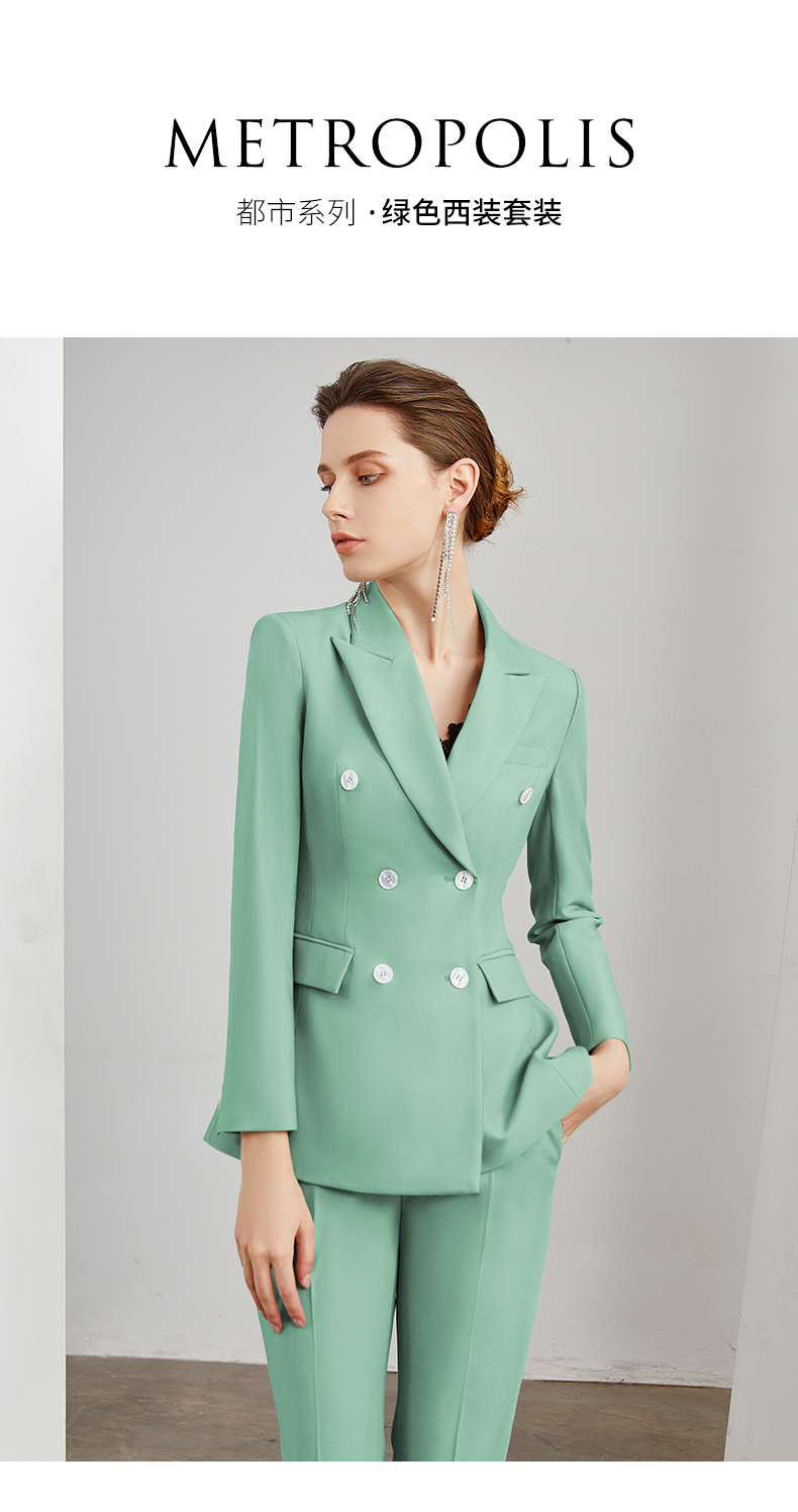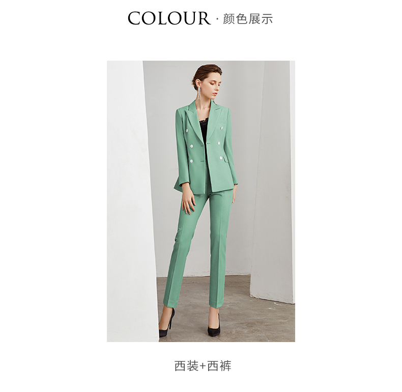 IWY/时髦绿色西服套装双排扣女主持人播音艺考职业上班面试工作服正装C10325-G+P10325-G