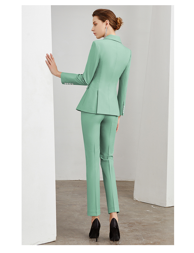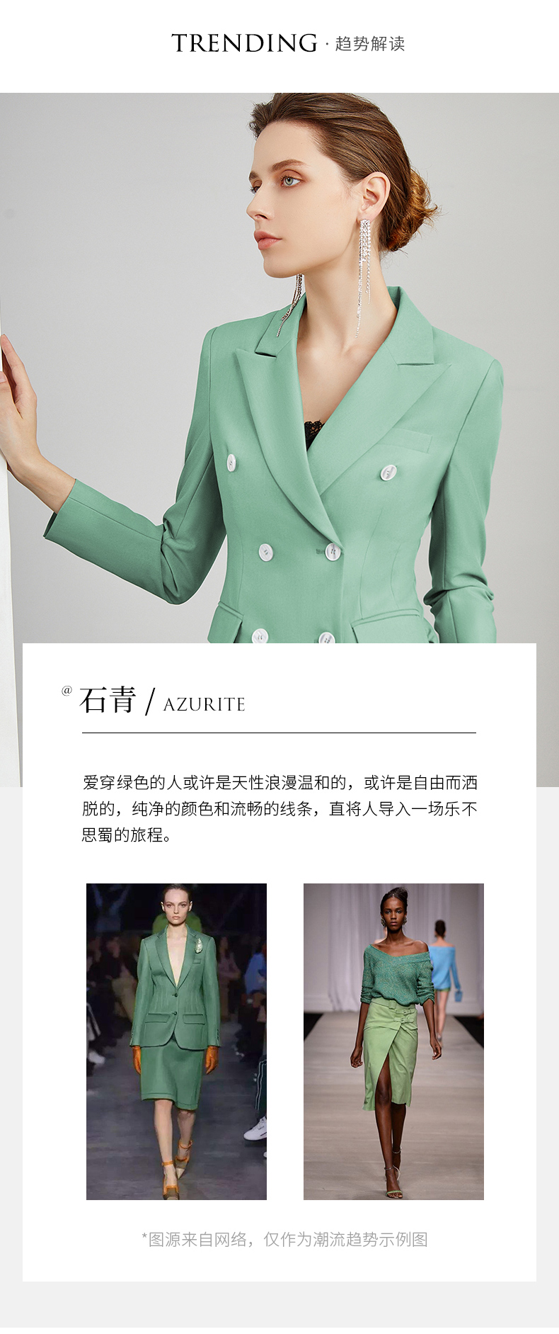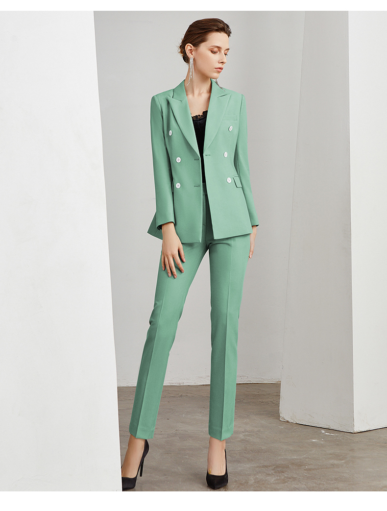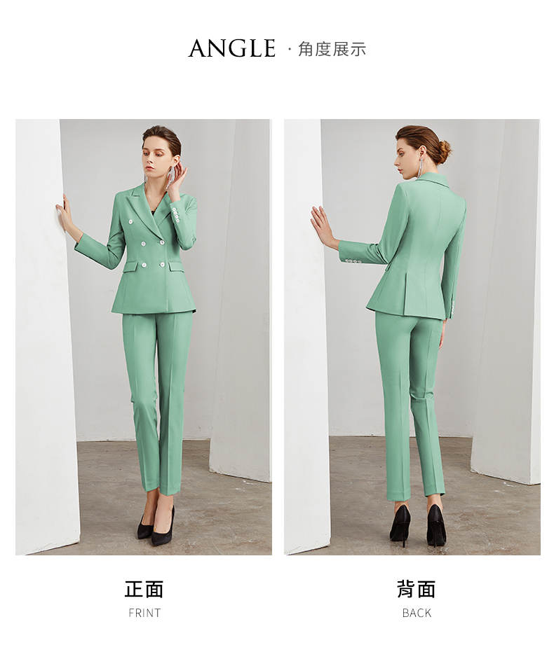 IWY/时髦绿色西服套装双排扣女主持人播音艺考职业上班面试工作服正装C10325-G+P10325-G
