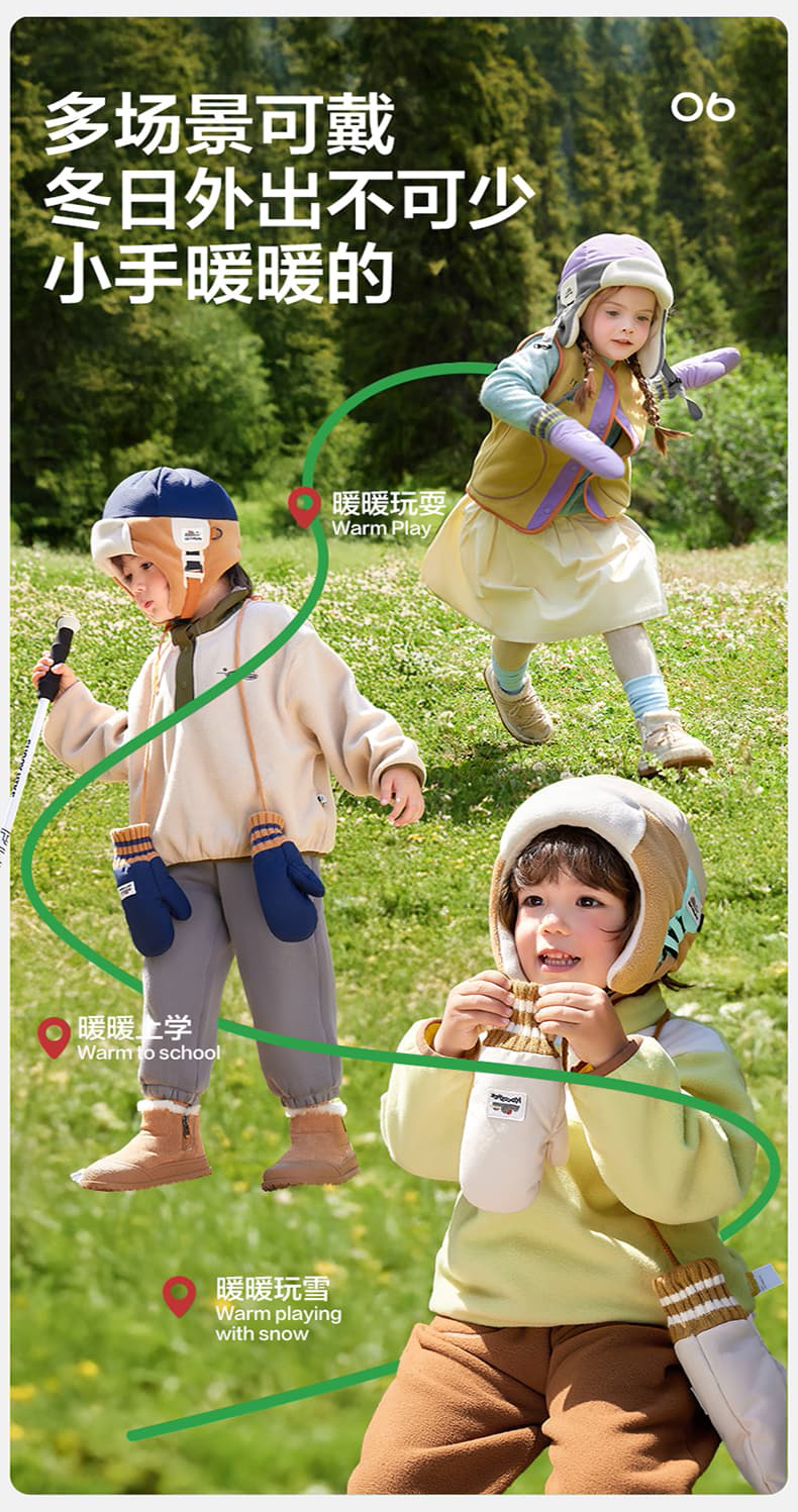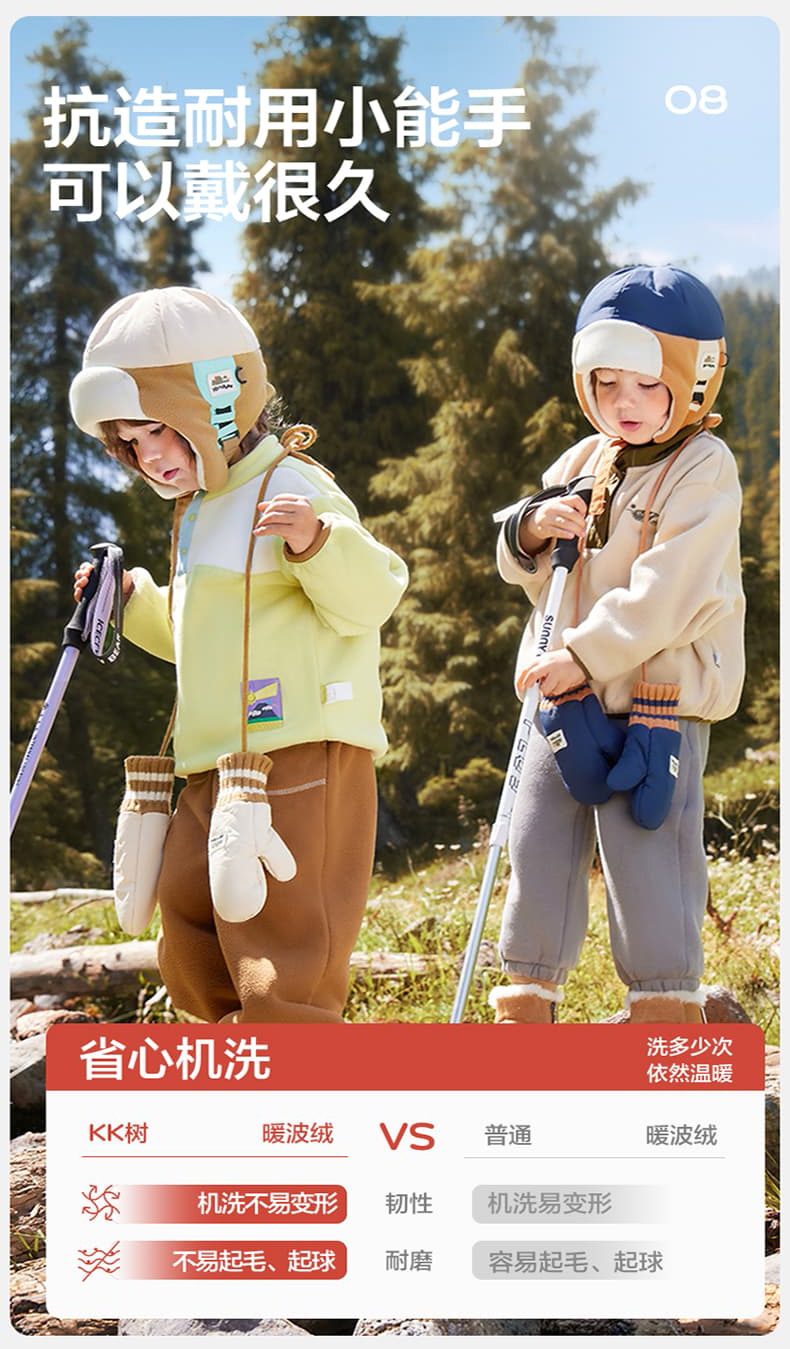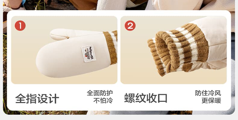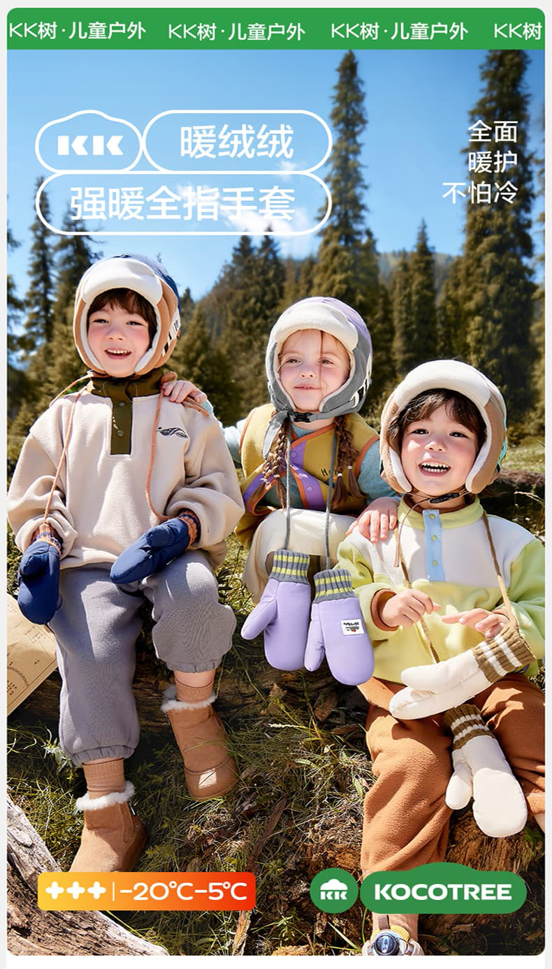 KK树儿童滑雪手套男童女孩冬天防滑防水玩雪专用防风加绒保暖防寒小小牧野者手套