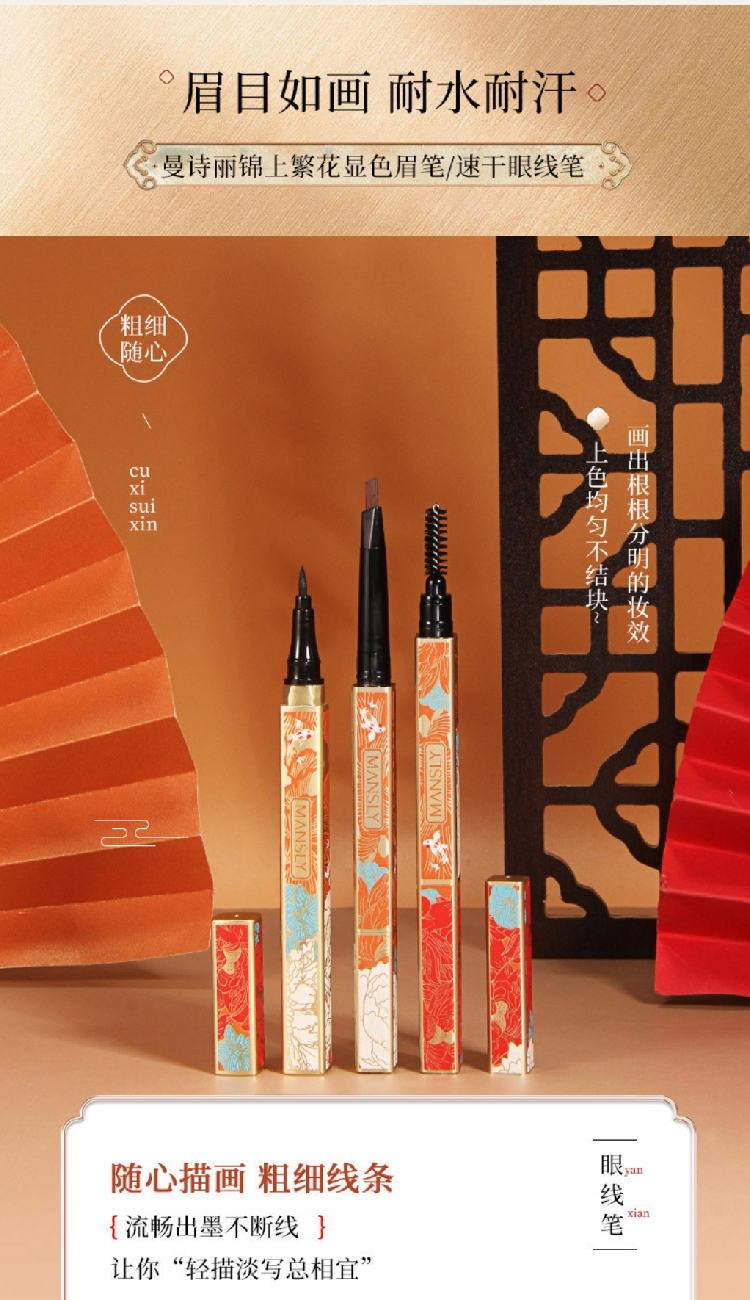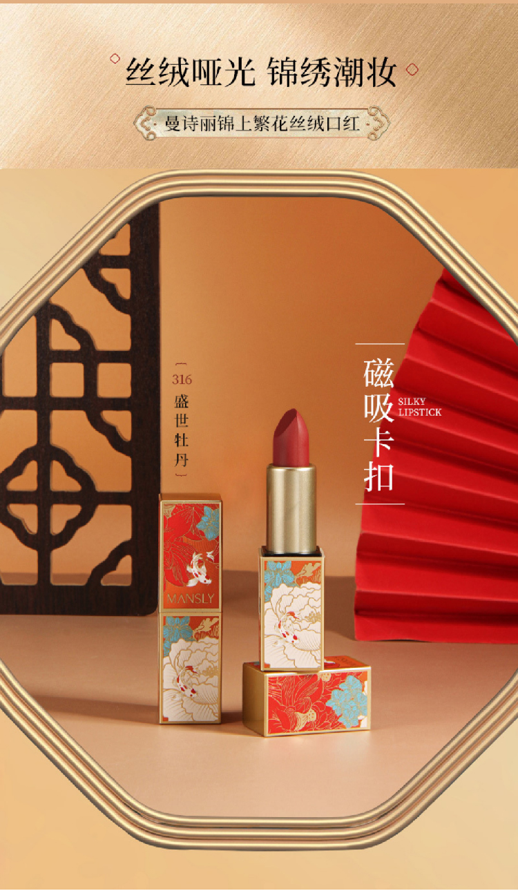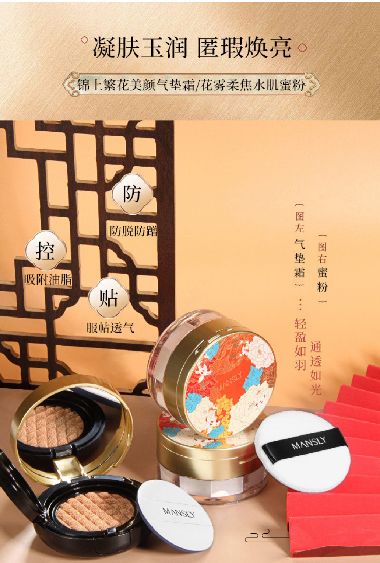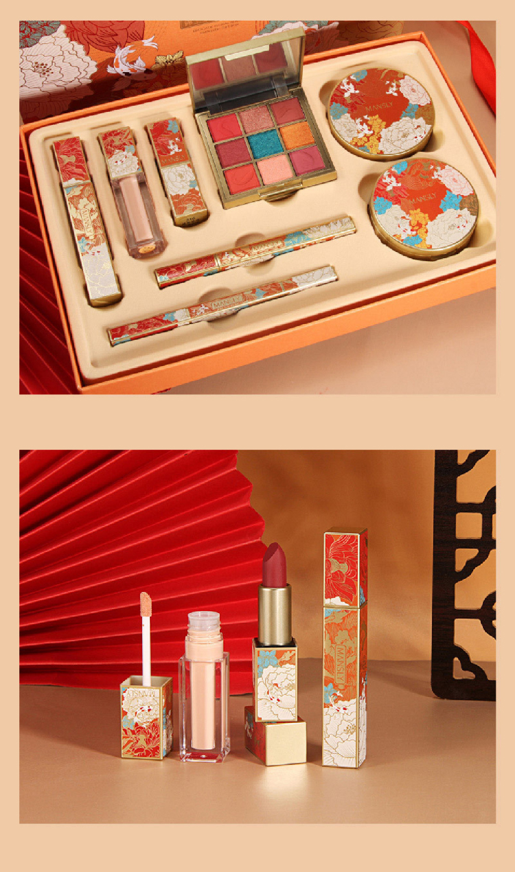 【好礼】曼诗丽锦上繁花修颜礼盒 中国风彩妆8件套口红眼影盘眉笔粉扑