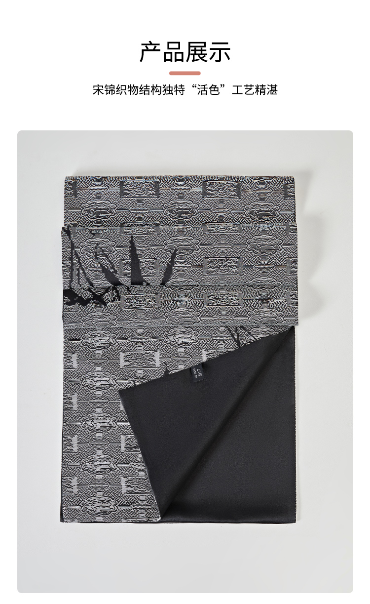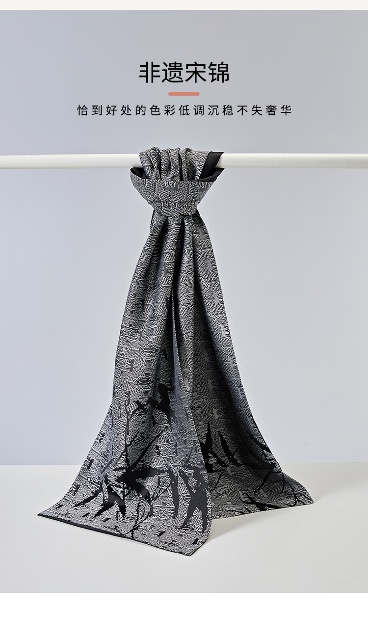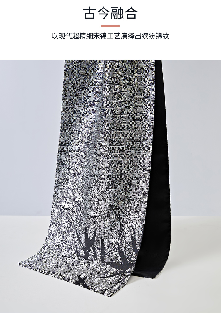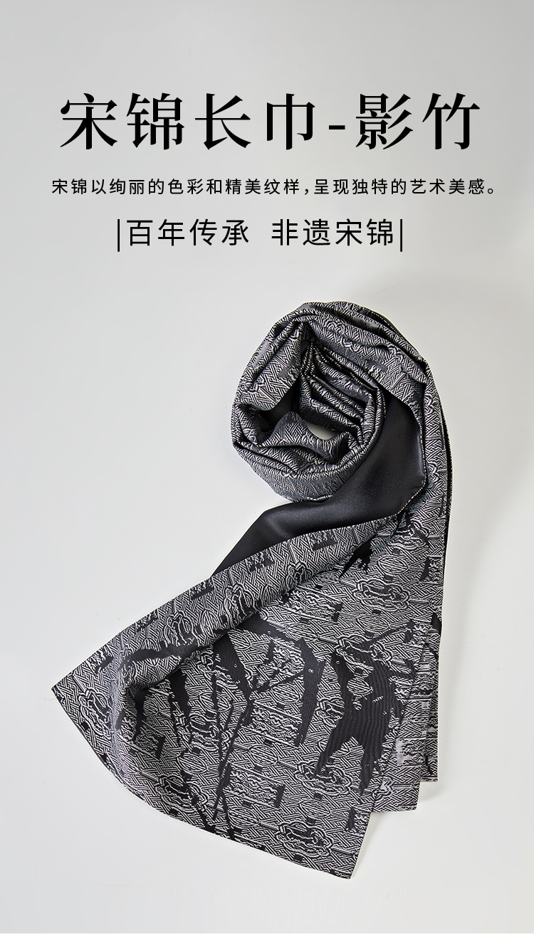 SAINTJOY/宋锦双面长巾 影竹·银灰 CJ13261