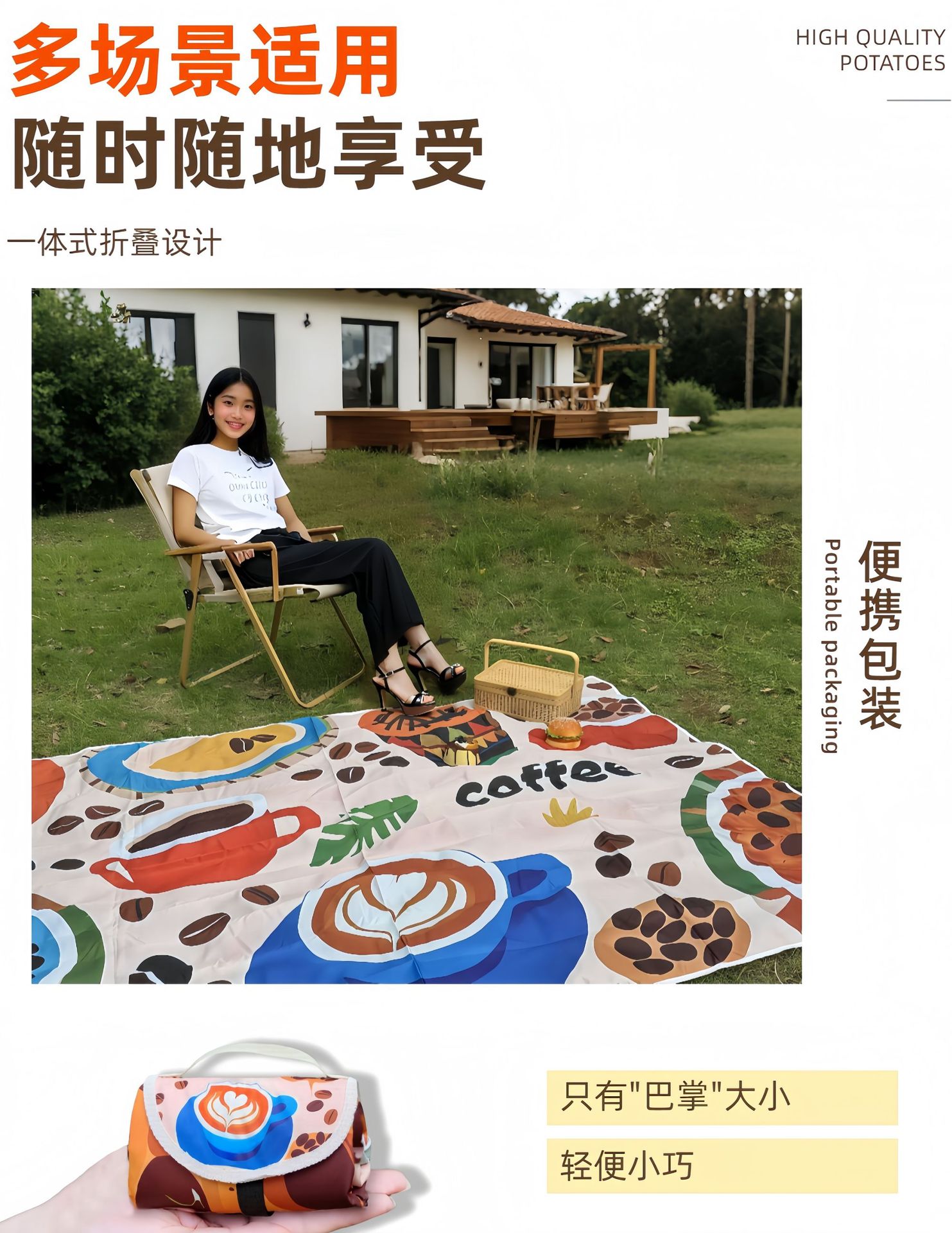 【超轻口袋野餐垫!一体式折叠设计】仅有巴掌大小,便携迷你野餐垫折叠屁垫户外防潮露营地布席公园沙滩垫。rb