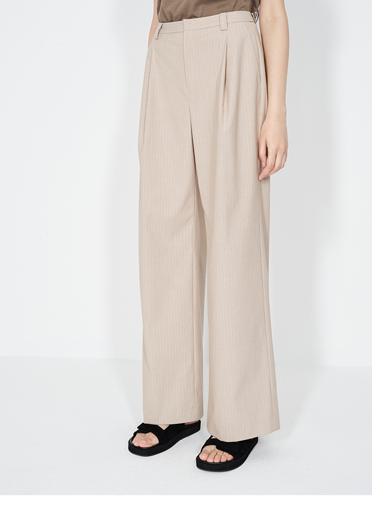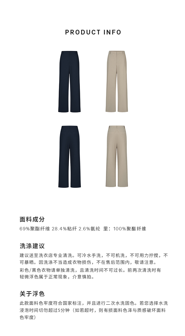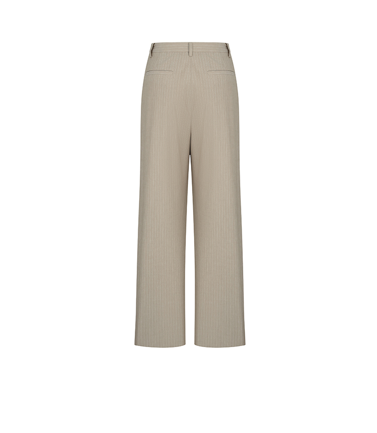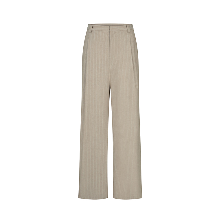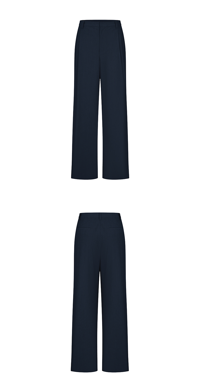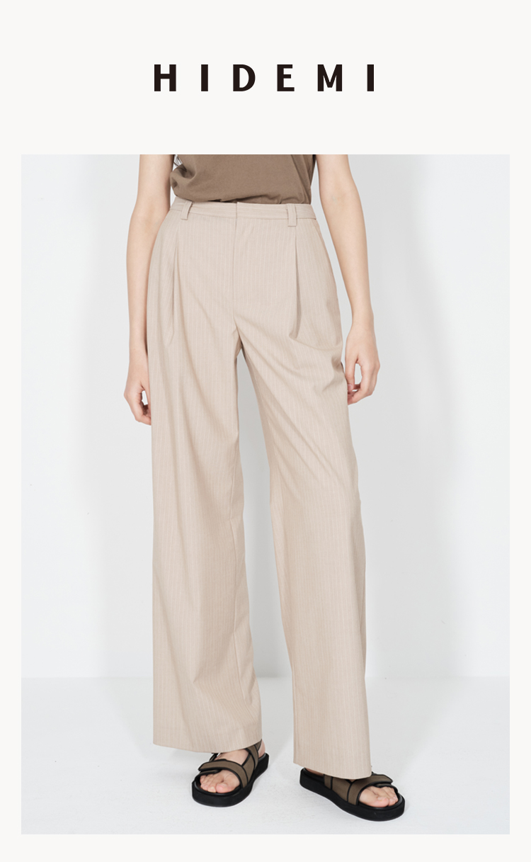 HIDEMI 【董生活同款】极简细条纹压褶设计感宽松阔腿中低腰西裤长裤 藏蓝色/燕麦色
