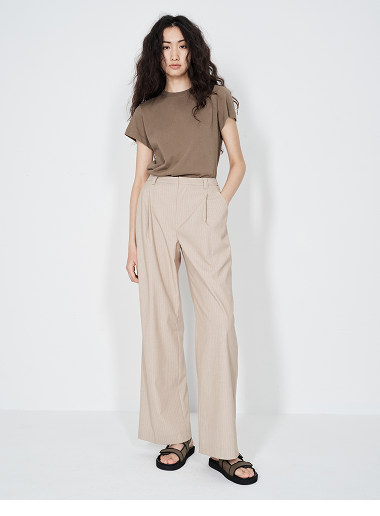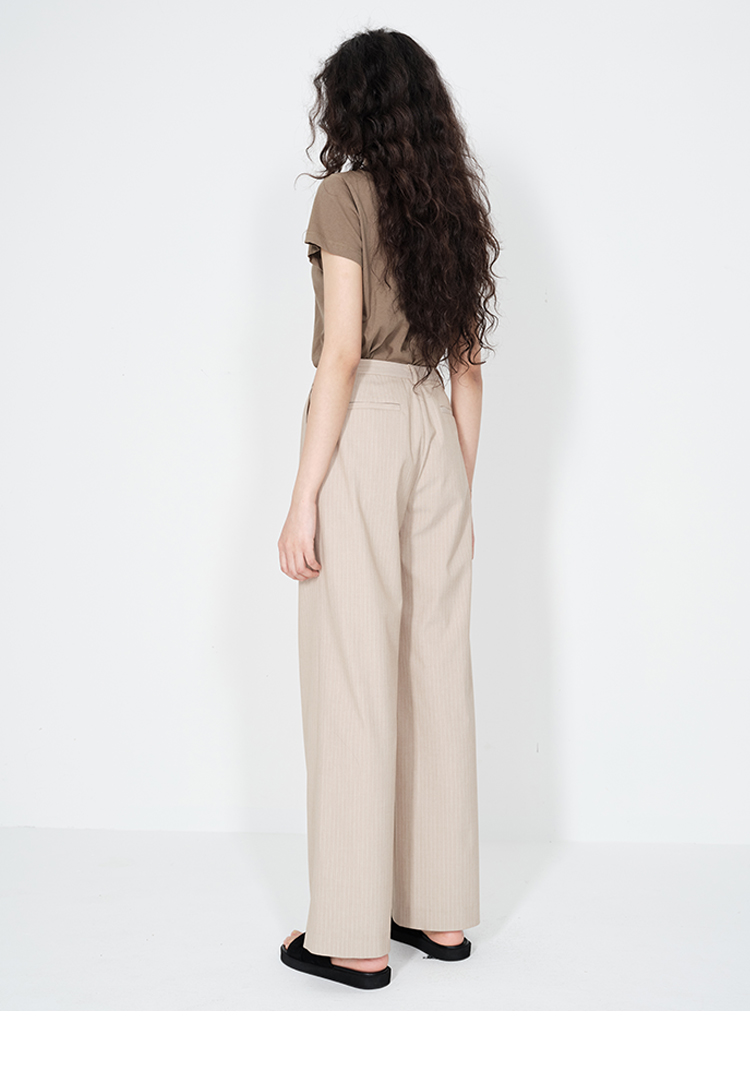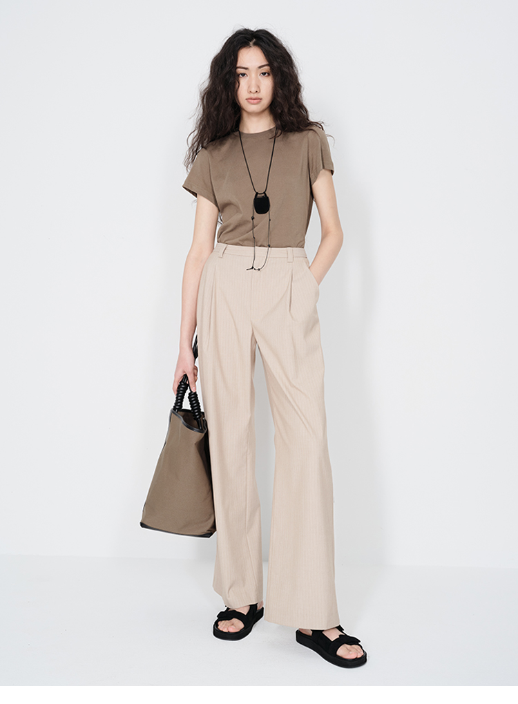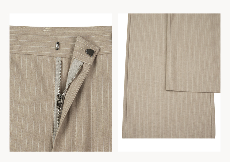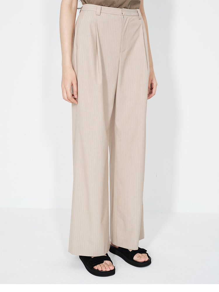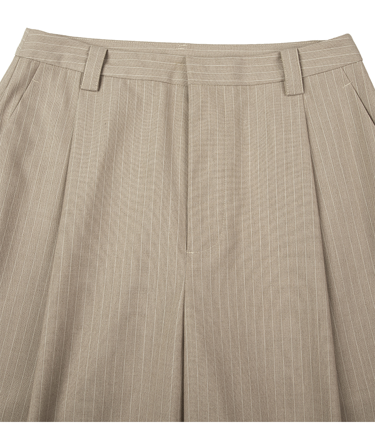 HIDEMI 【董生活同款】极简细条纹压褶设计感宽松阔腿中低腰西裤长裤 藏蓝色/燕麦色