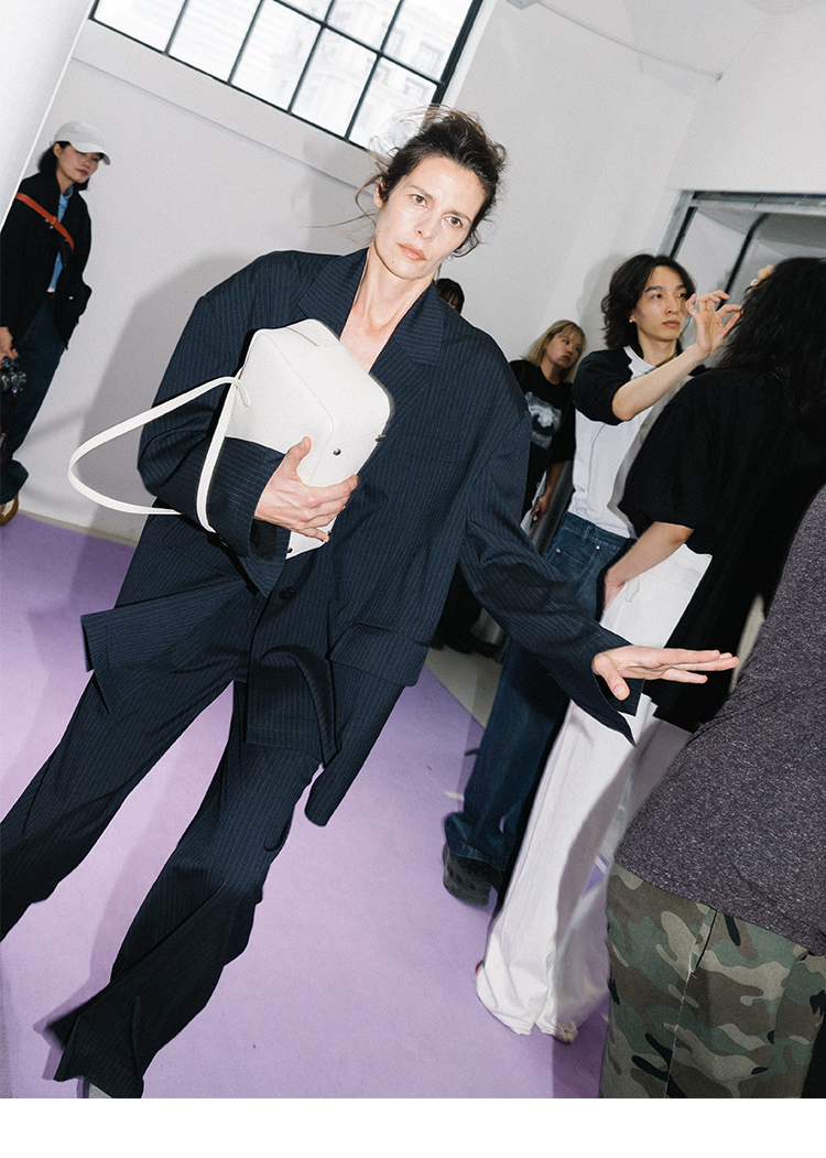 HIDEMI “我们做印花”特殊纸感几何桌椅剪影式印花廓形衬衫