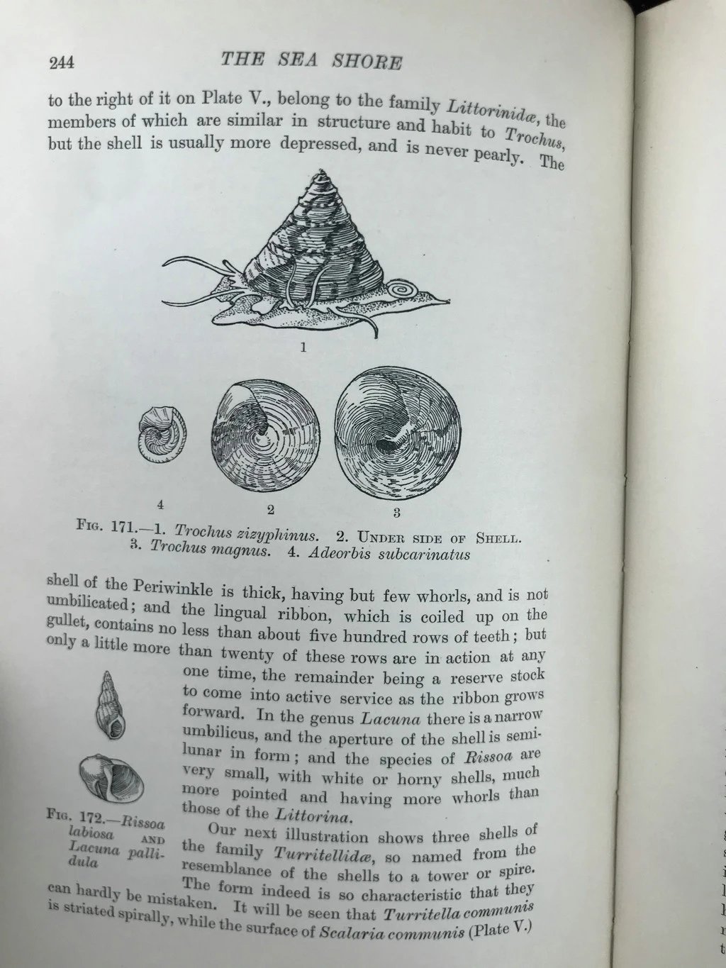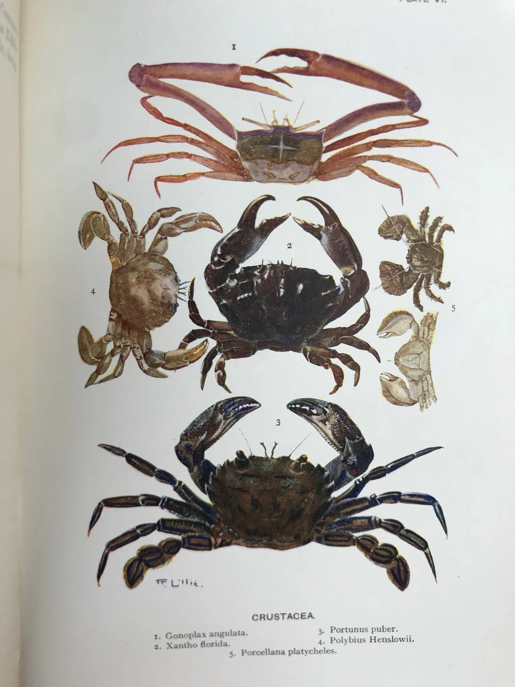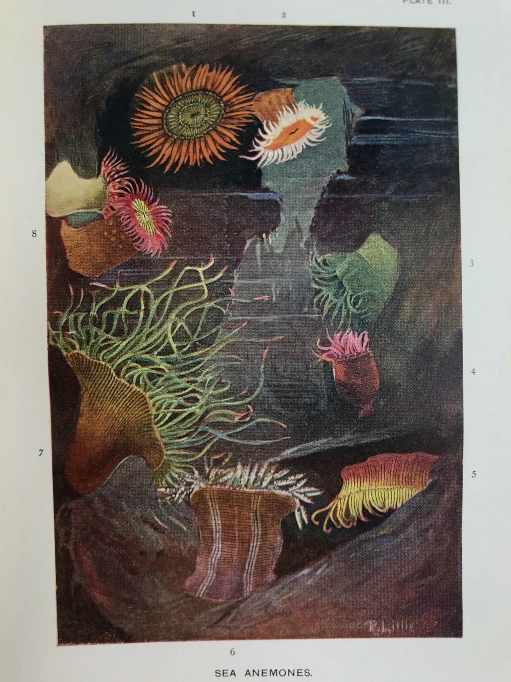 1903年 海滩生物图鉴 8页彩色300余幅黑白插图 漆布精装32开