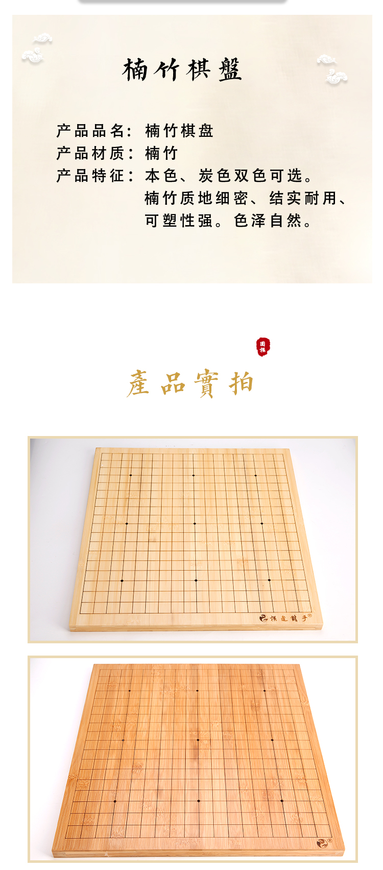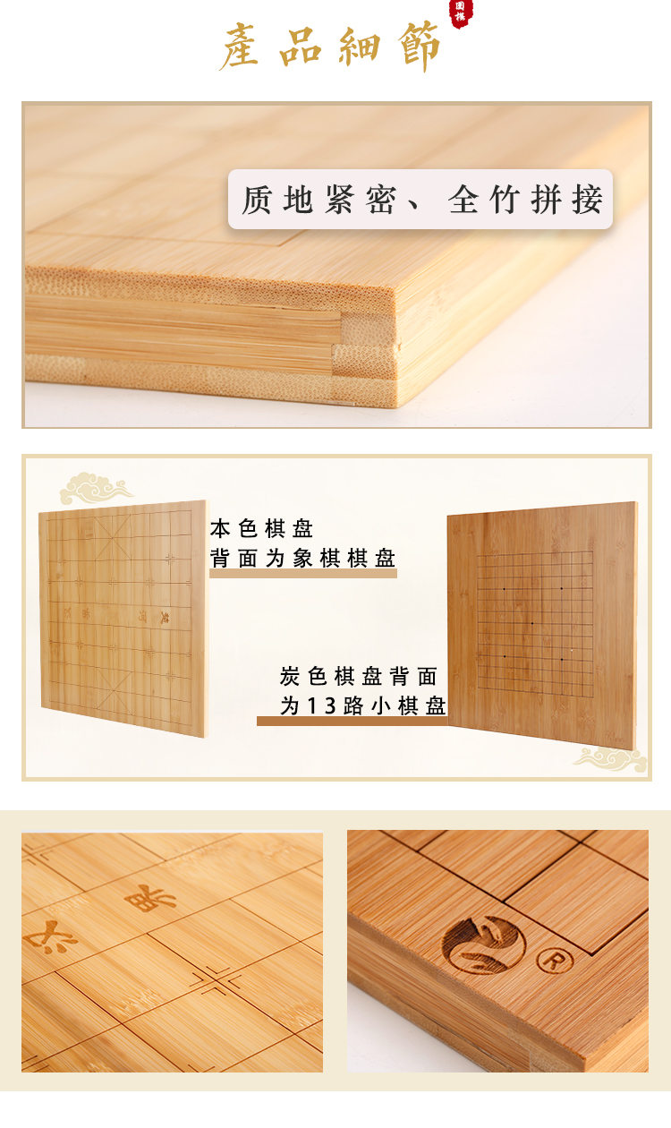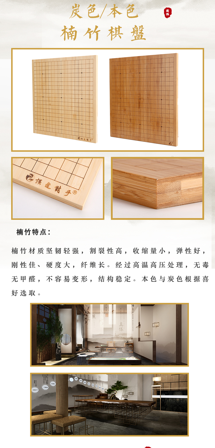 本色炭色全竹楠竹棋盘色泽自然纹路清晰棋逢对手楠竹棋盘系列