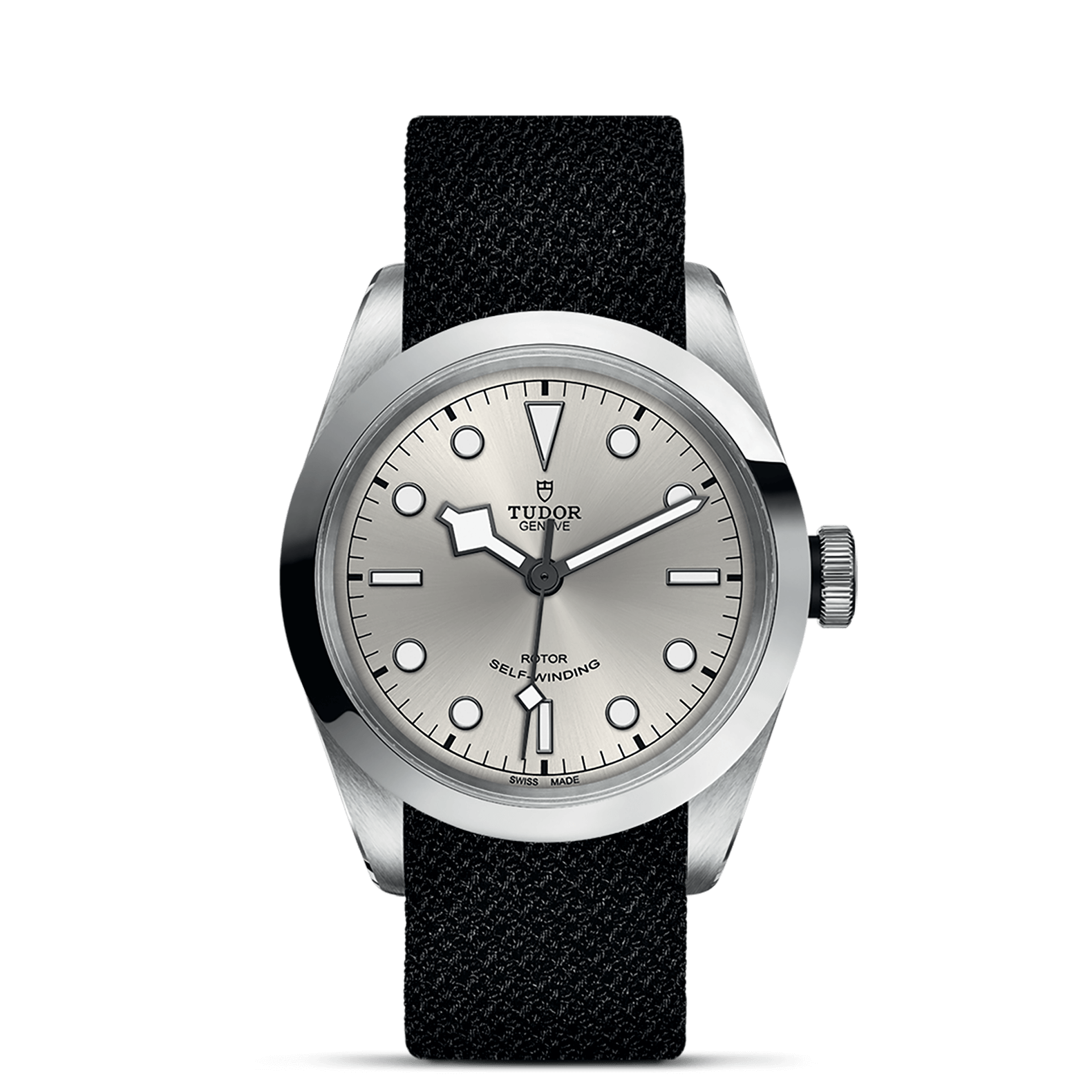 不锈钢旋入式上链表冠,饰以浮雕帝舵表玫瑰标志,配黑色阳极氧化铝上链表冠轴