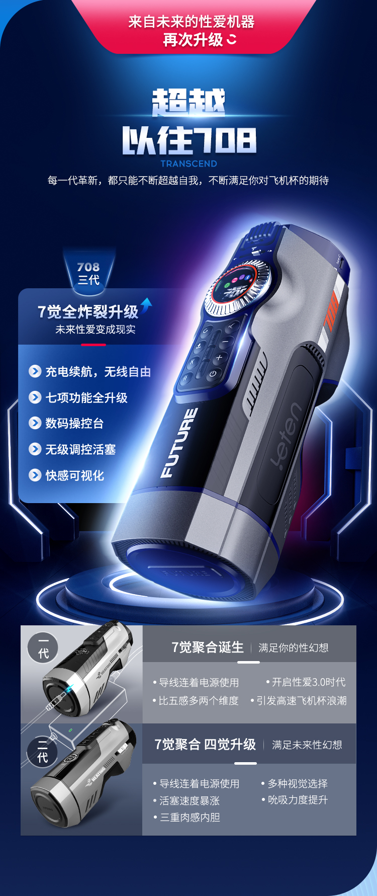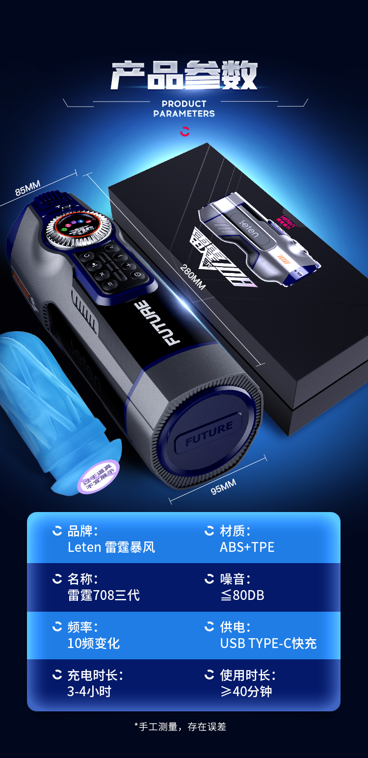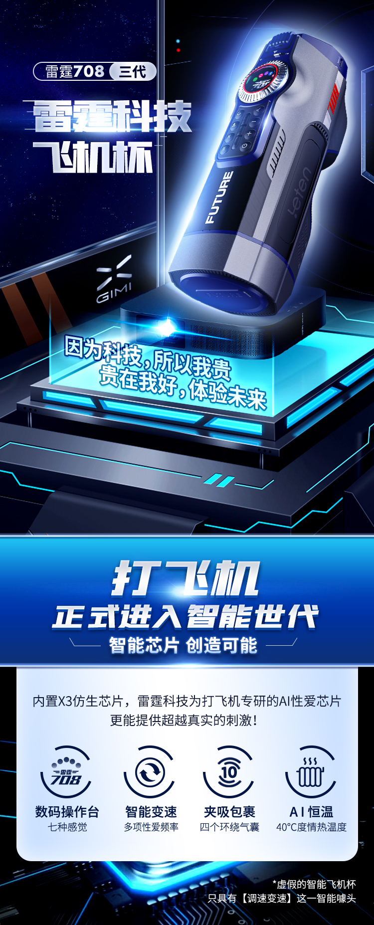 雷霆暴风 leten未来舱708活塞飞机杯男用加温夹吸发声烘干性高端感情趣玩具用品