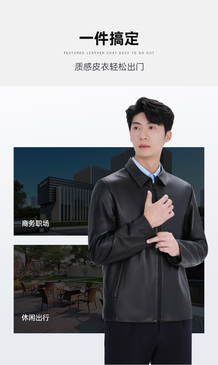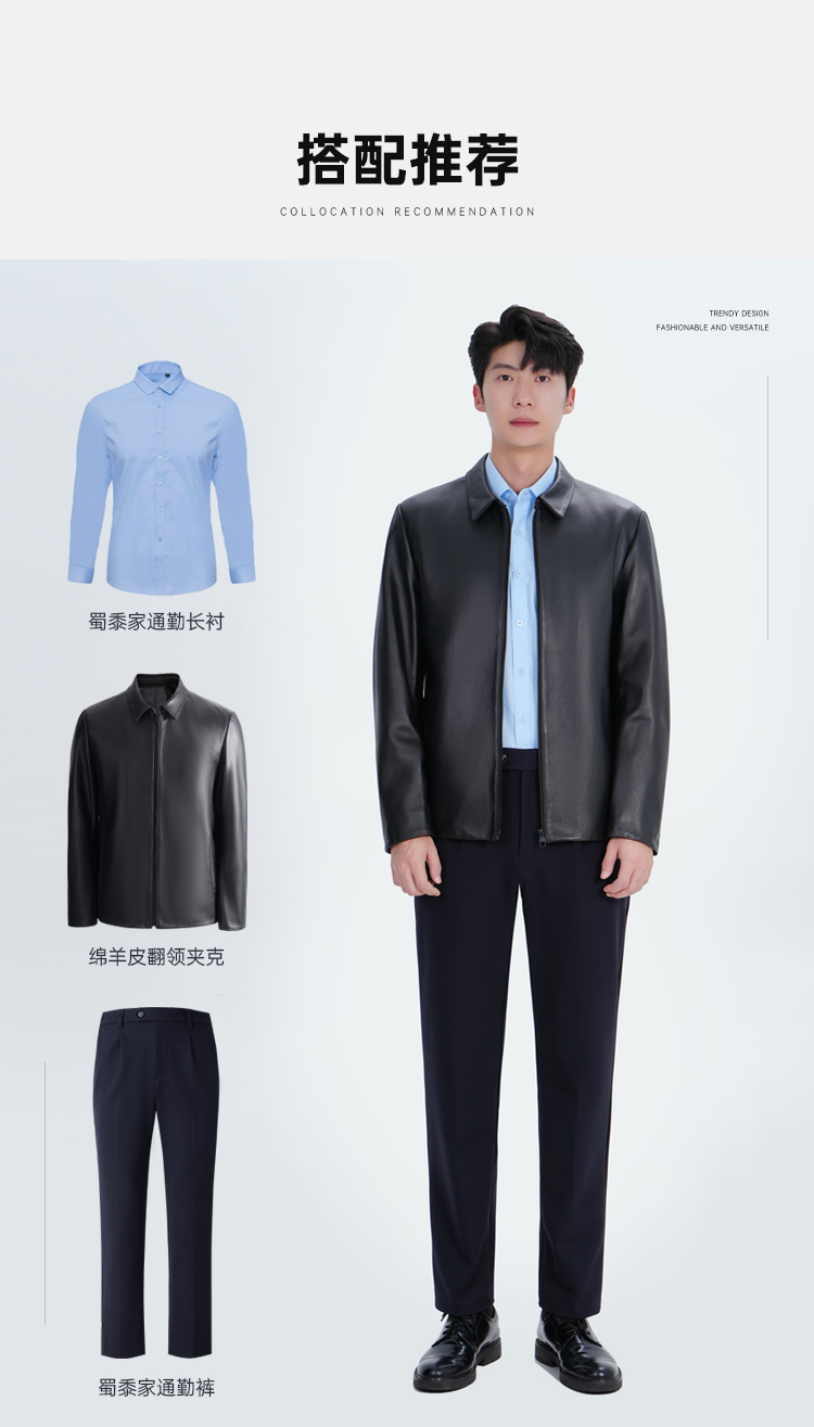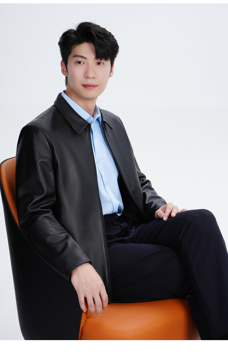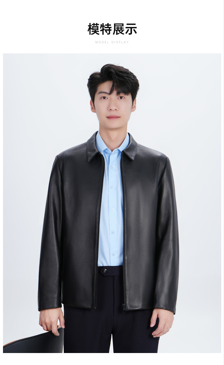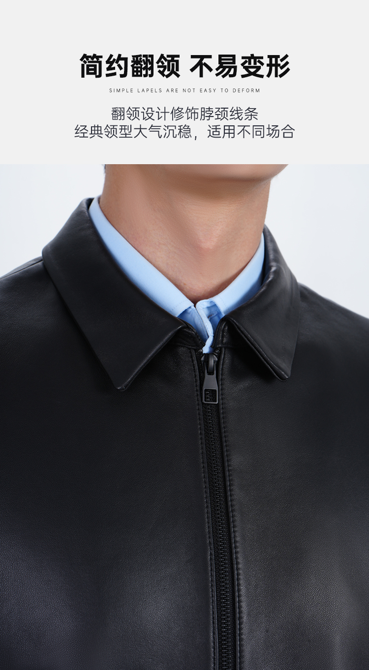 【实付满399送保温杯】【绵羊皮翻领夹克】商务通勤长袖外套防风保暖皮夹克