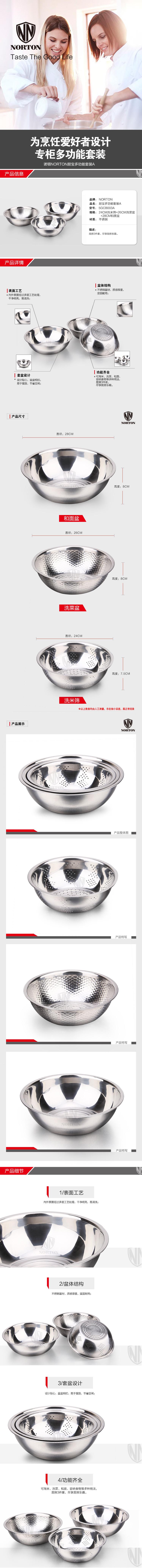 【会员价:78元】广电优选 诺顿NORTON 厨宝全能套装A家用多功能米筛三件套洗米筛洗菜盆和面打蛋盆水果篮不锈钢加厚汤盆易清洗 24-26-28cm(5GCB003A )