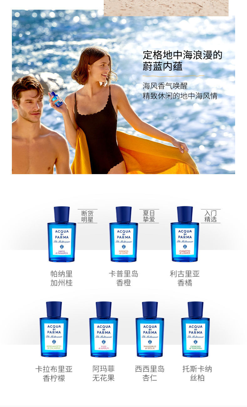 【预售 急单慎拍】帕尔玛之水香水蓝色地中海桃金娘无花果杏仁柠檬 橙香30/75/150ml